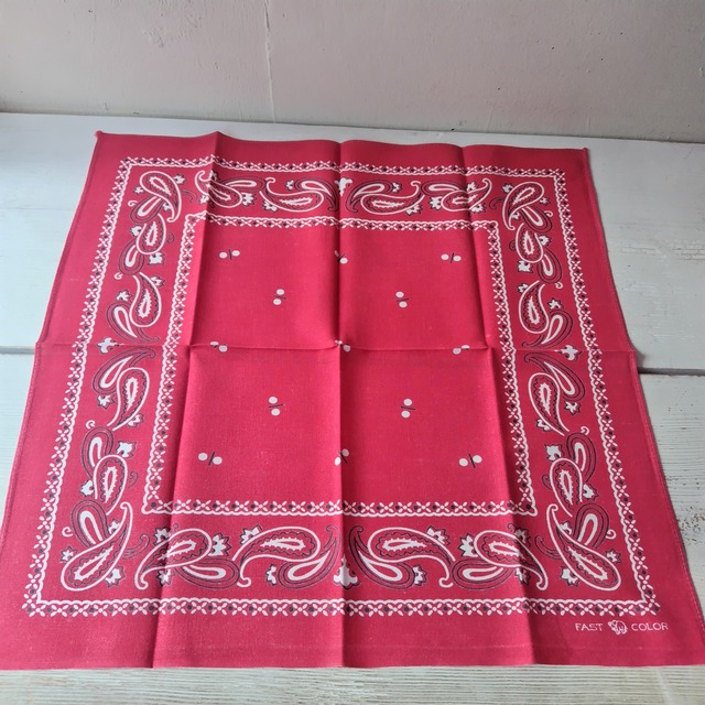 レアです!! エレファントブランドの希少なホワイトカラー x ブラウンプリントになります!! 54cm x 56cmになります。 洗いこんだフェード感、うっすらごく微量のシミ、織りむらがございますが 雰囲気とレア度が間違いなく勝ってるかと思います!! コンディション画像にてご確認くださいませ。 よろしくお願いいたします!! お取り扱い商品はユーズド商品になります。 細かいほつれやダメージなどございますが ビンテージ、古着ならではのよさとご了承の上 ご購入お願いいたします。 掲載商品の画像に関しまして ご覧になられておりますプラウザやパソコン等の環境により 実際のお色と異なる場合がございますので あらかじめご了承くださいませ。