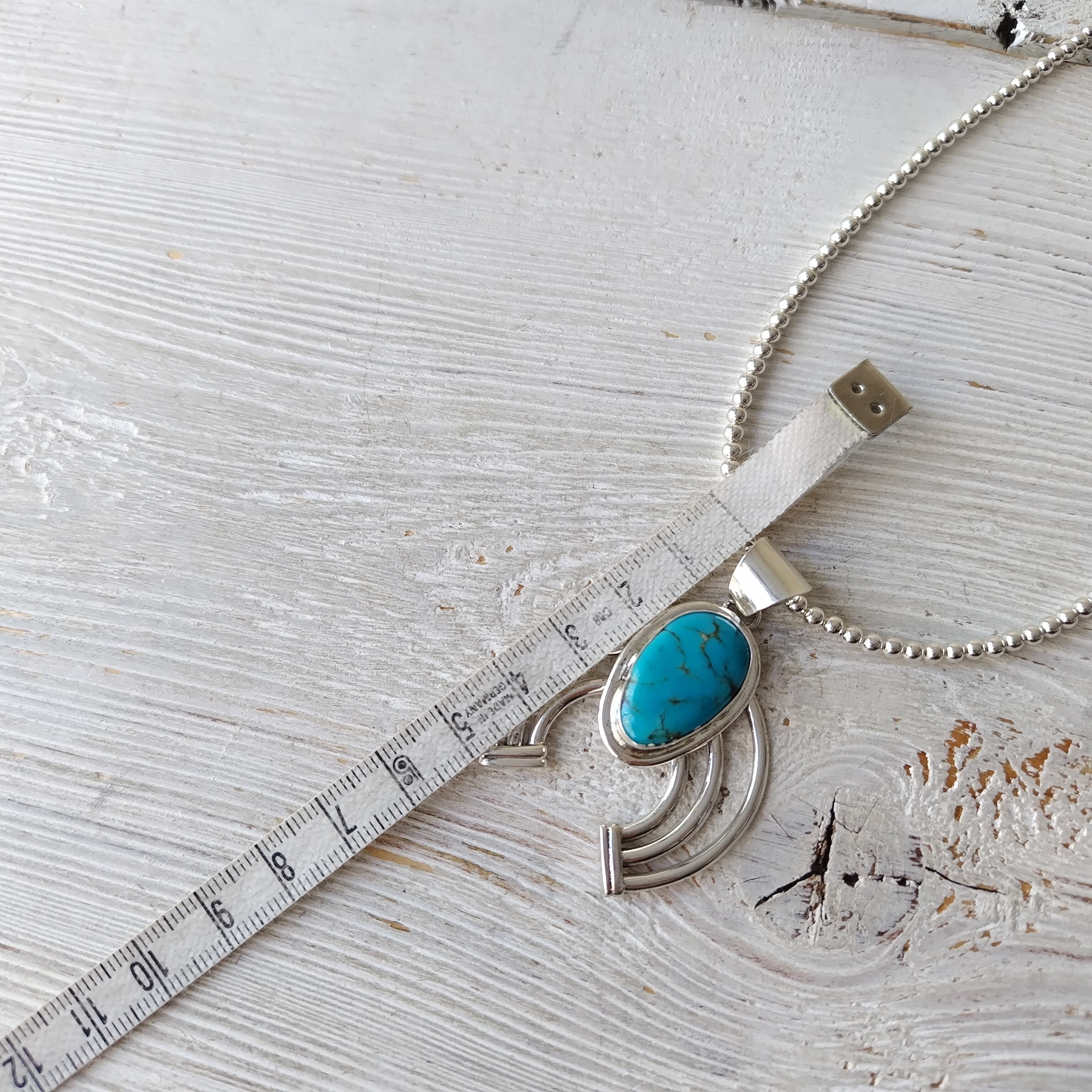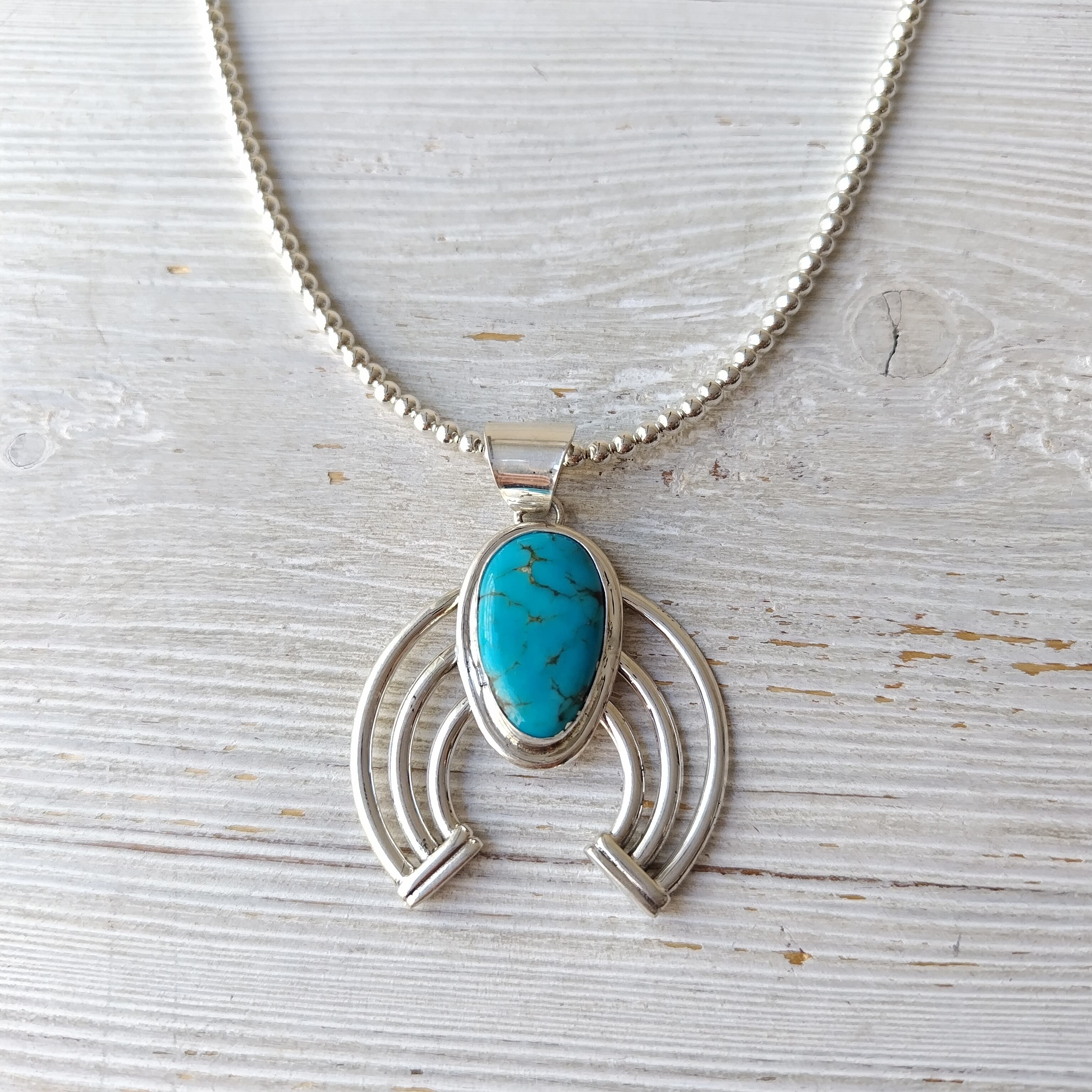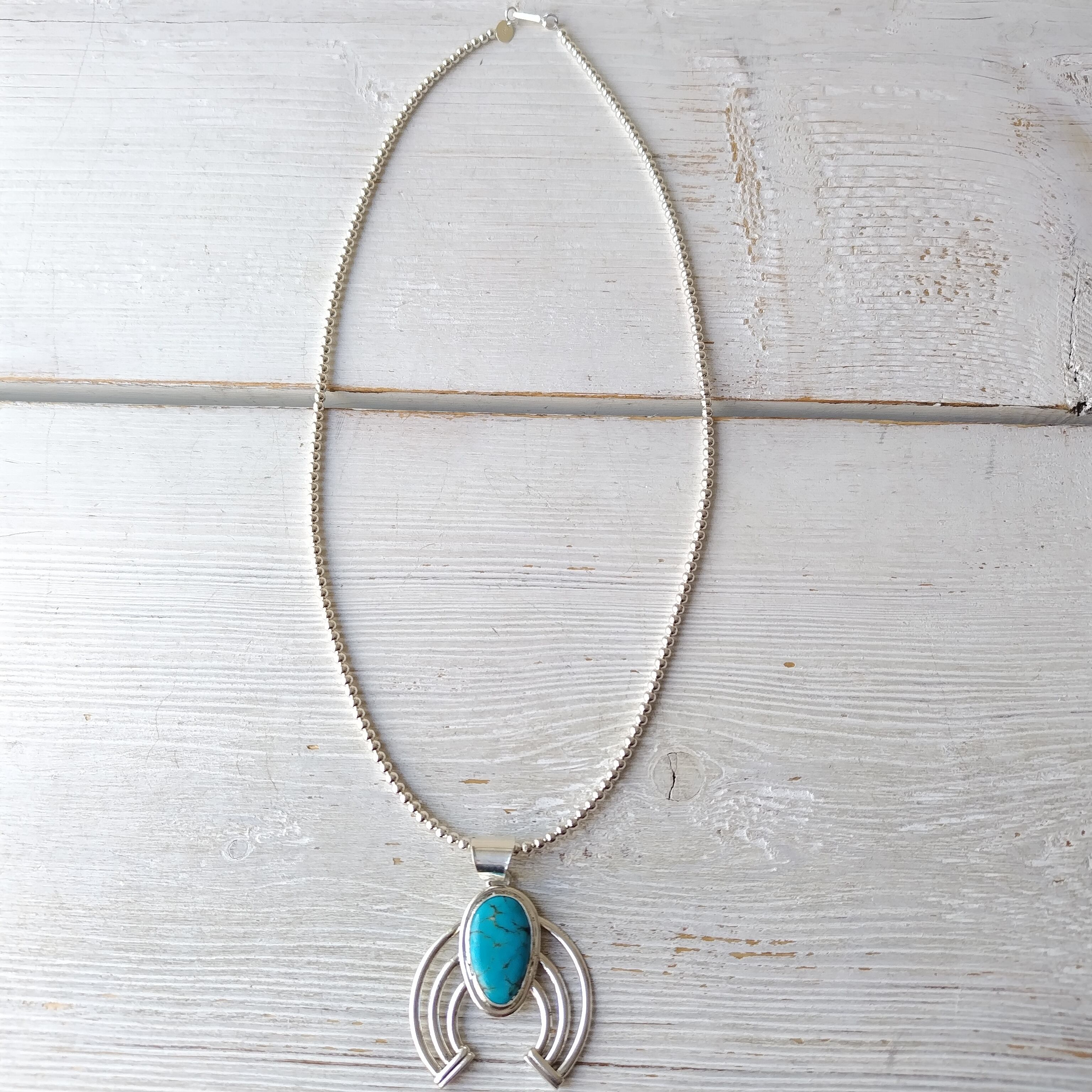 ナバホ ターコイズ シルバートップ x ナバホパール シルバーネックレス 3mm玉 55cm インディアンジュエリー