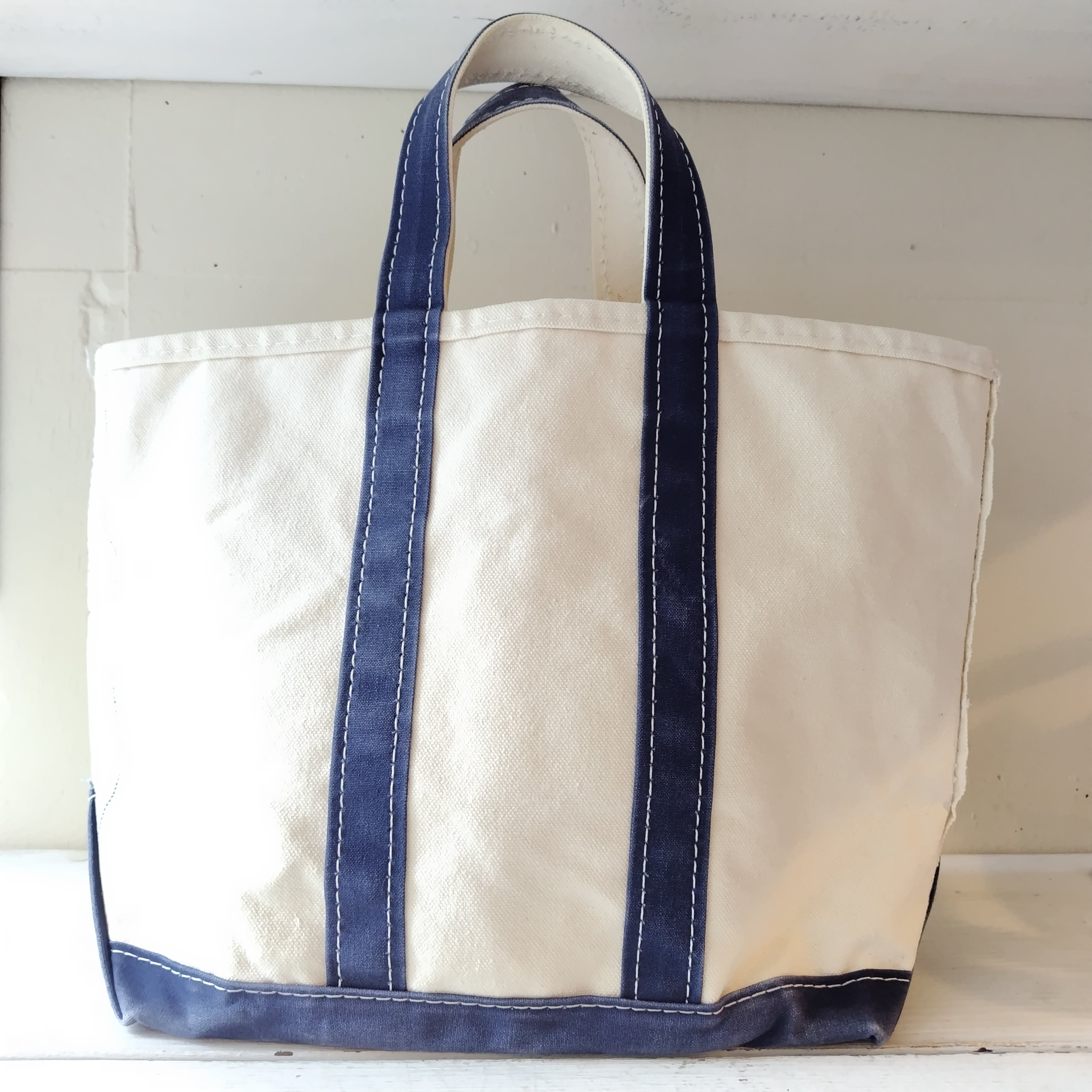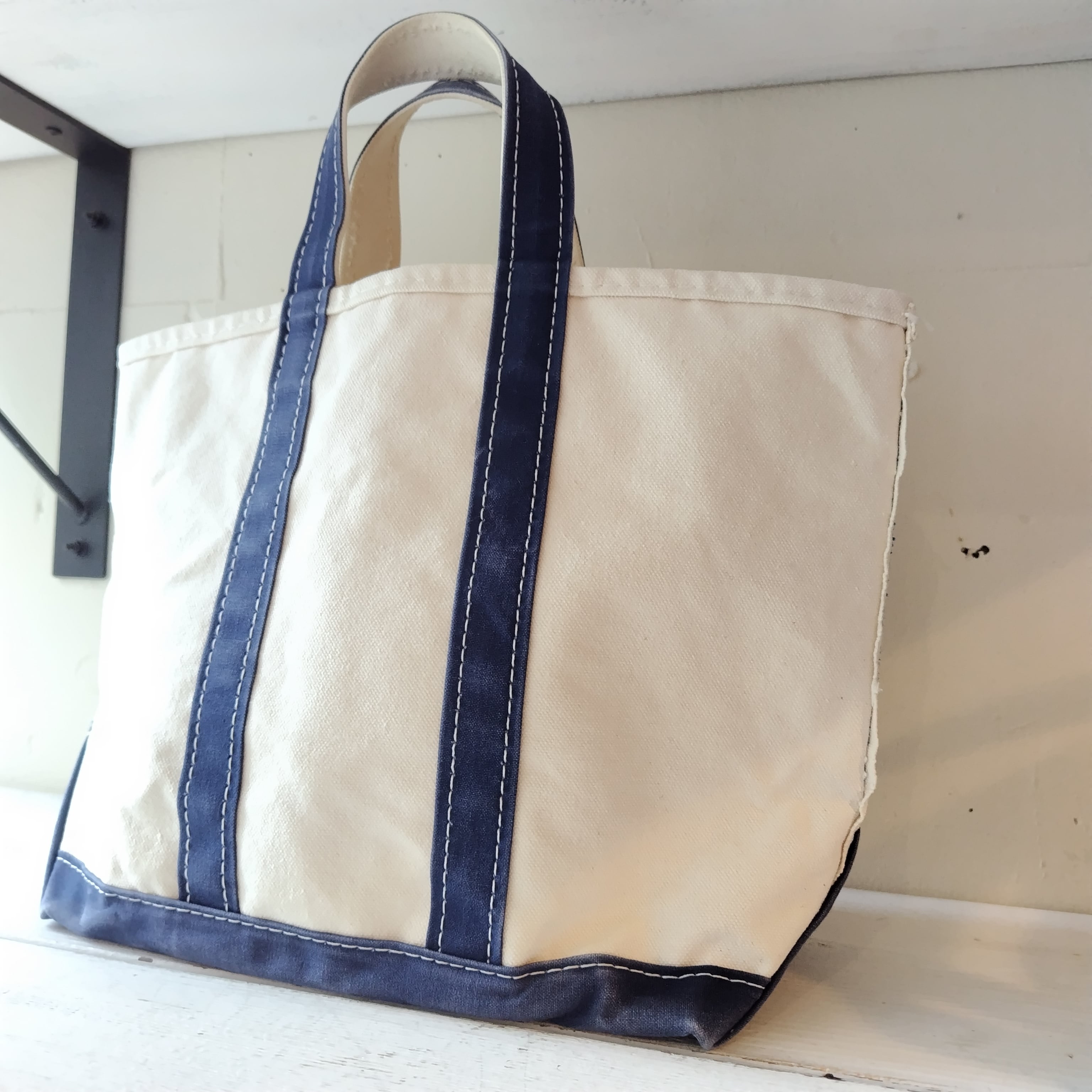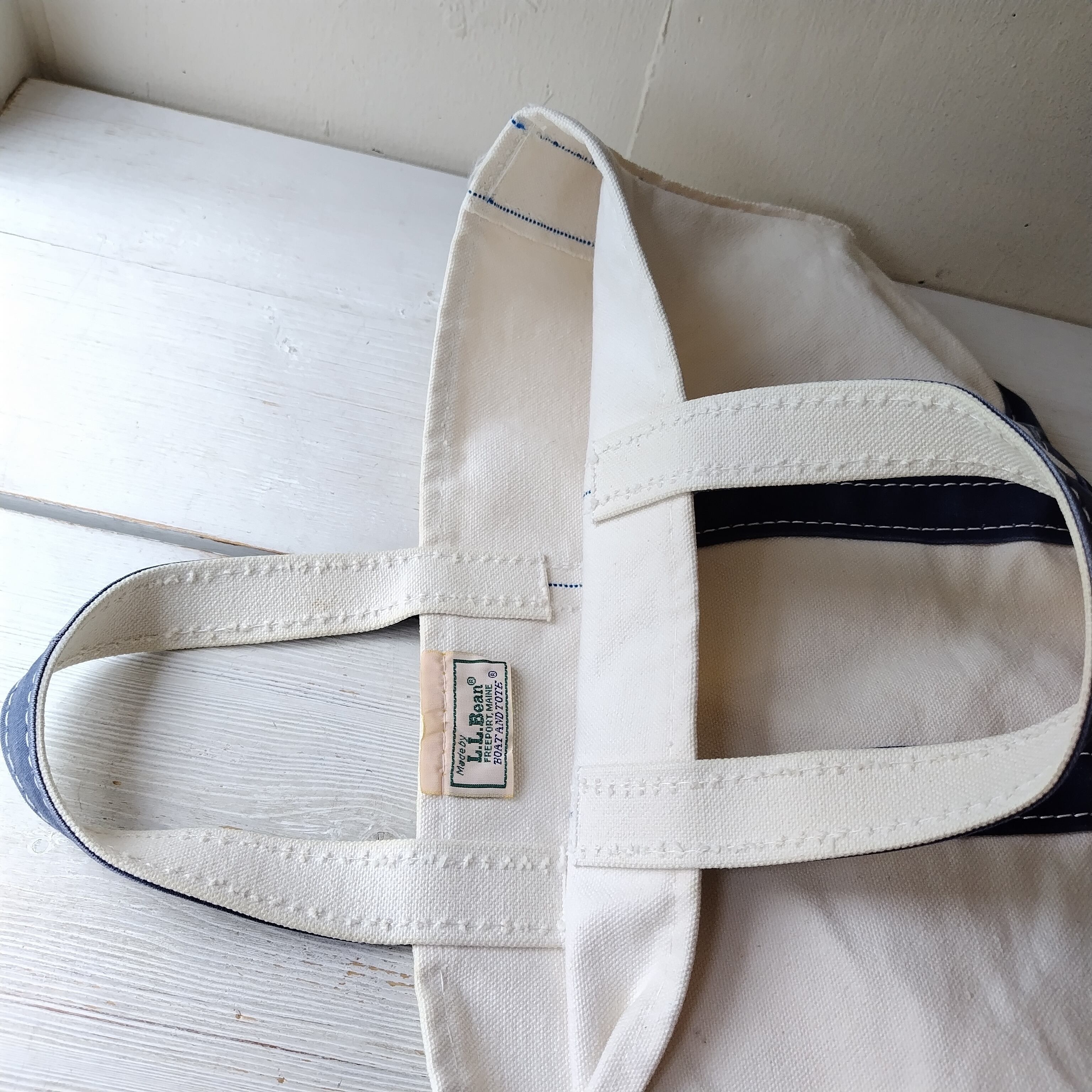Mサイズ 80s L.L.Bean 幅狭ネイビーハンドル サイドブルーガイドライン トートバッグ