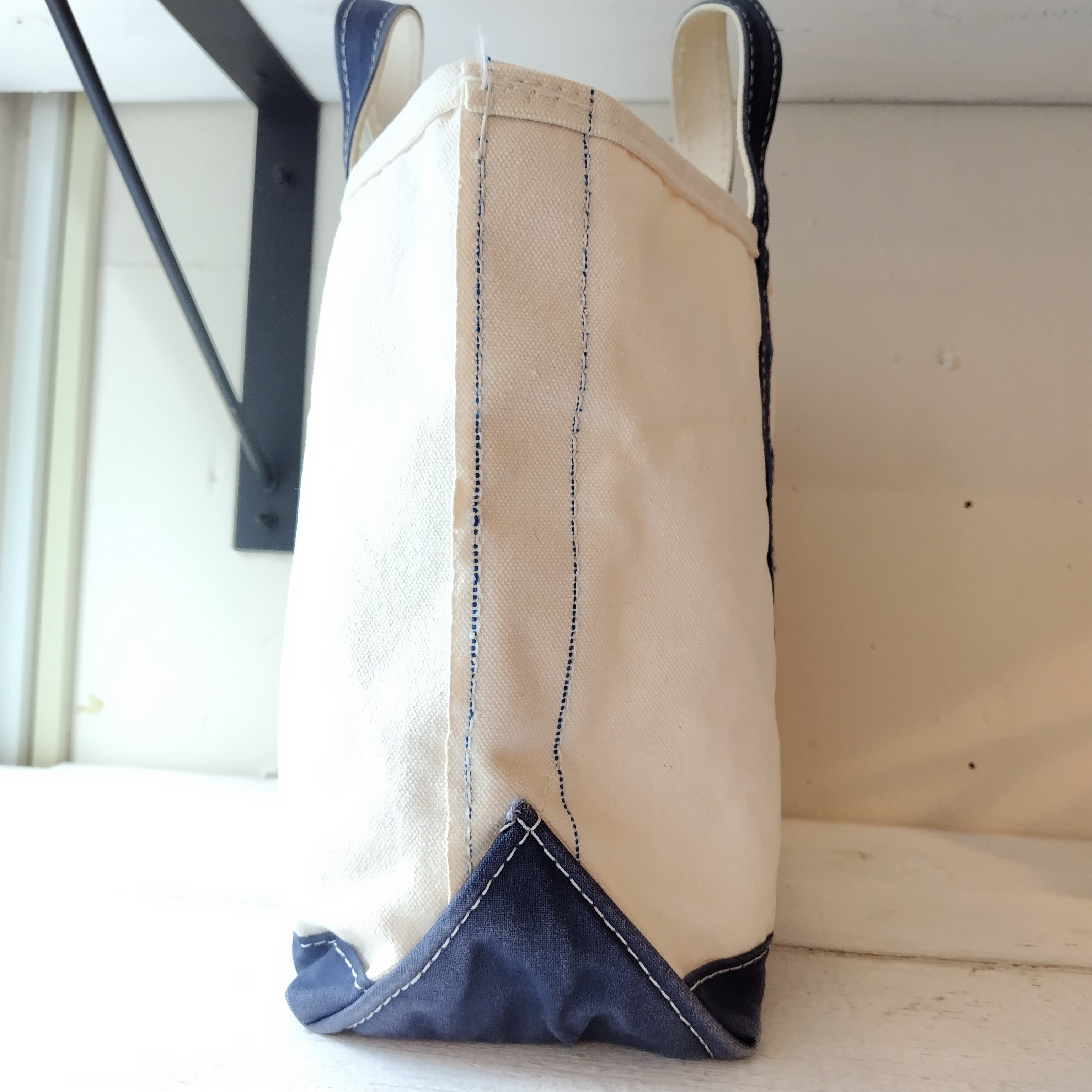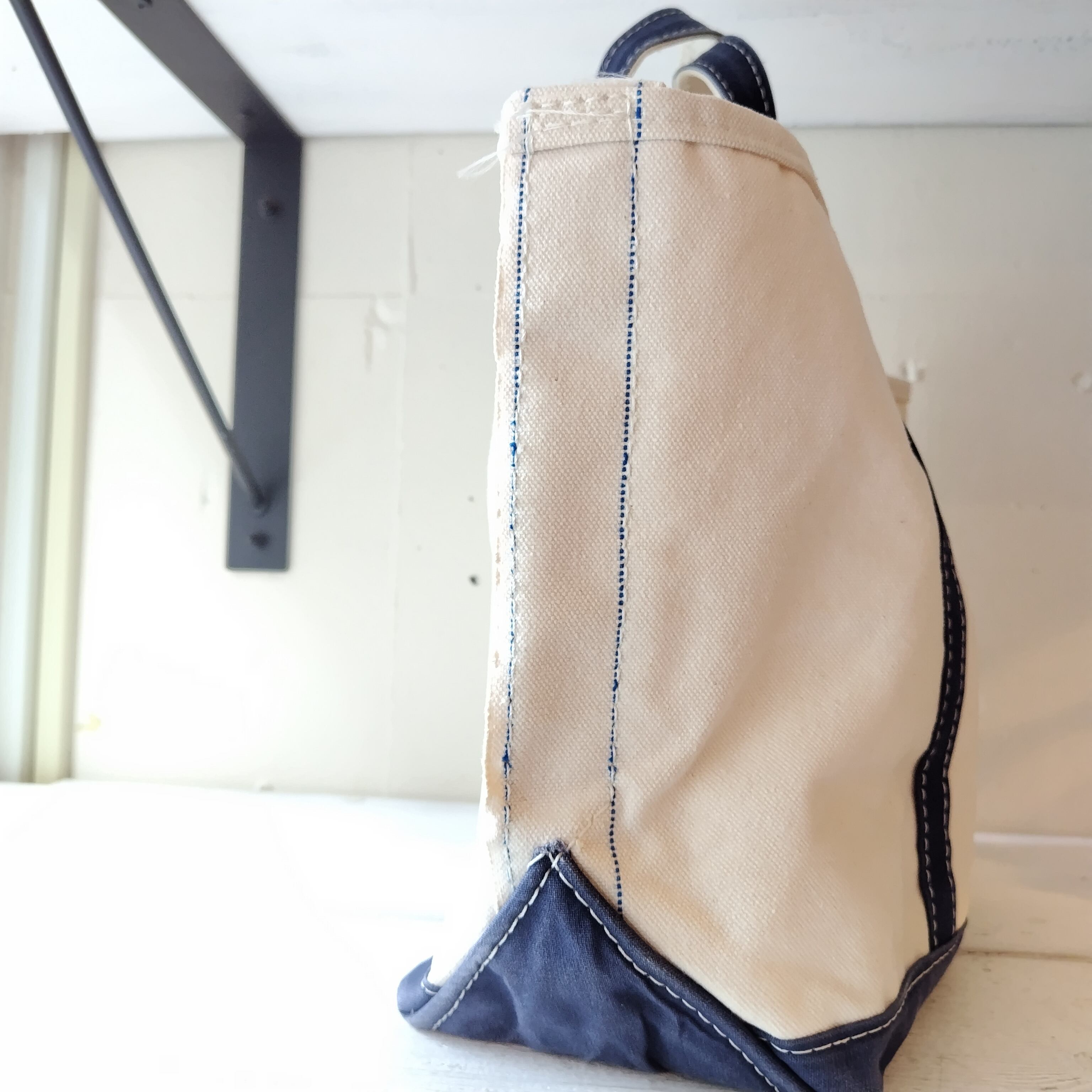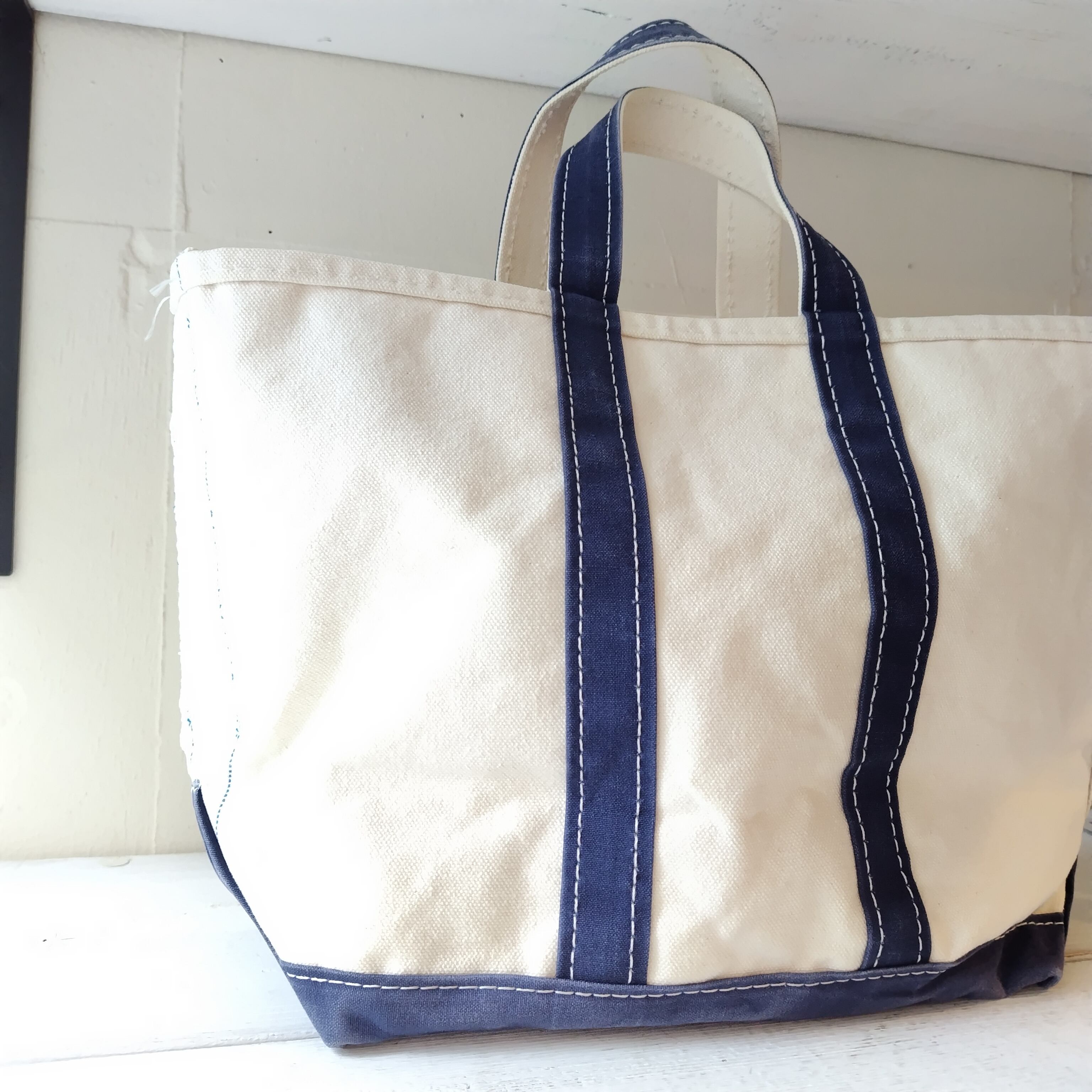 Mサイズ 80s L.L.Bean 幅狭ネイビーハンドル サイドブルーガイドライン トートバッグ