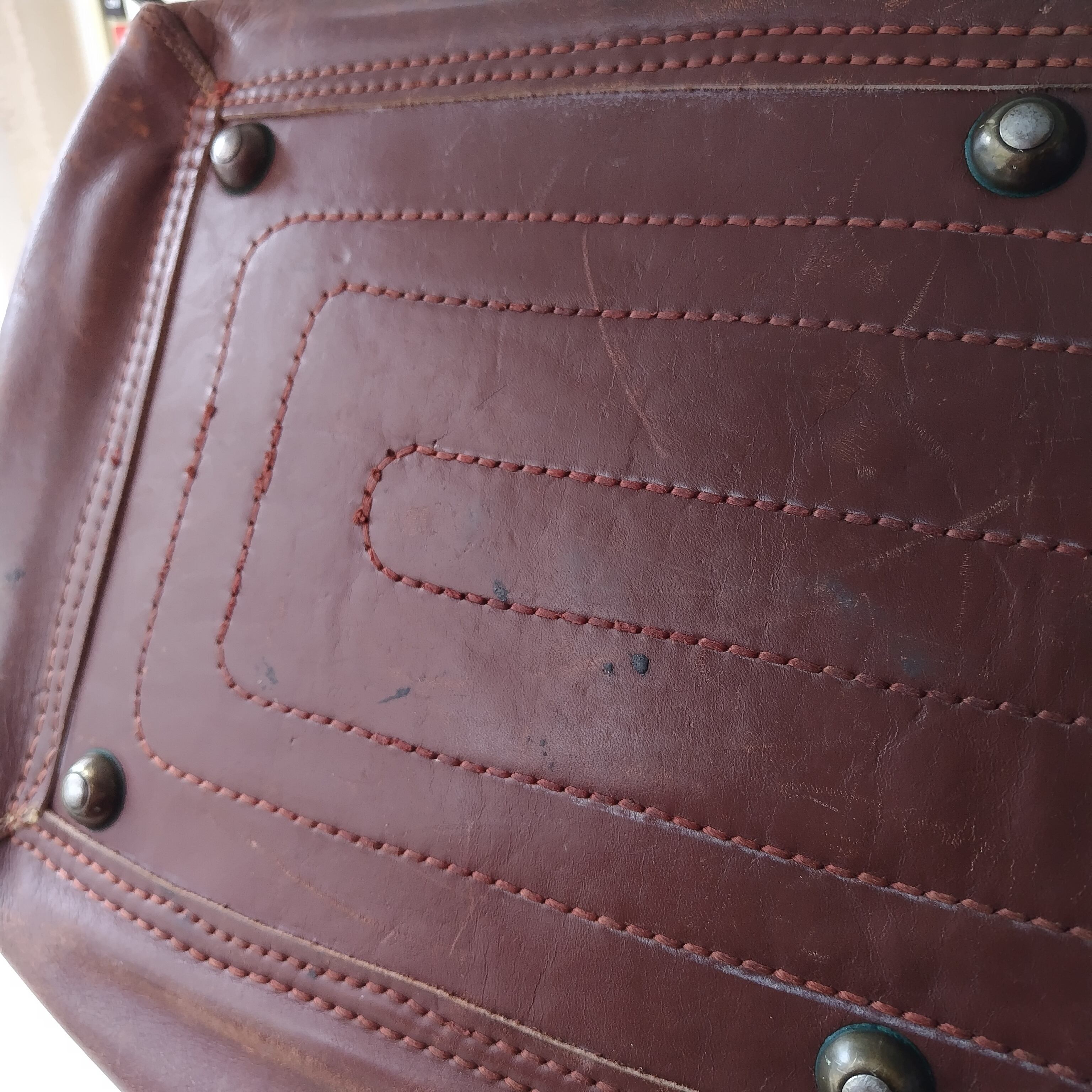 55年以上前のレザーバッグになりますので シミ、スレなどございます。 しかしながら 雰囲気とレア度が間違いなく勝っております!!