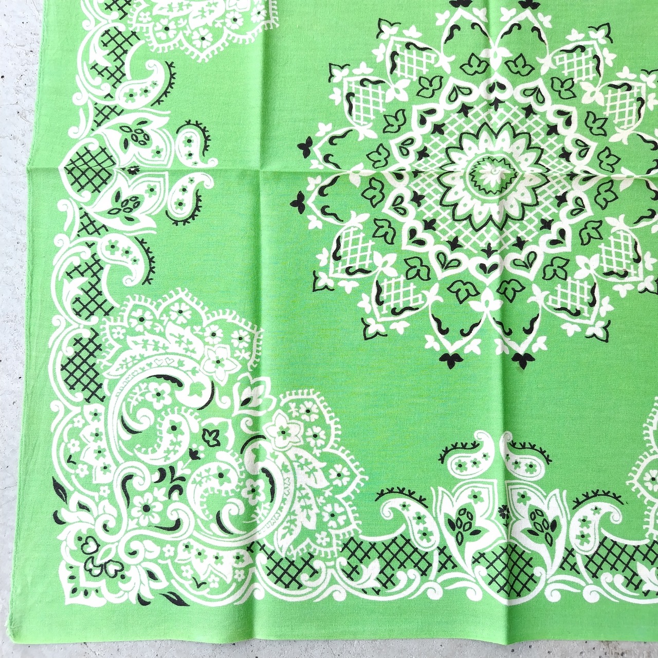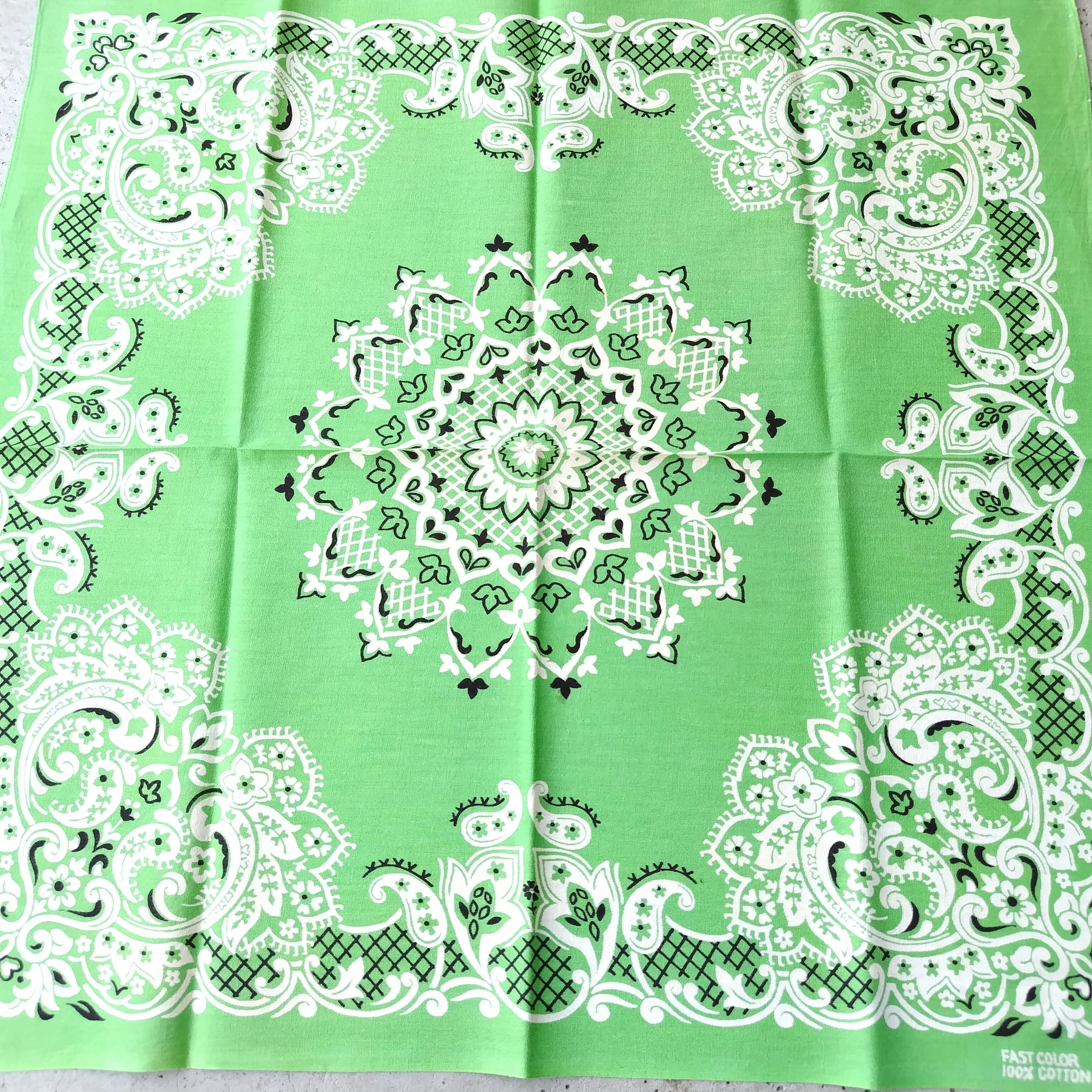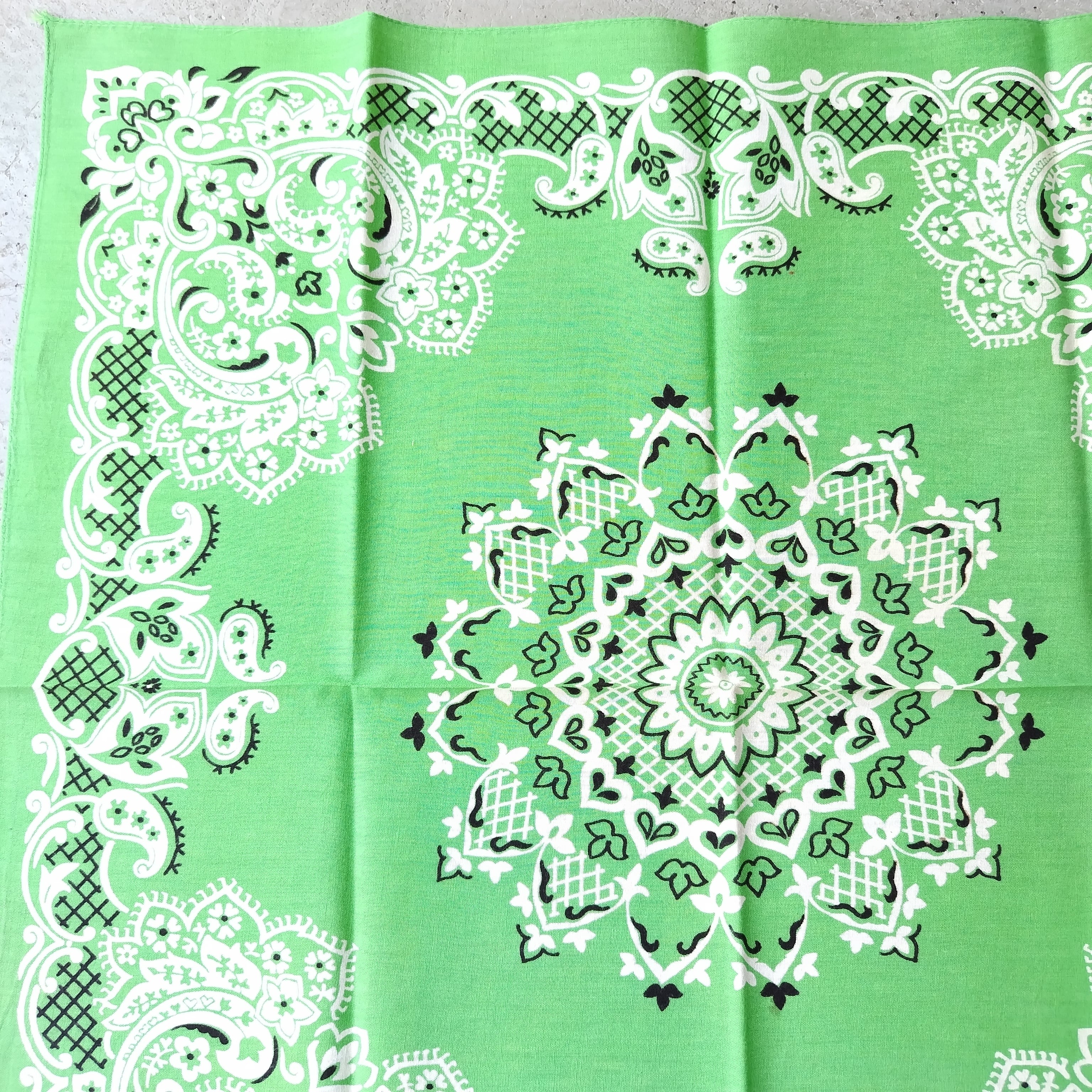 70s ビンテージ クッキー対柄 イエローグリーン バンダナ