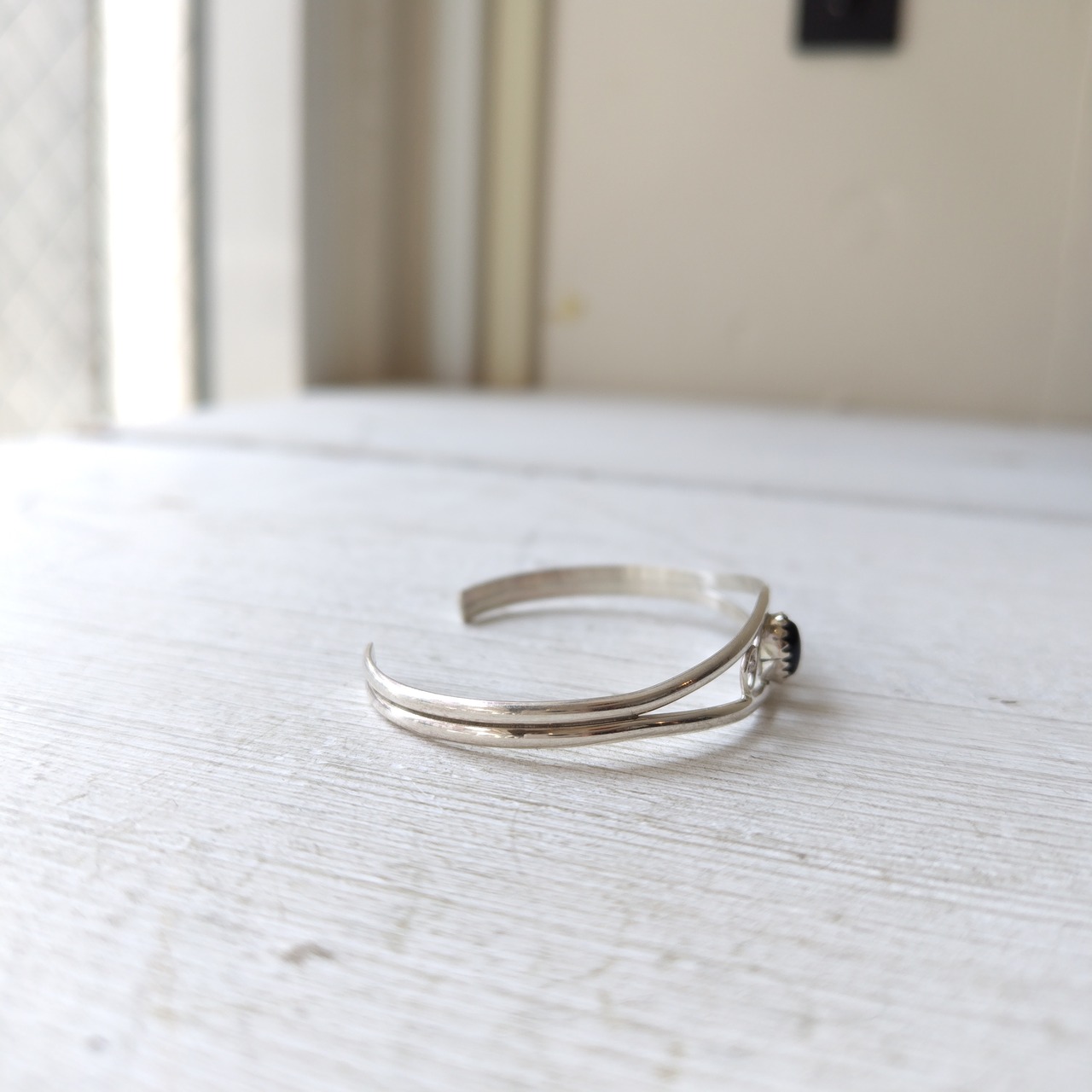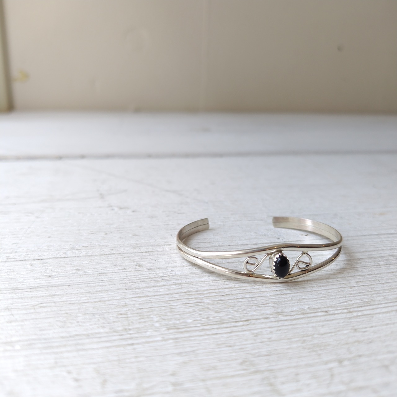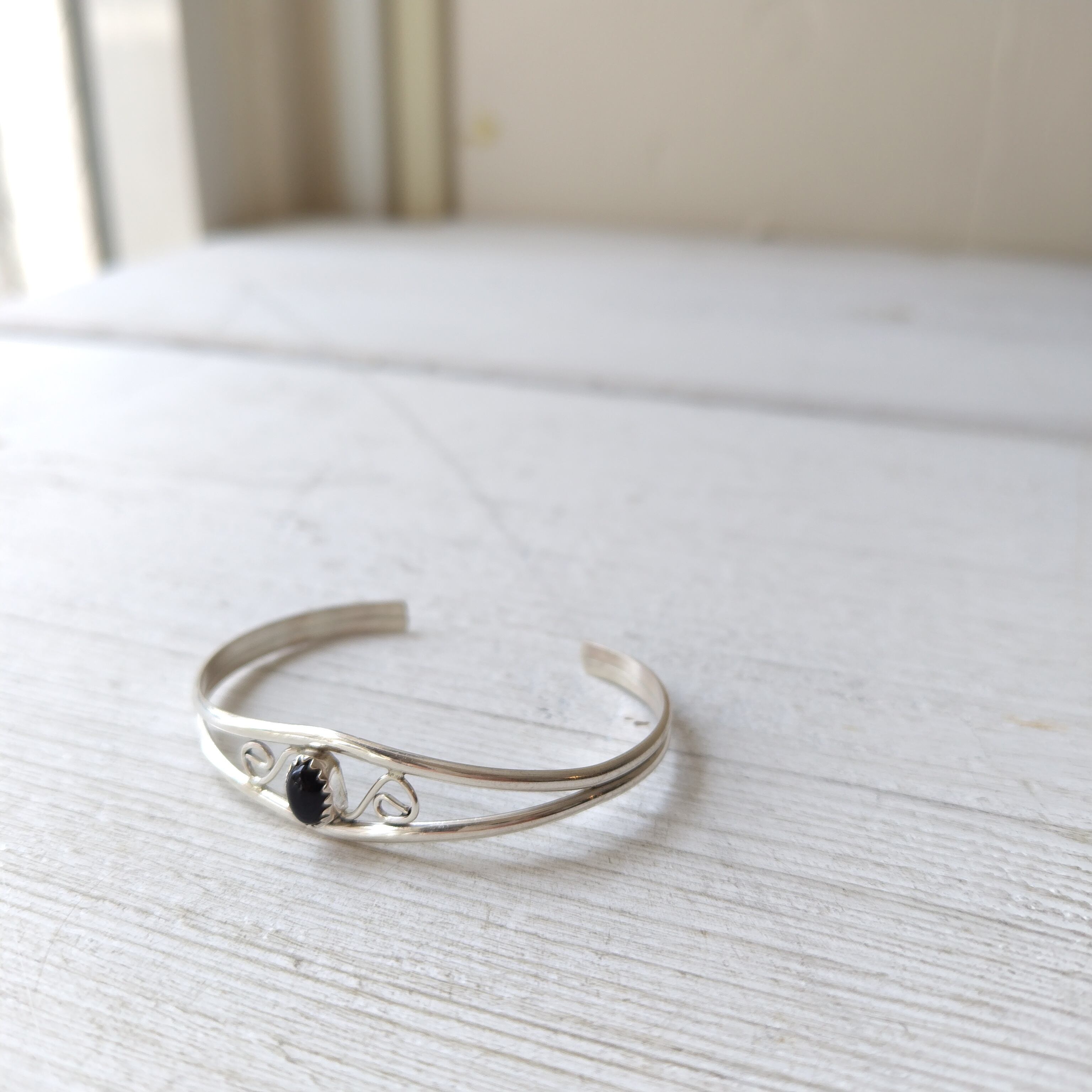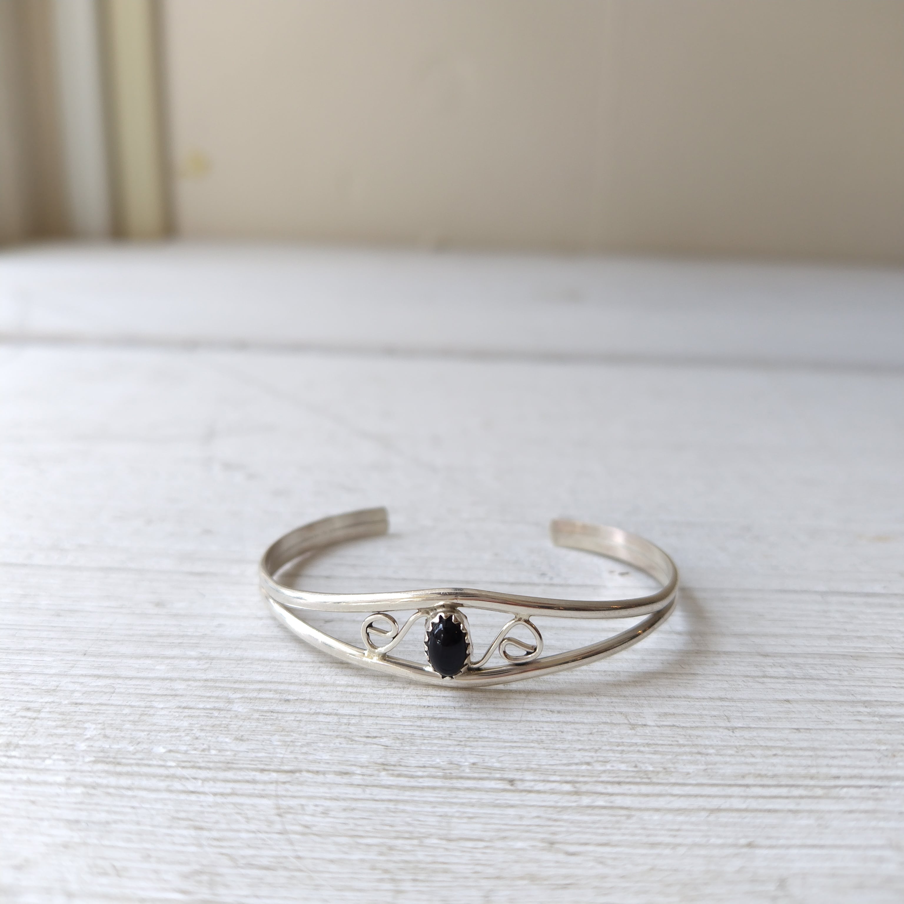 ナバホ オニキス シルバーバングル インディアンジュエリー