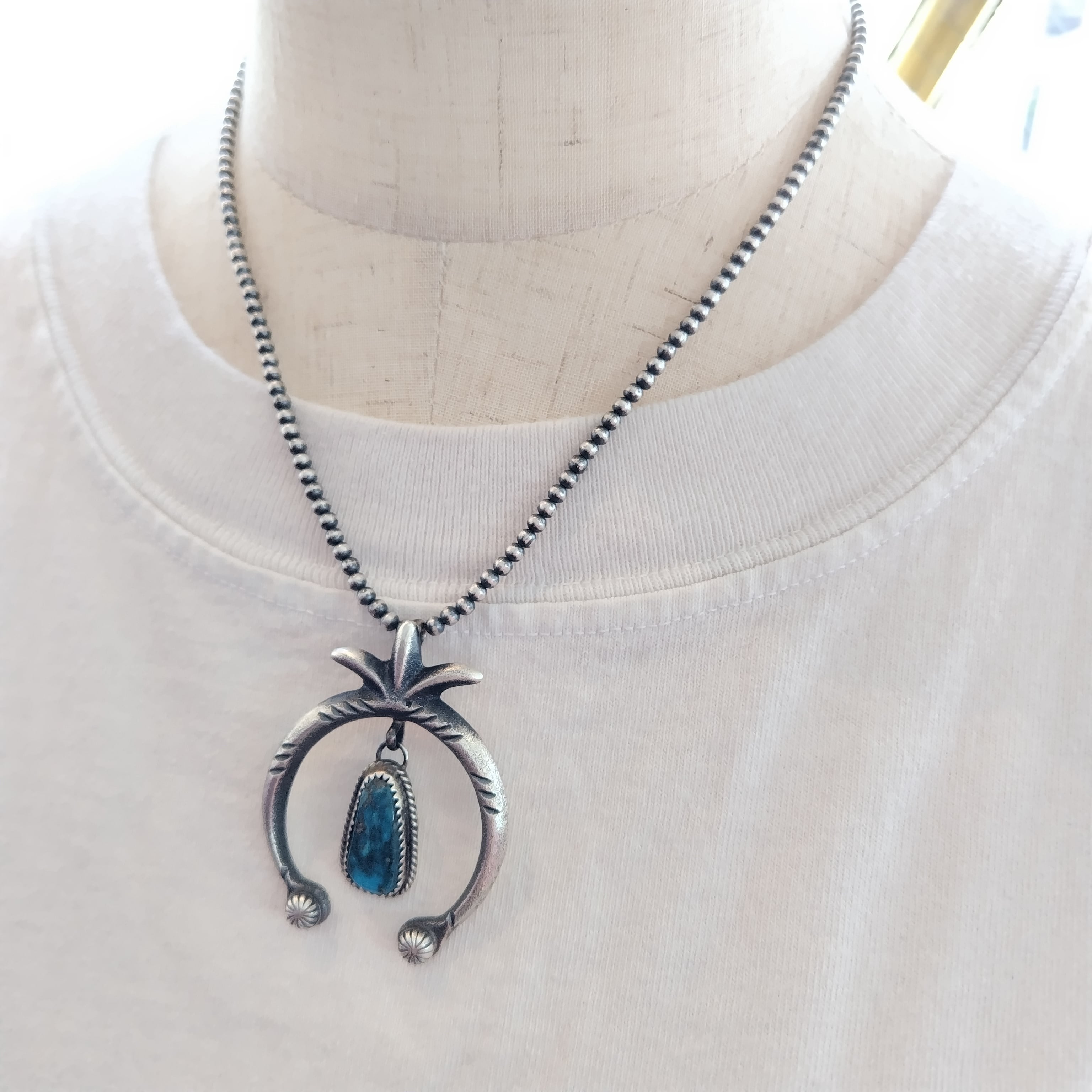 ナバホ Veronica Cayatineto ナジャ ターコイズ シルバートップ + ナバホパール シャイニー x 燻 3mm玉 45cm シルバーネックレス セット インディアンジュエリー