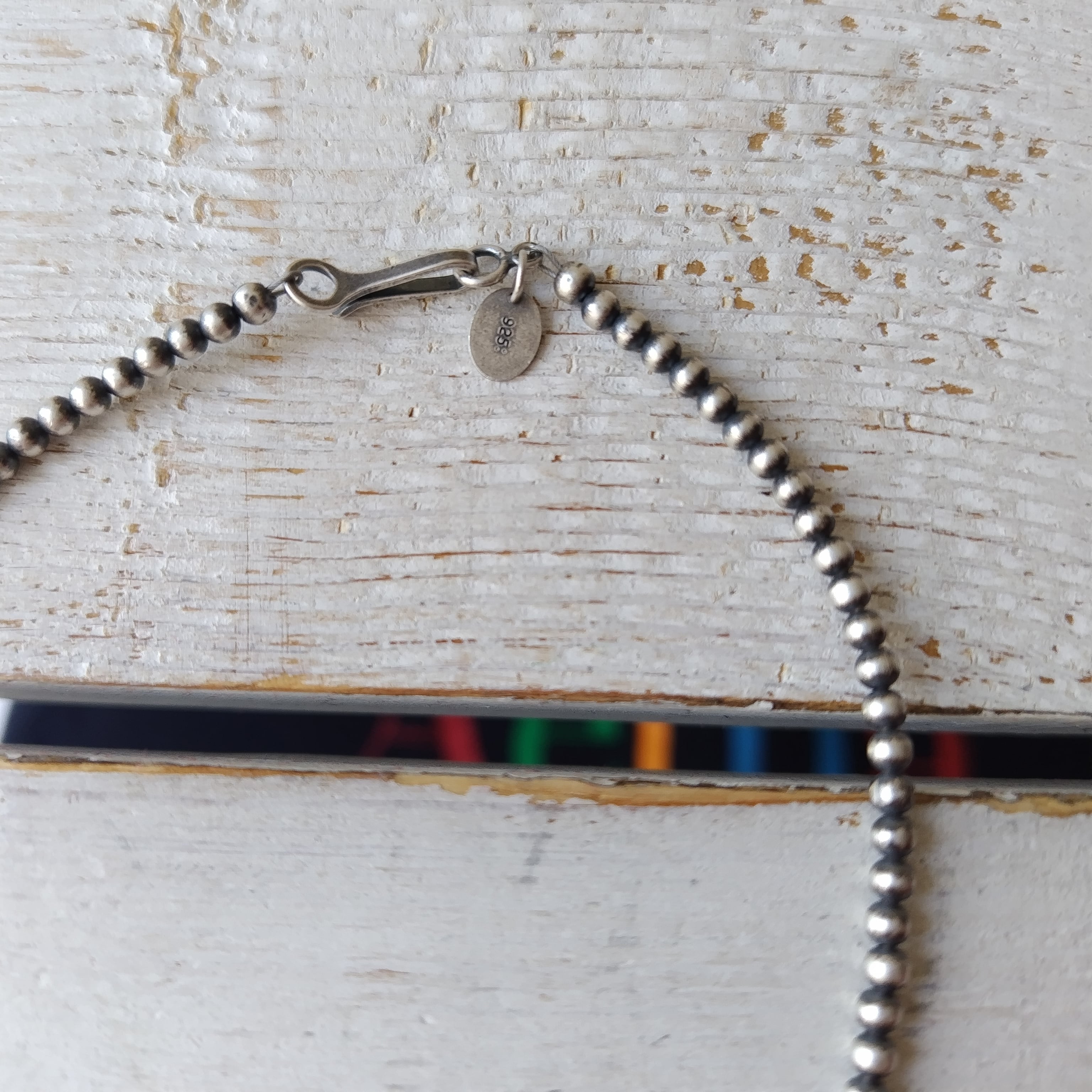 ナバホパール シャイニー x 燻 3mm玉 45cm シルバーネックレスがセットになります。