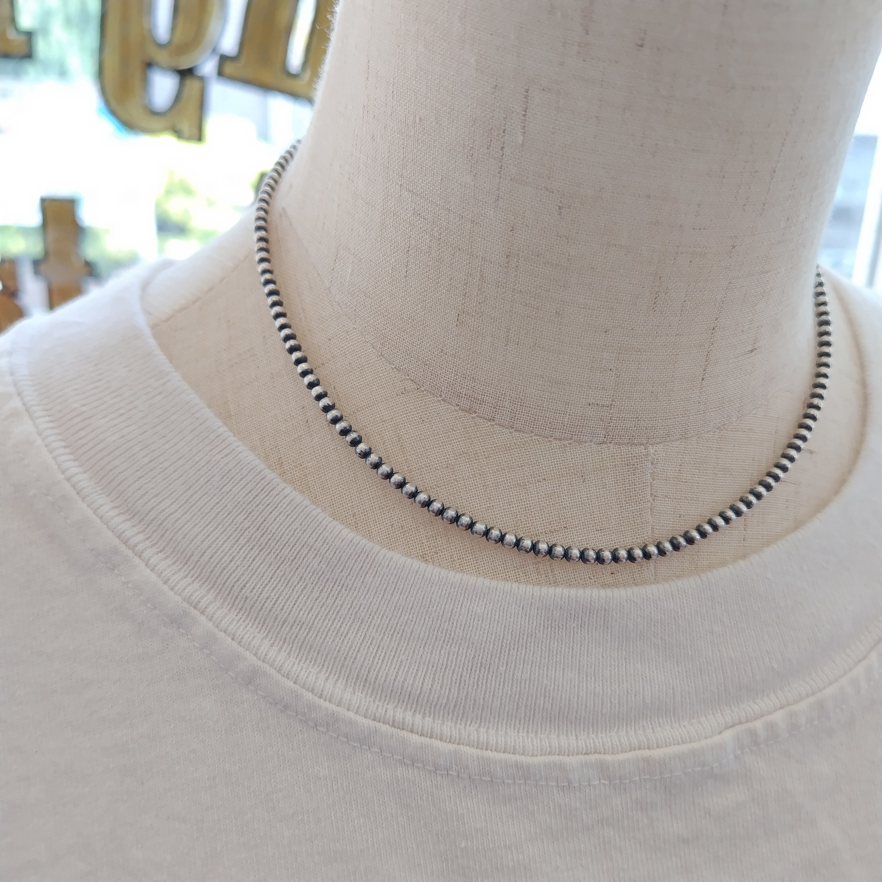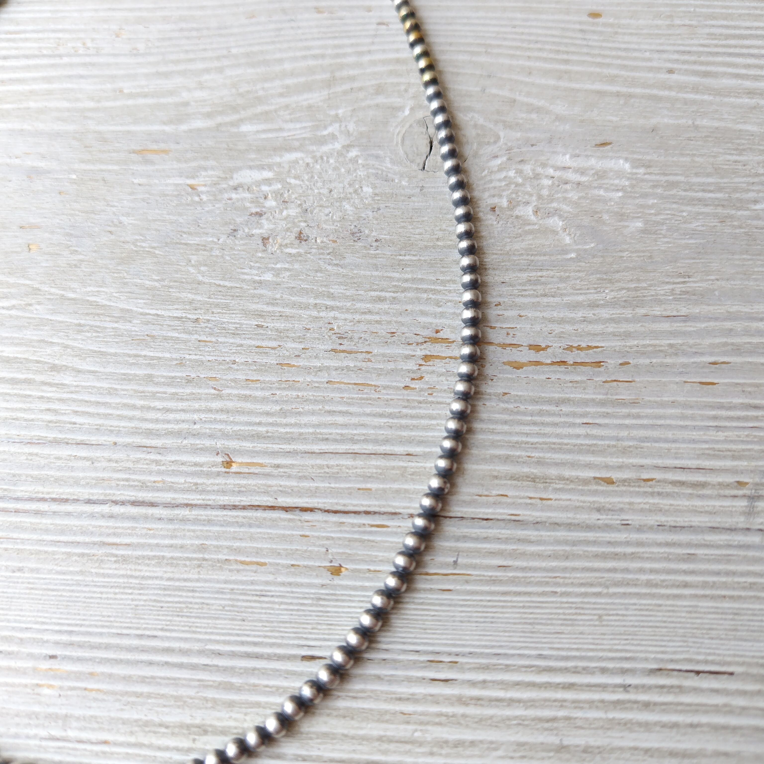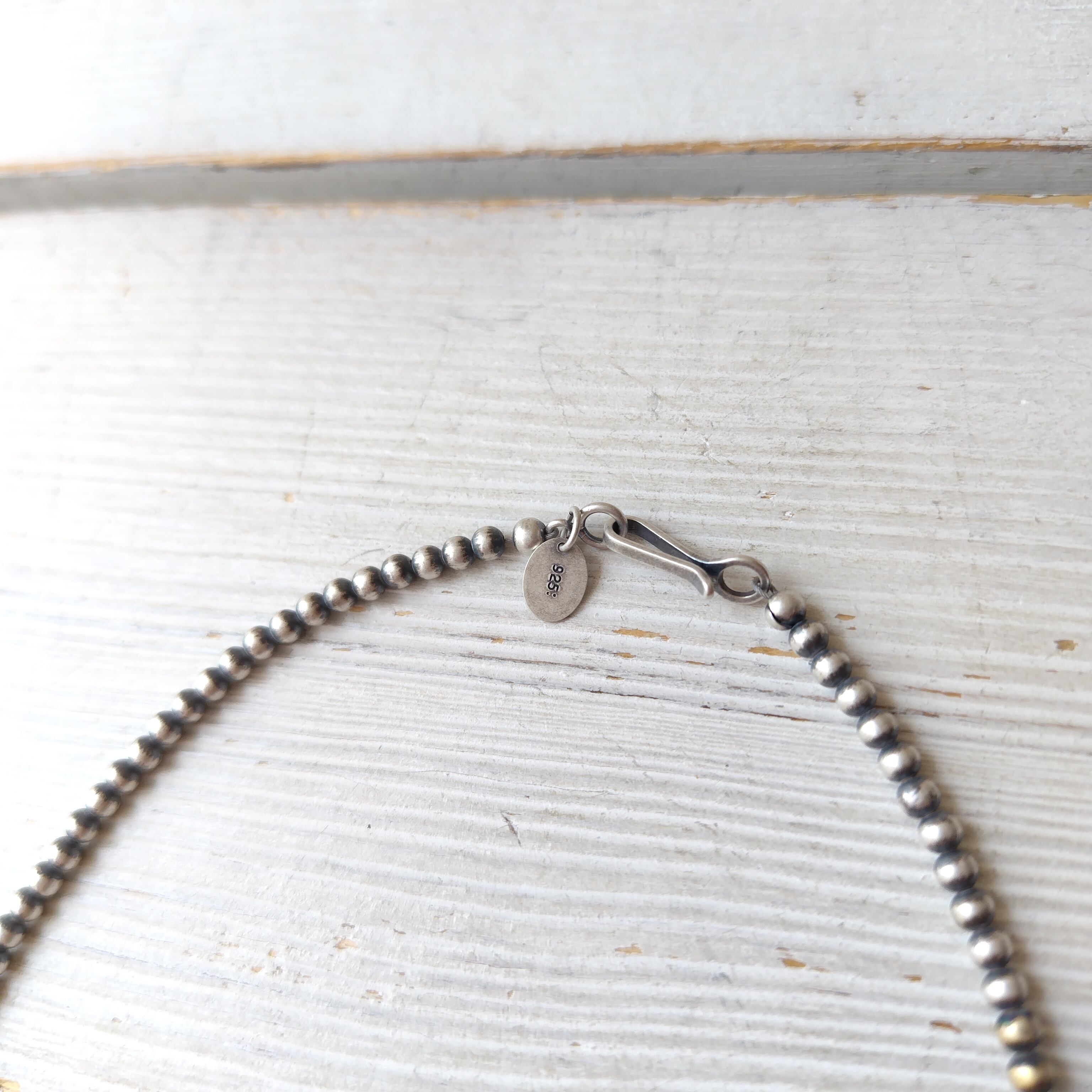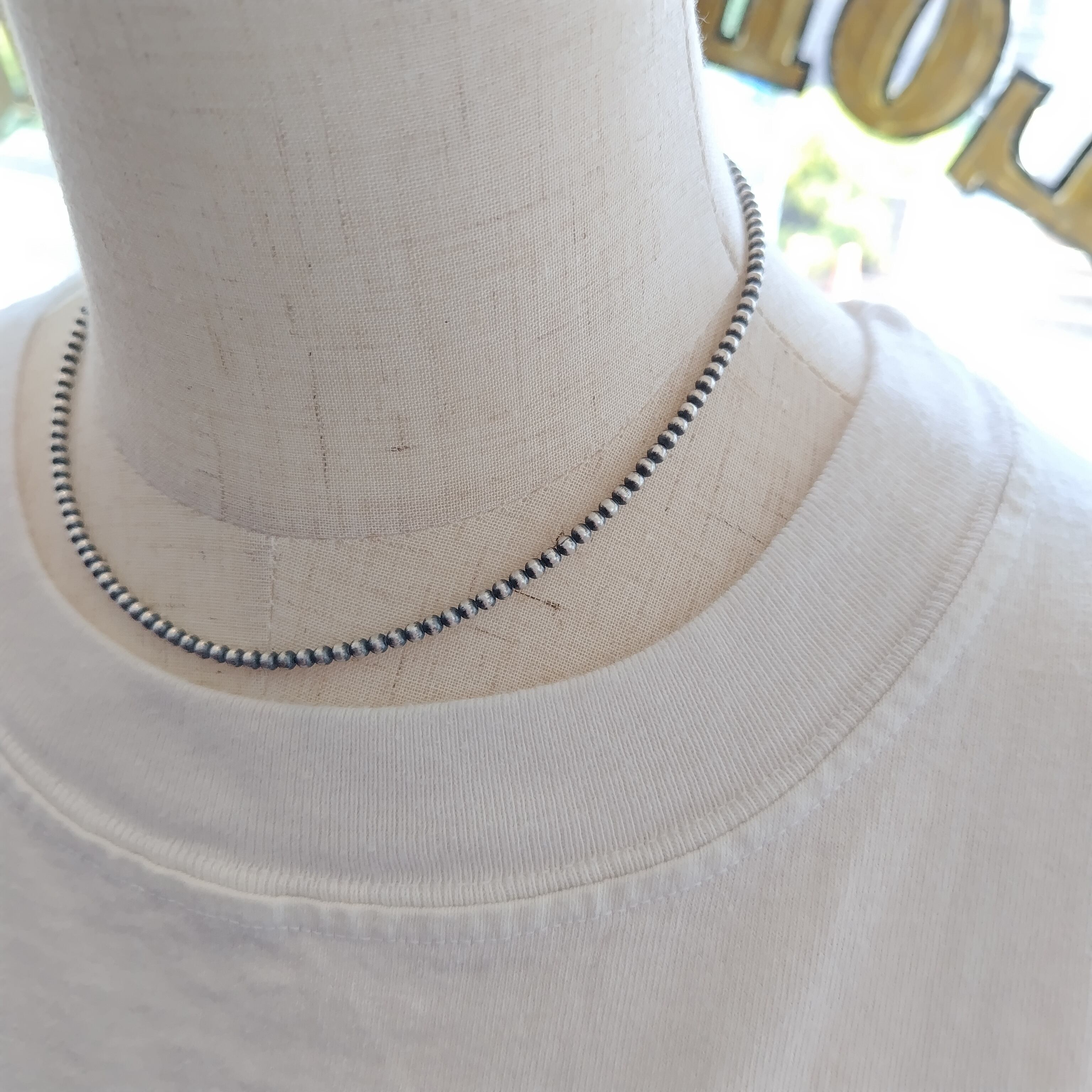 3mm玉 40cm シャイニー x 燻 ナバホパール シルバーネックレス インディアンジュエリー
