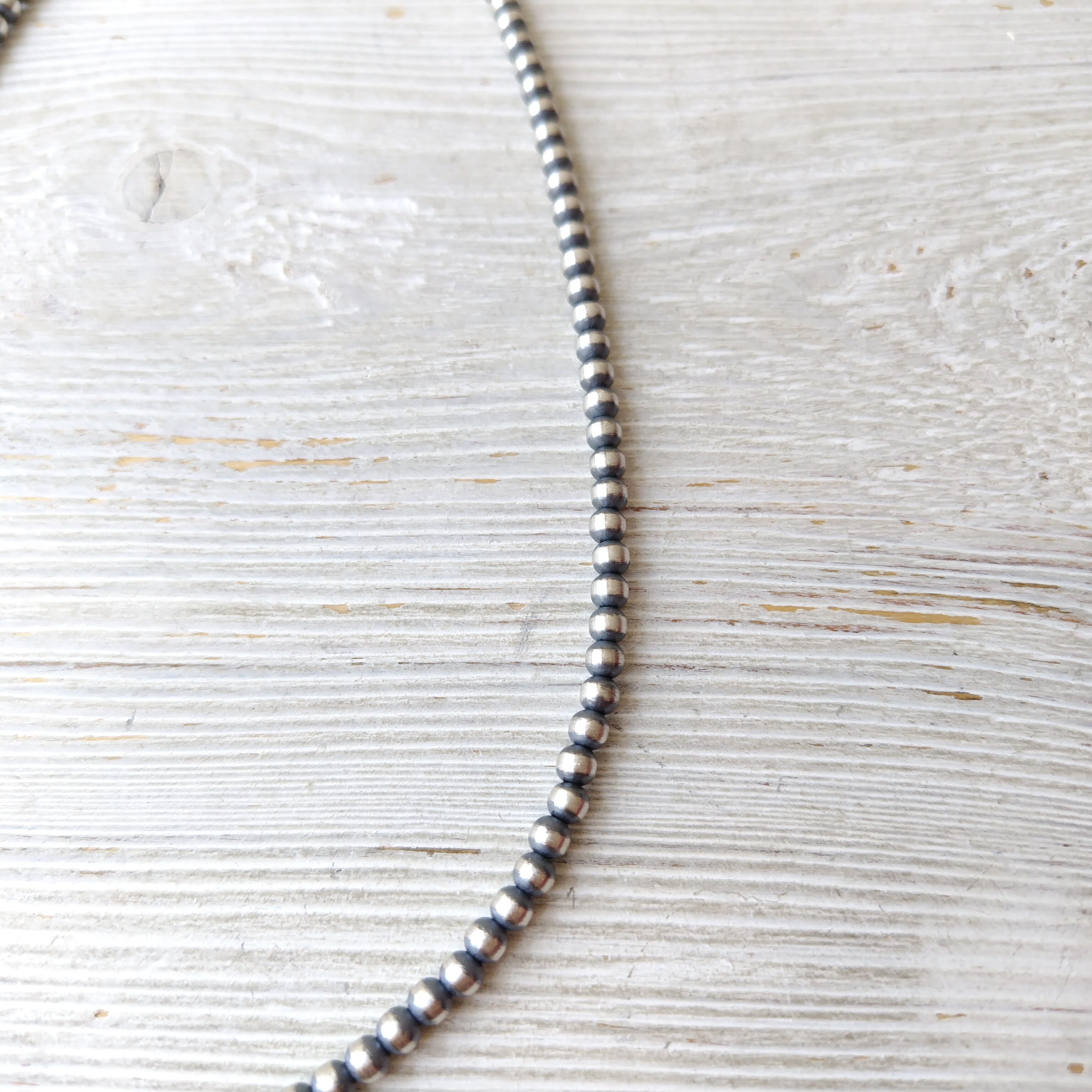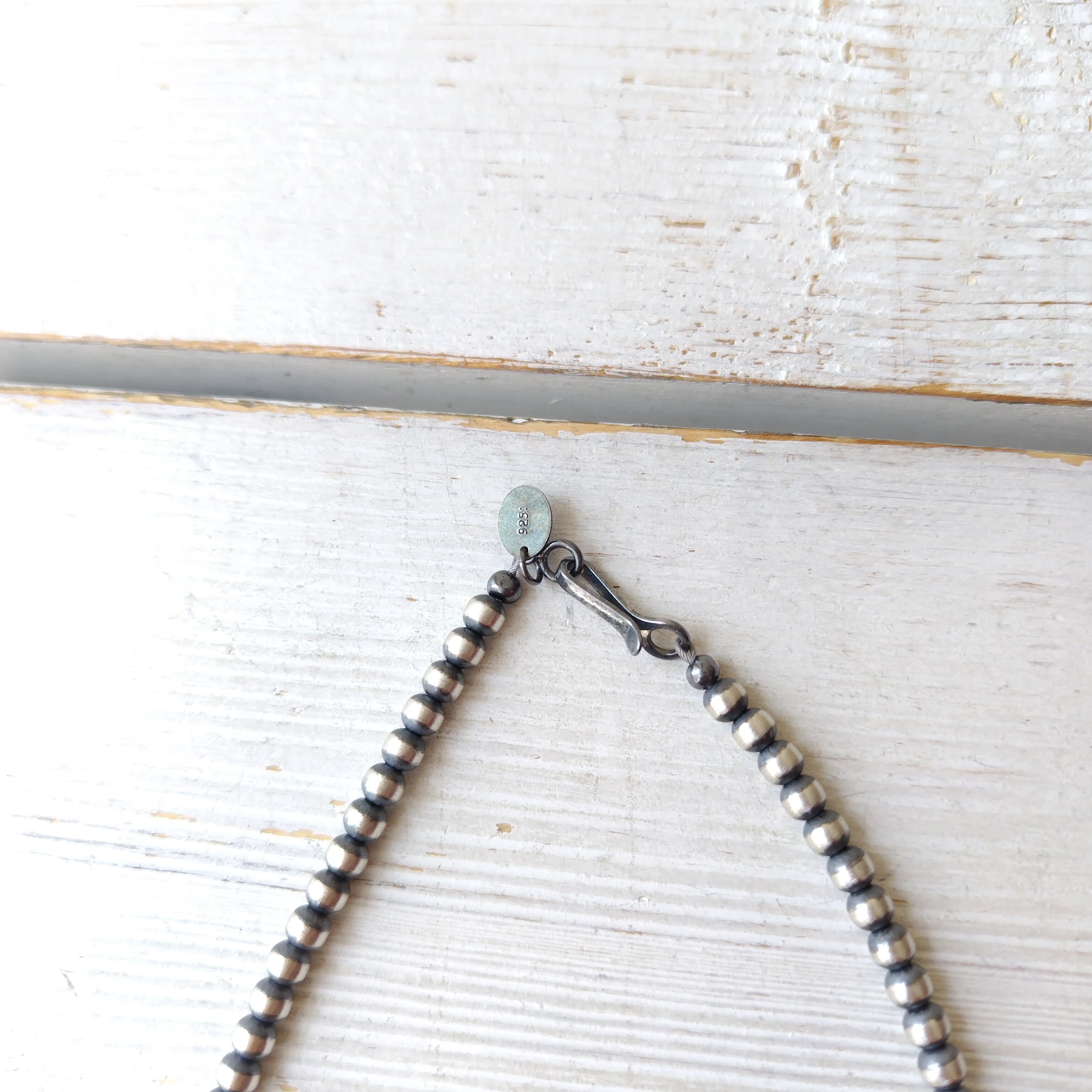 4mm玉 45cm シャイニー x 燻 ナバホパール シルバーネックレス インディアンジュエリー