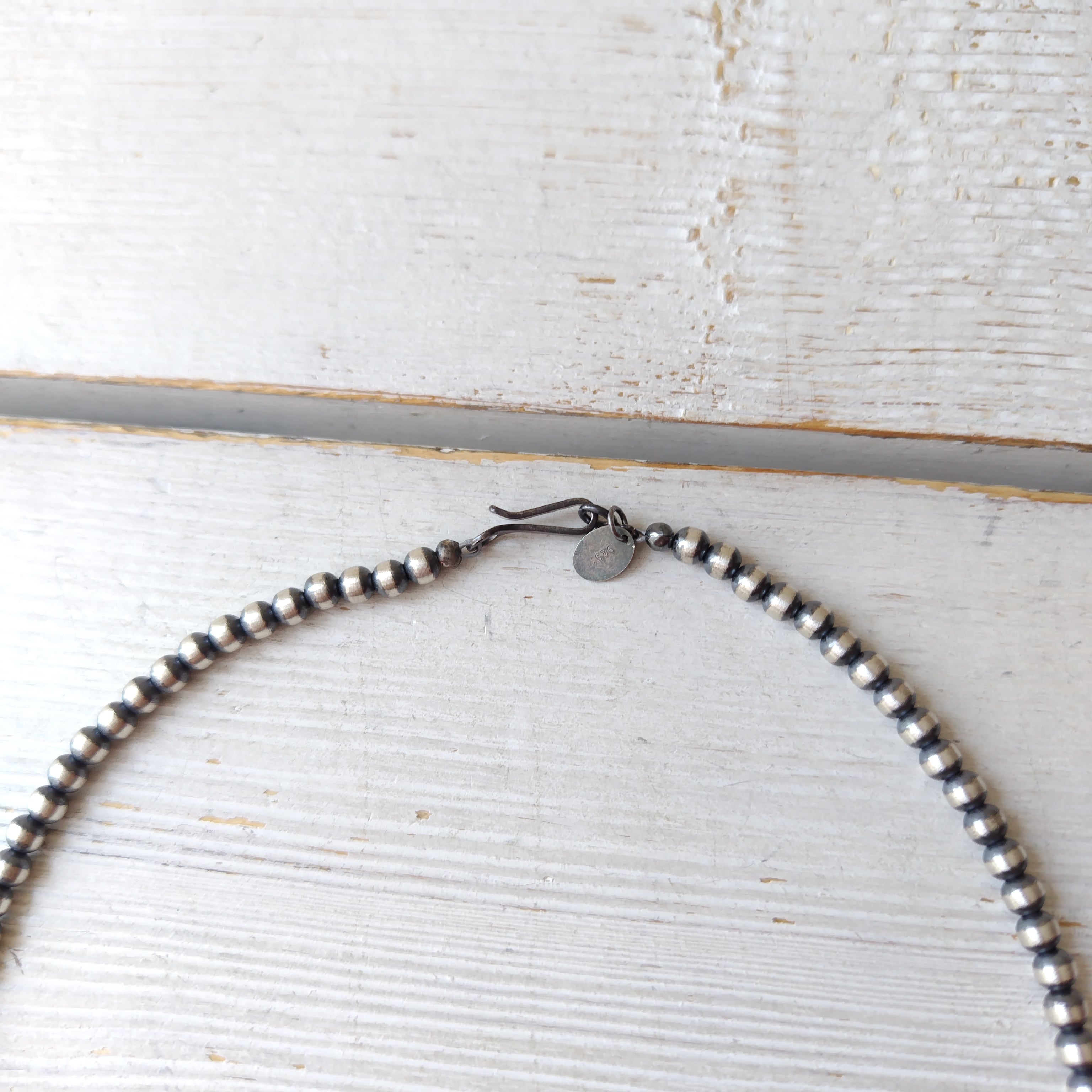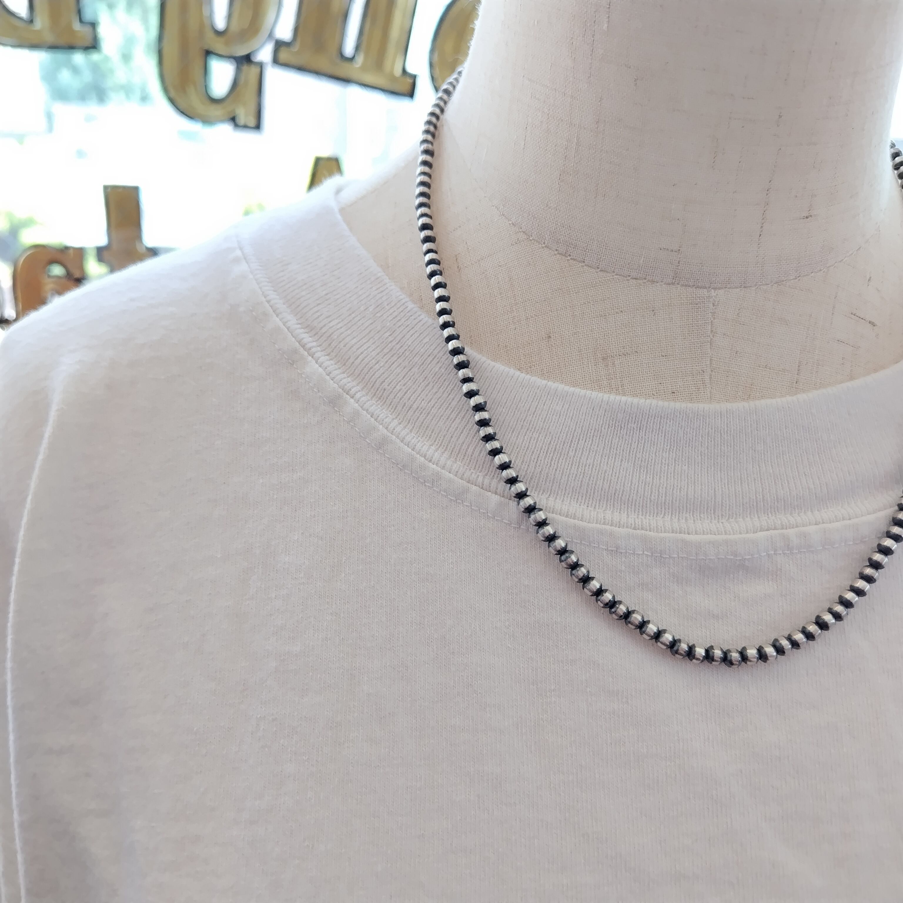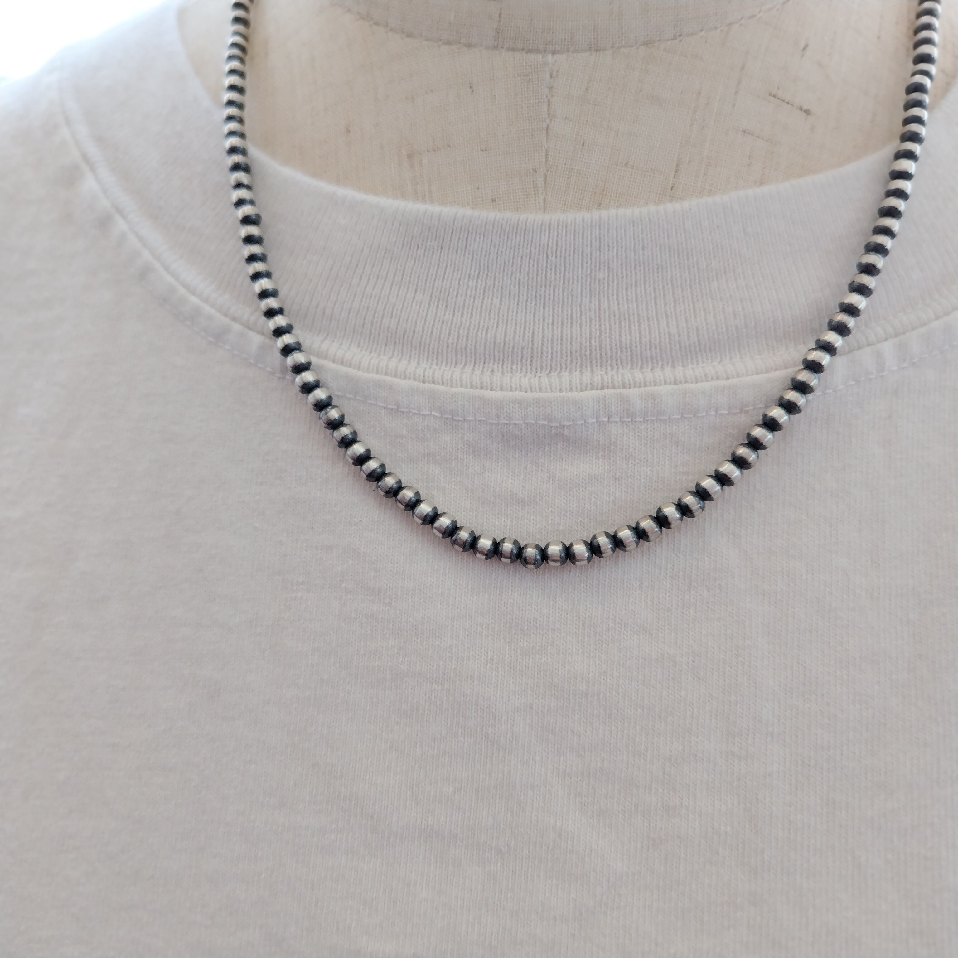 4mm玉 50cm シャイニー x 燻 ナバホパール シルバーネックレス インディアンジュエリー