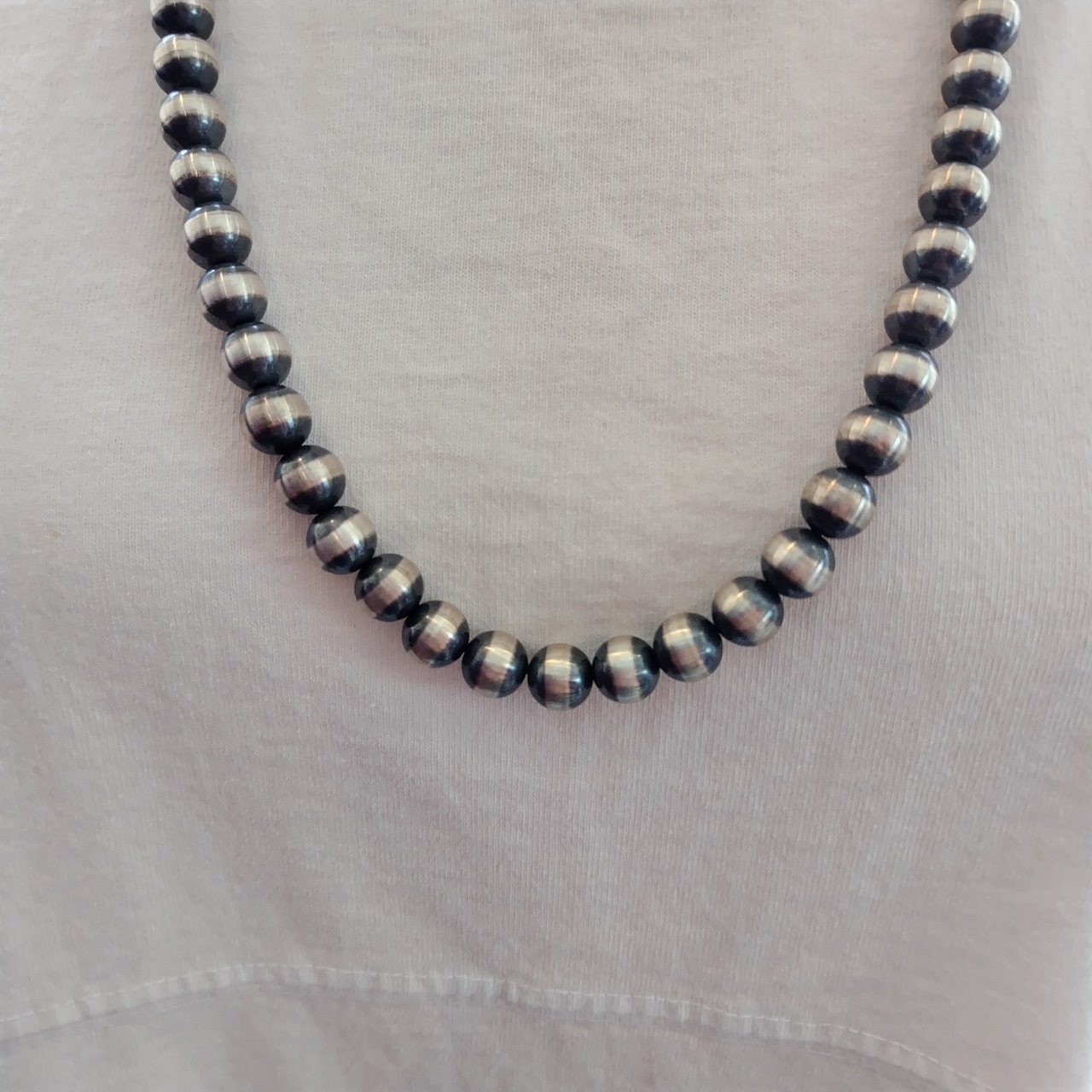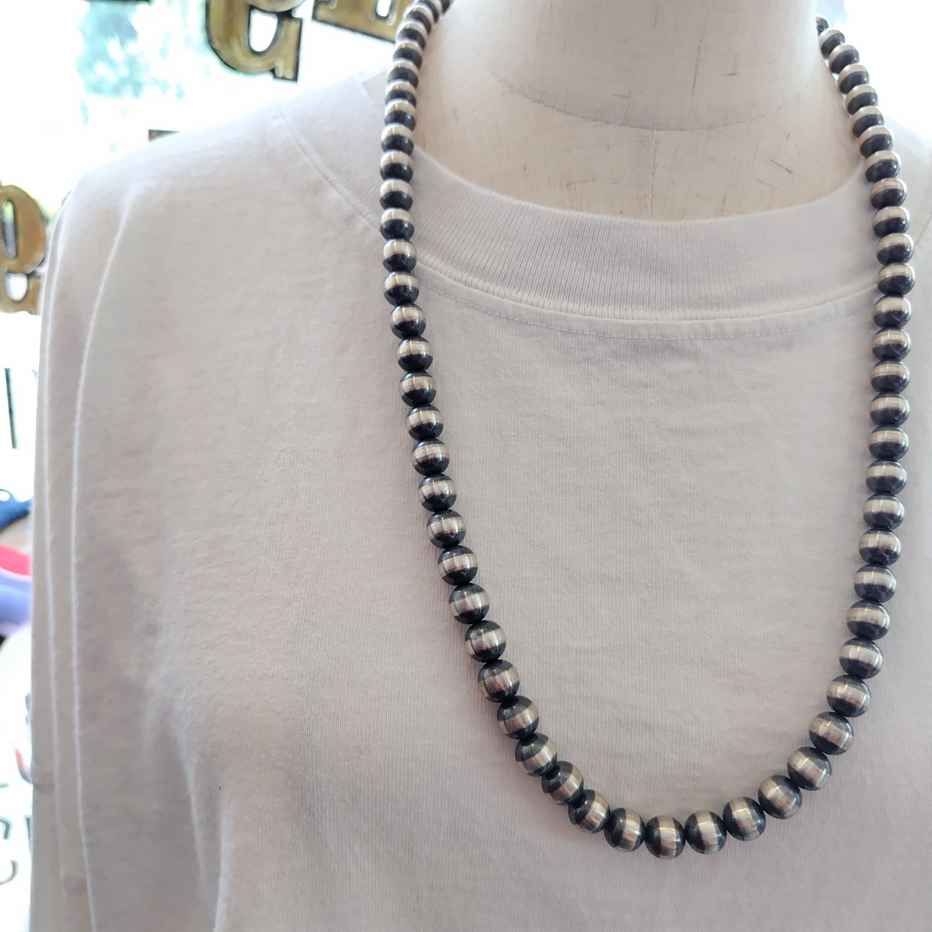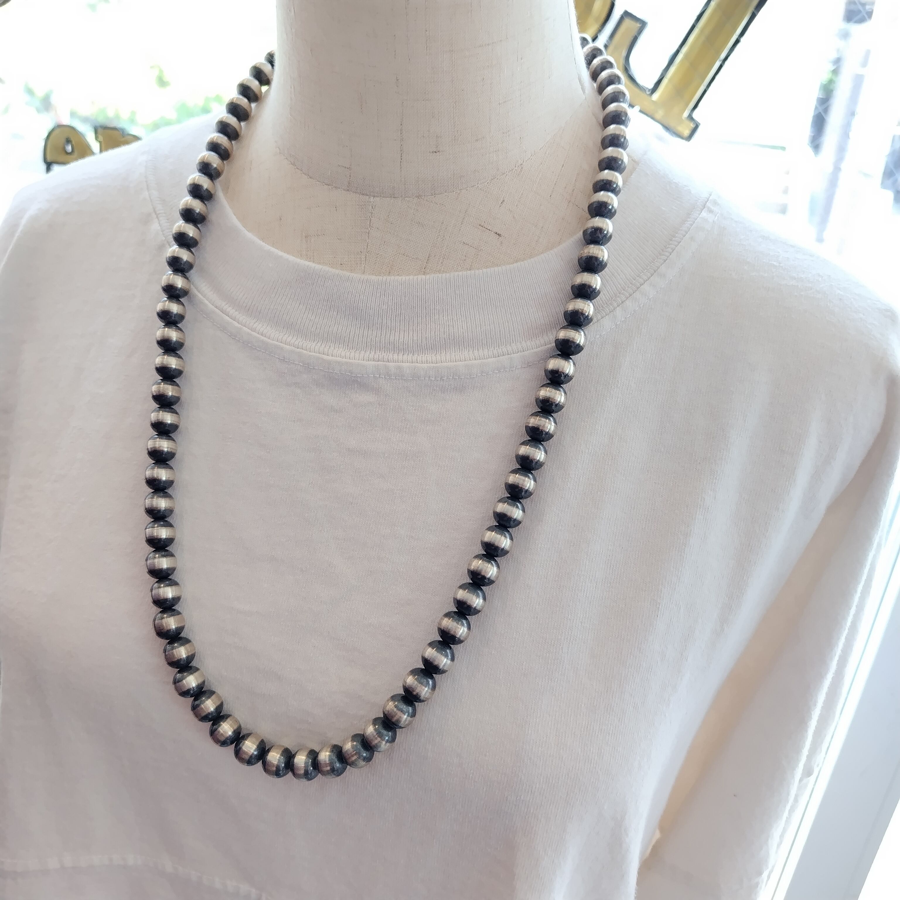 10mm玉 70cm シャイニー x 燻 ナバホパール シルバーネックレス インディアンジュエリー