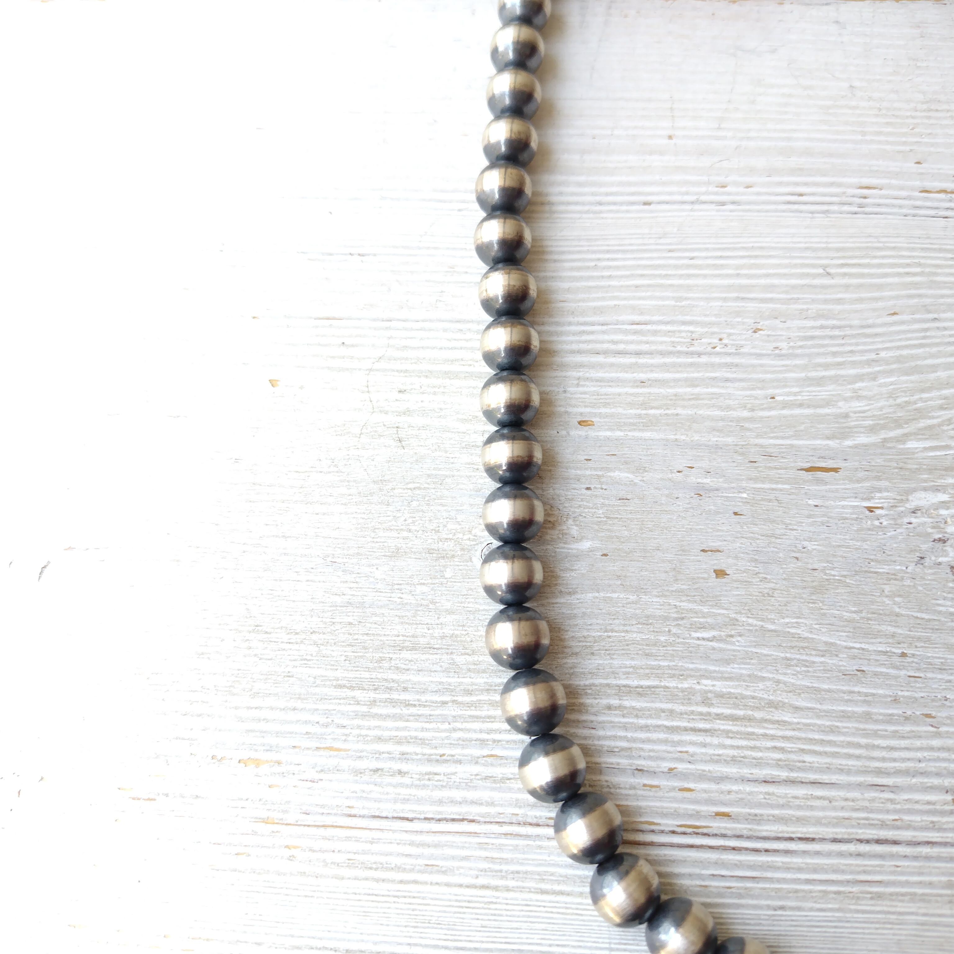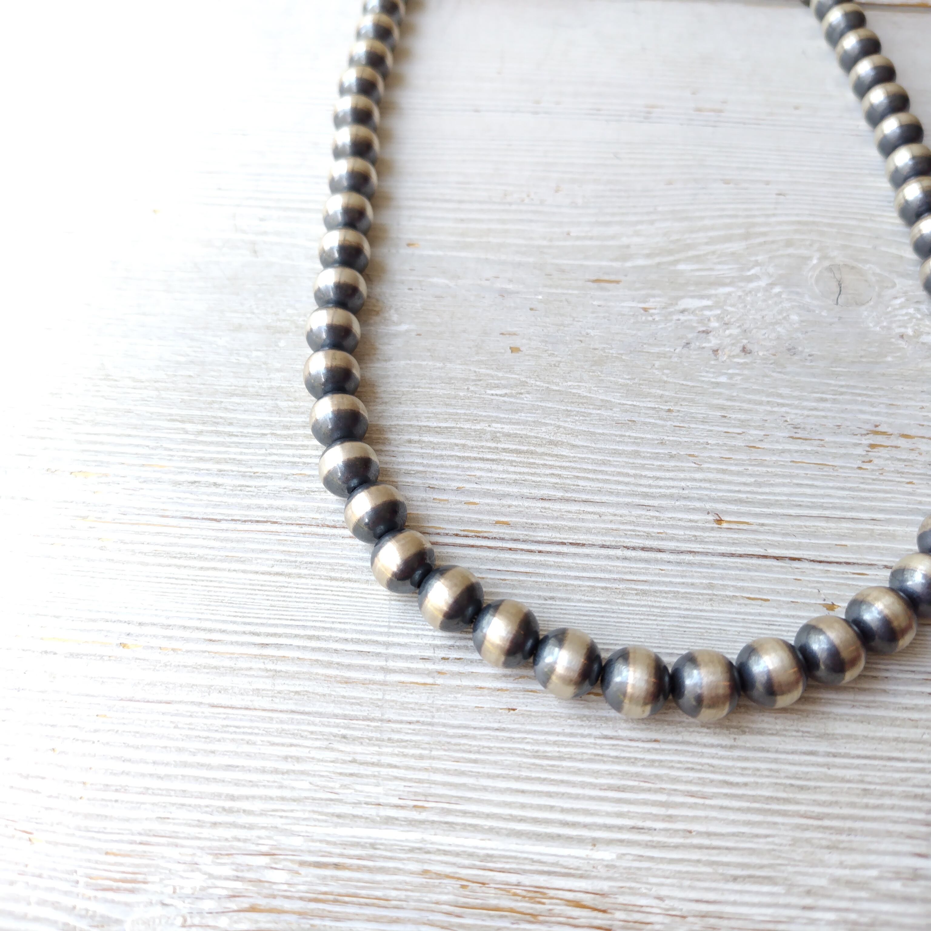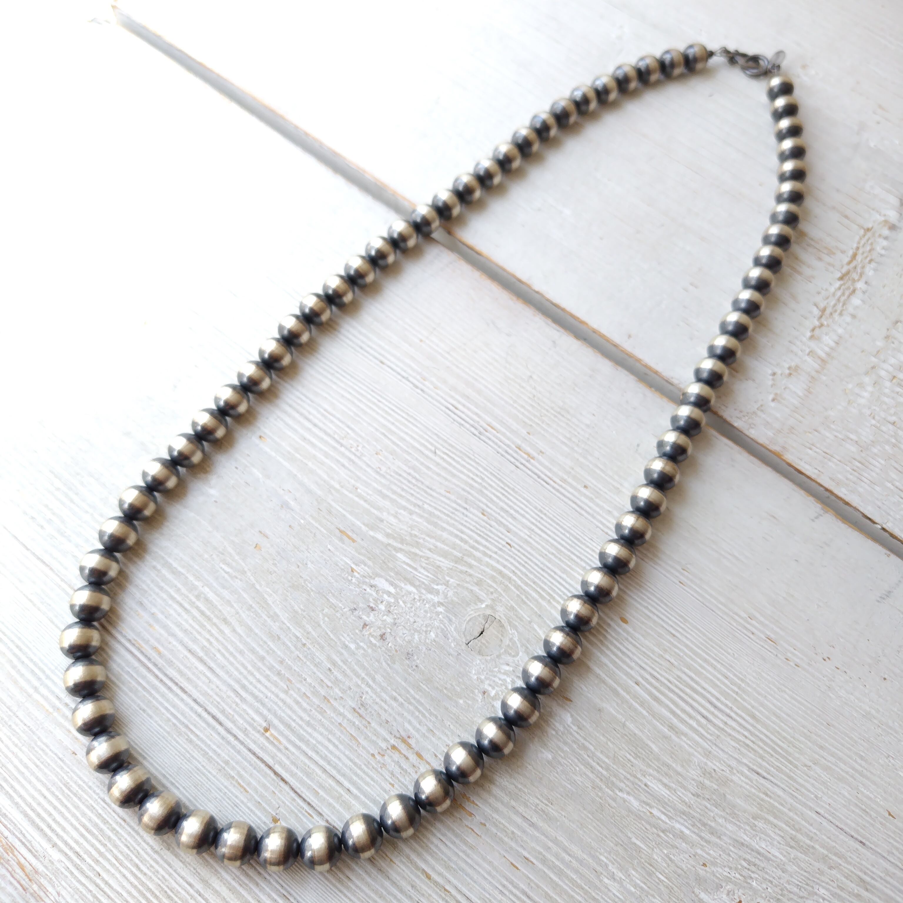 10mm玉 70cm シャイニー x 燻 ナバホパール シルバーネックレス インディアンジュエリー