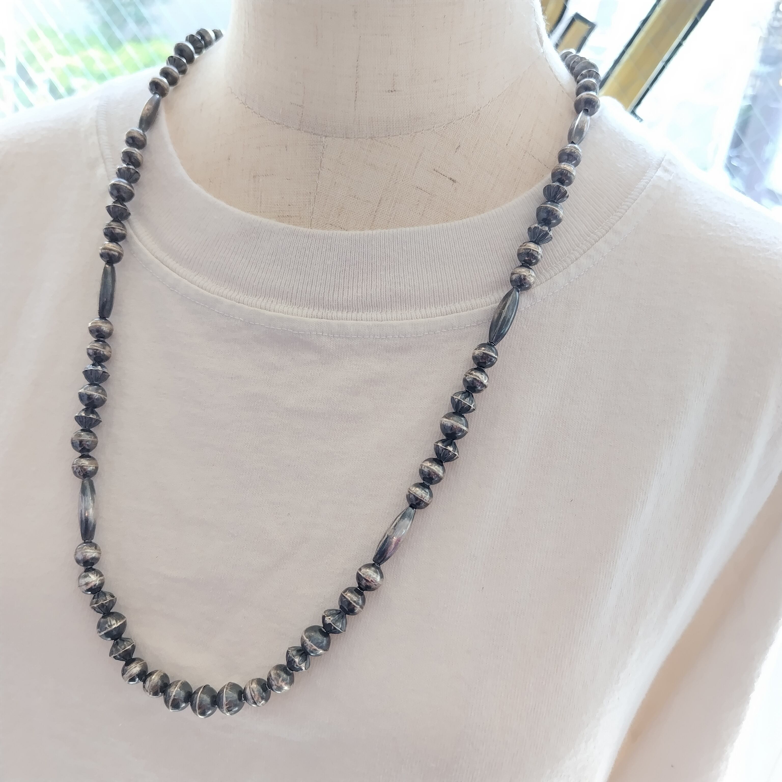 70s ビンテージ ナバホ シルバービーズネックレス 73cm インディアンジュエリー