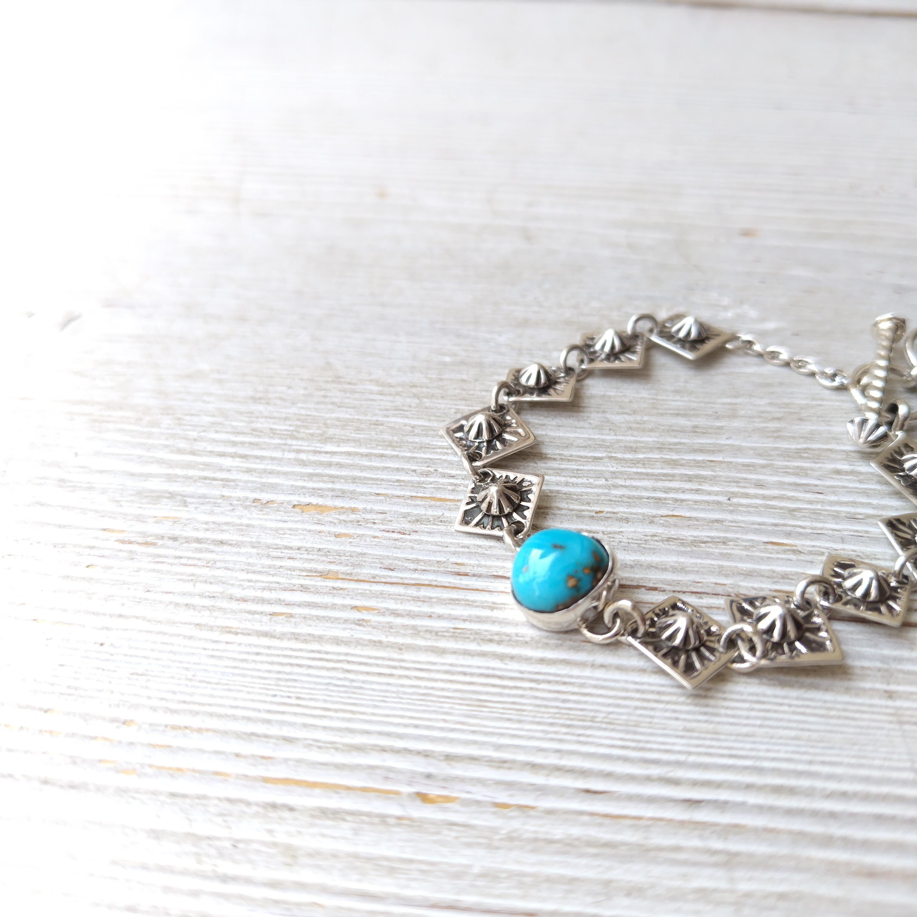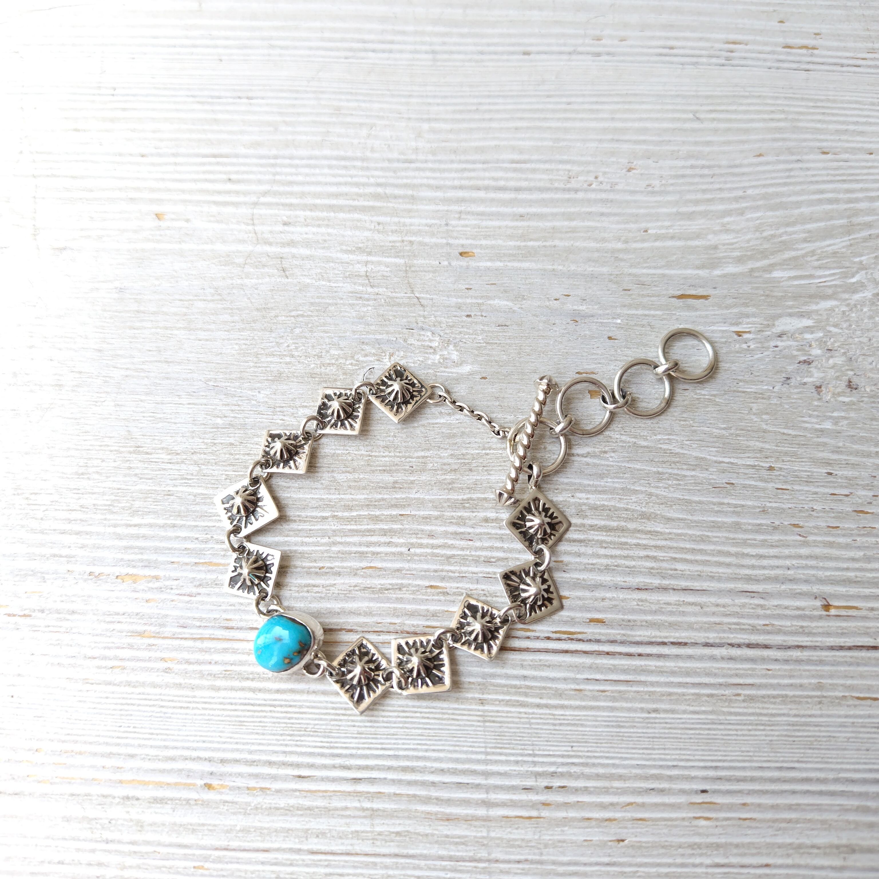 ナバホ Henry Mariano Tyrone Turquoise シルバーブレスレット 15.5cm〜18.5cm インディアンジュエリー