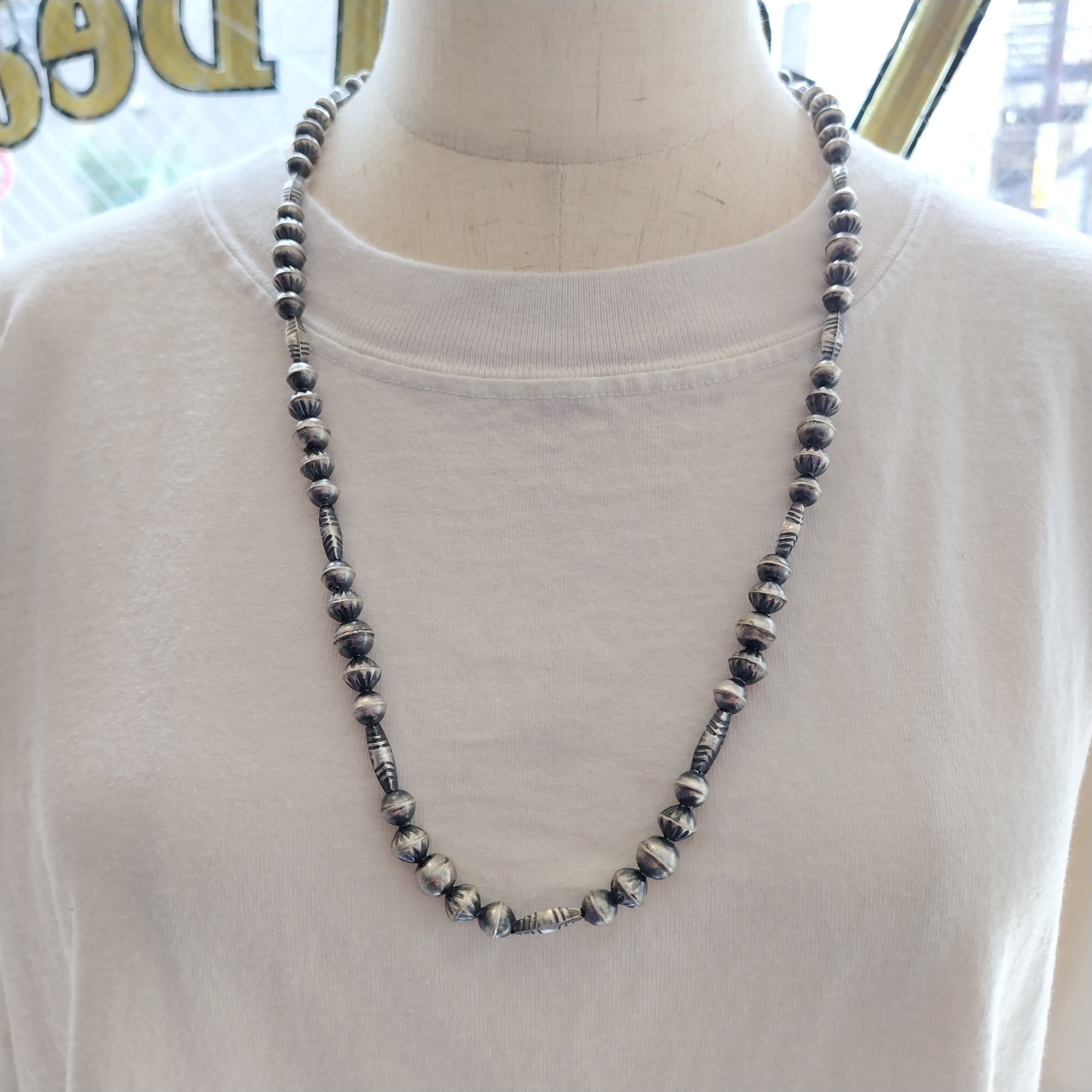 72.5cm 70s ビンテージ ナバホ シルバービーズネックレス インディアンジュエリー