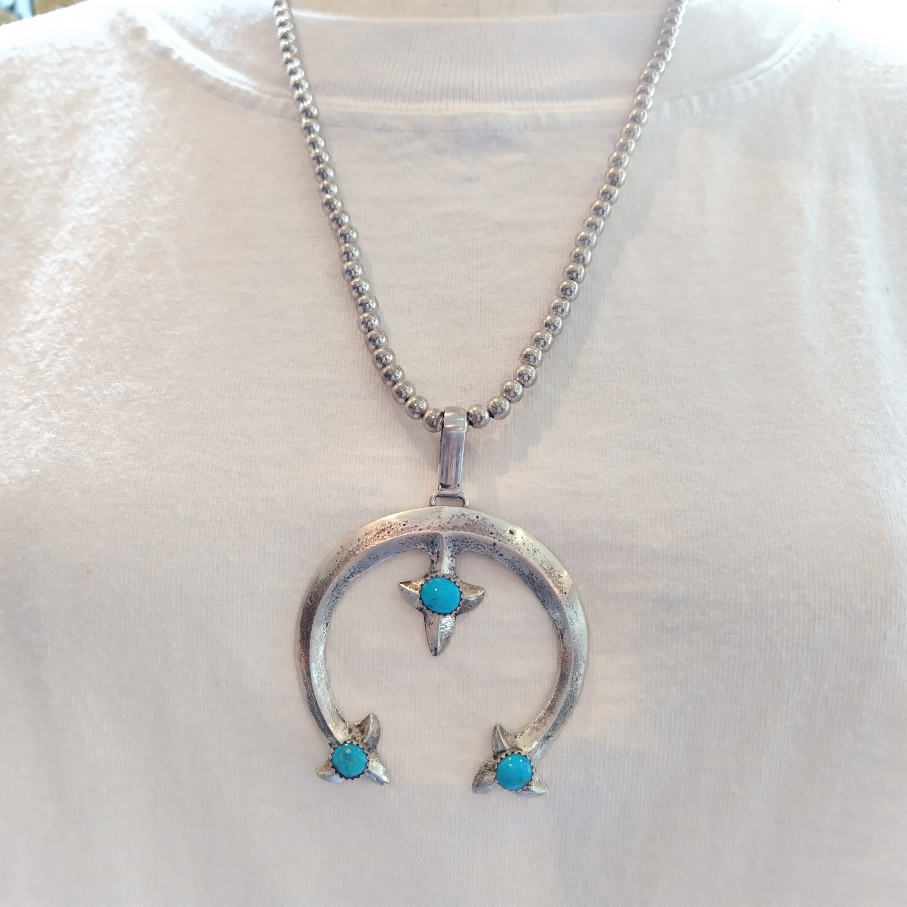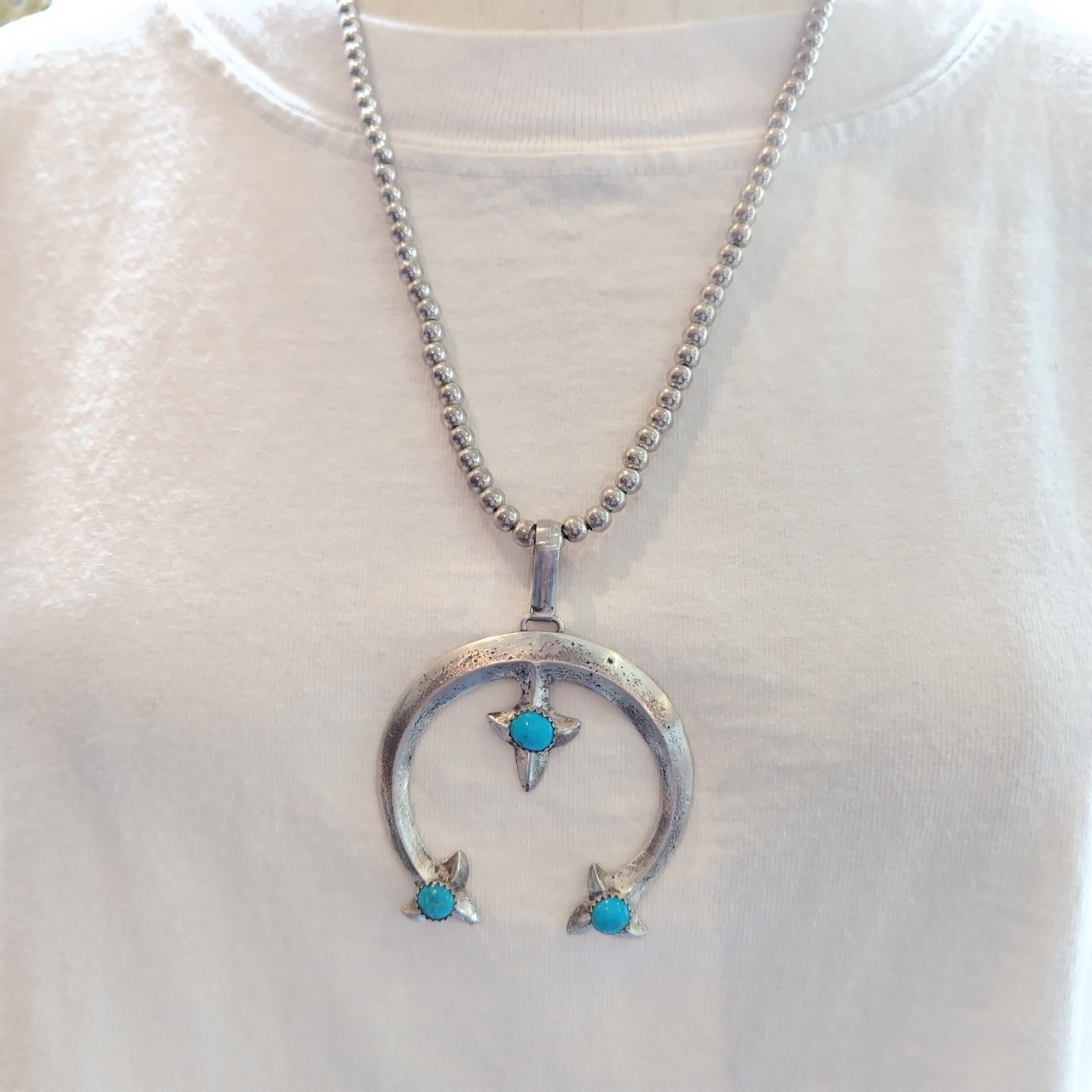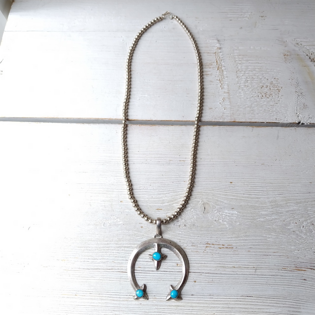 ナバホ ナジャ ターコイズ シルバートップ + 5mm玉 60cm ナバホパール シルバーネックレス セット インディアンジュエリー