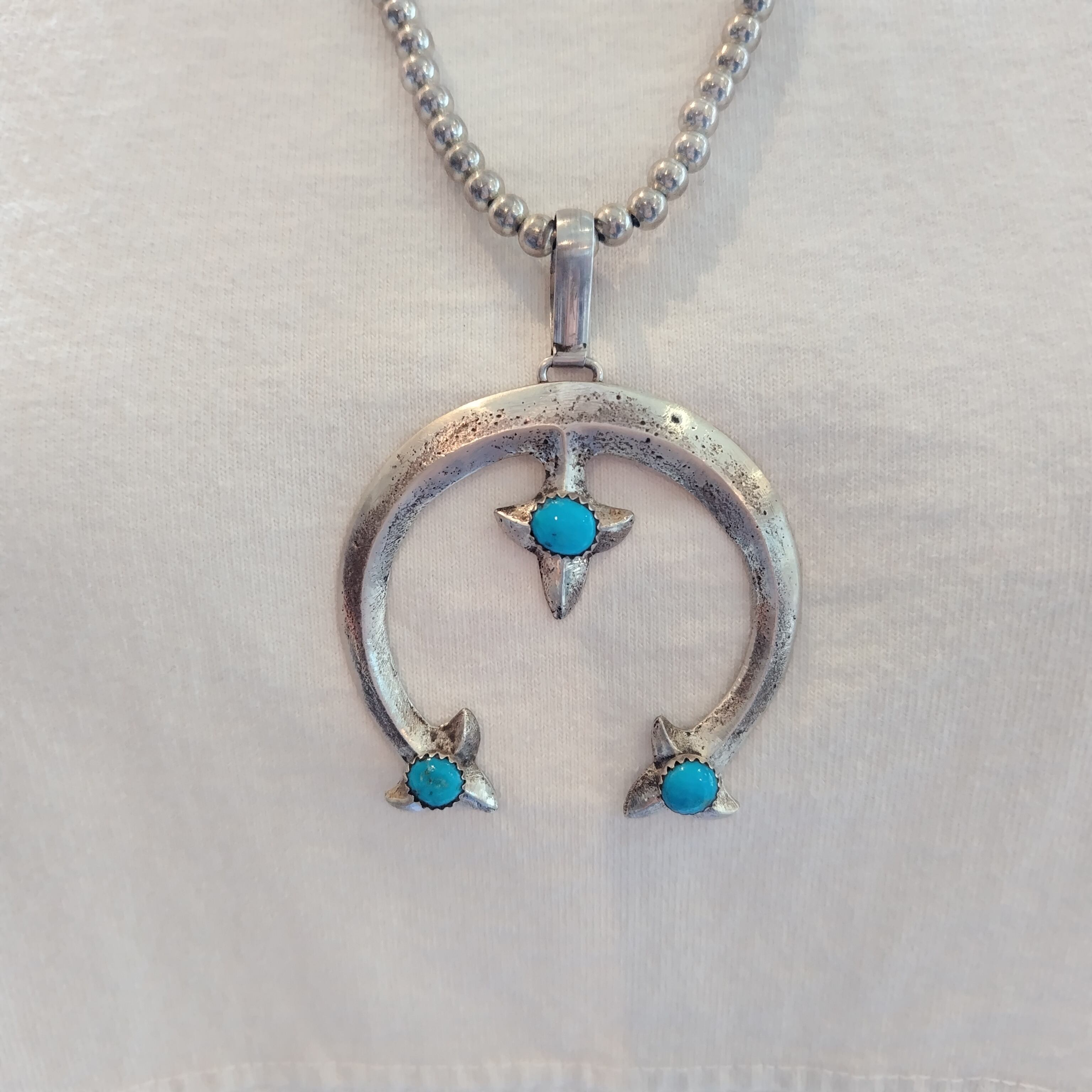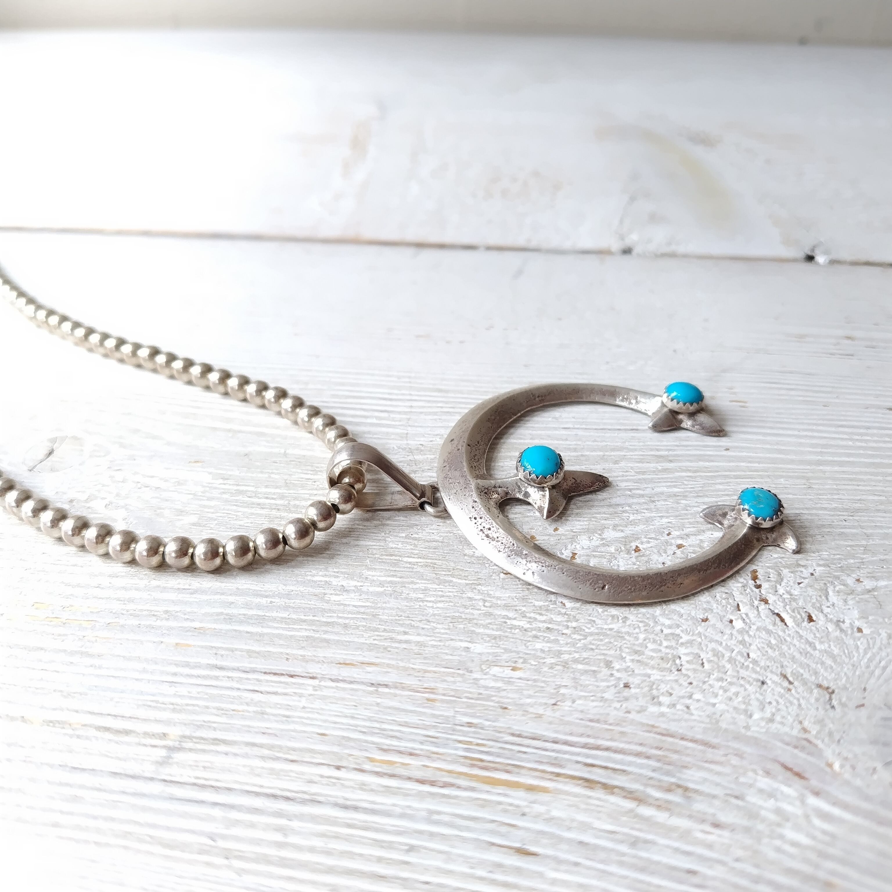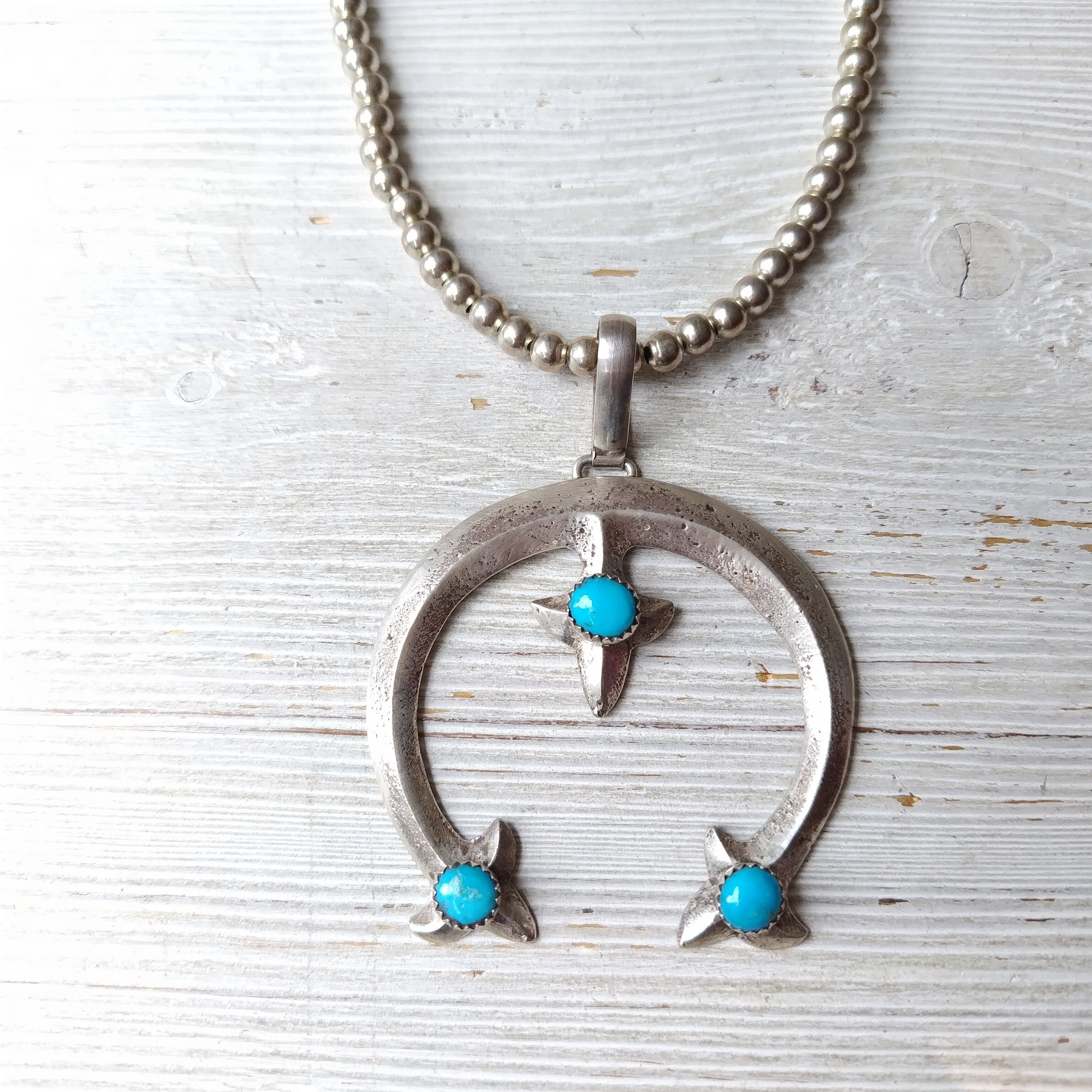 ナバホ ナジャ ターコイズ シルバートップ + 5mm玉 60cm ナバホパール シルバーネックレス セット インディアンジュエリー