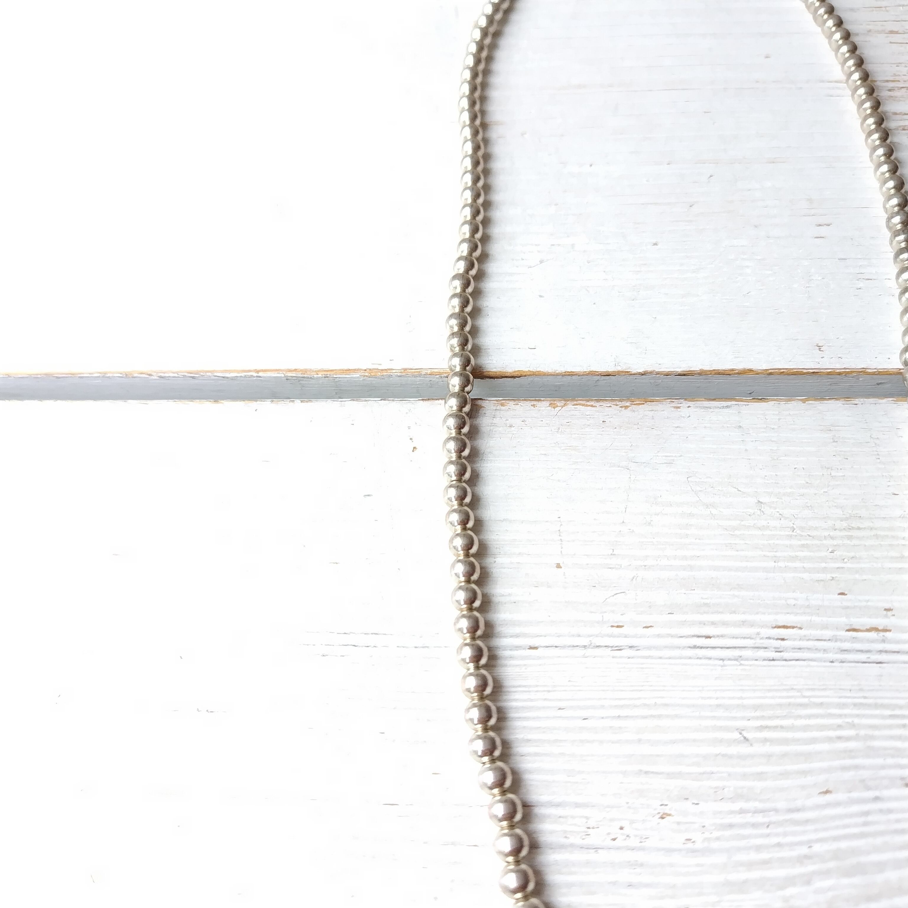 ナバホパール シルバーネックレスは 5mm玉 60cmになります。