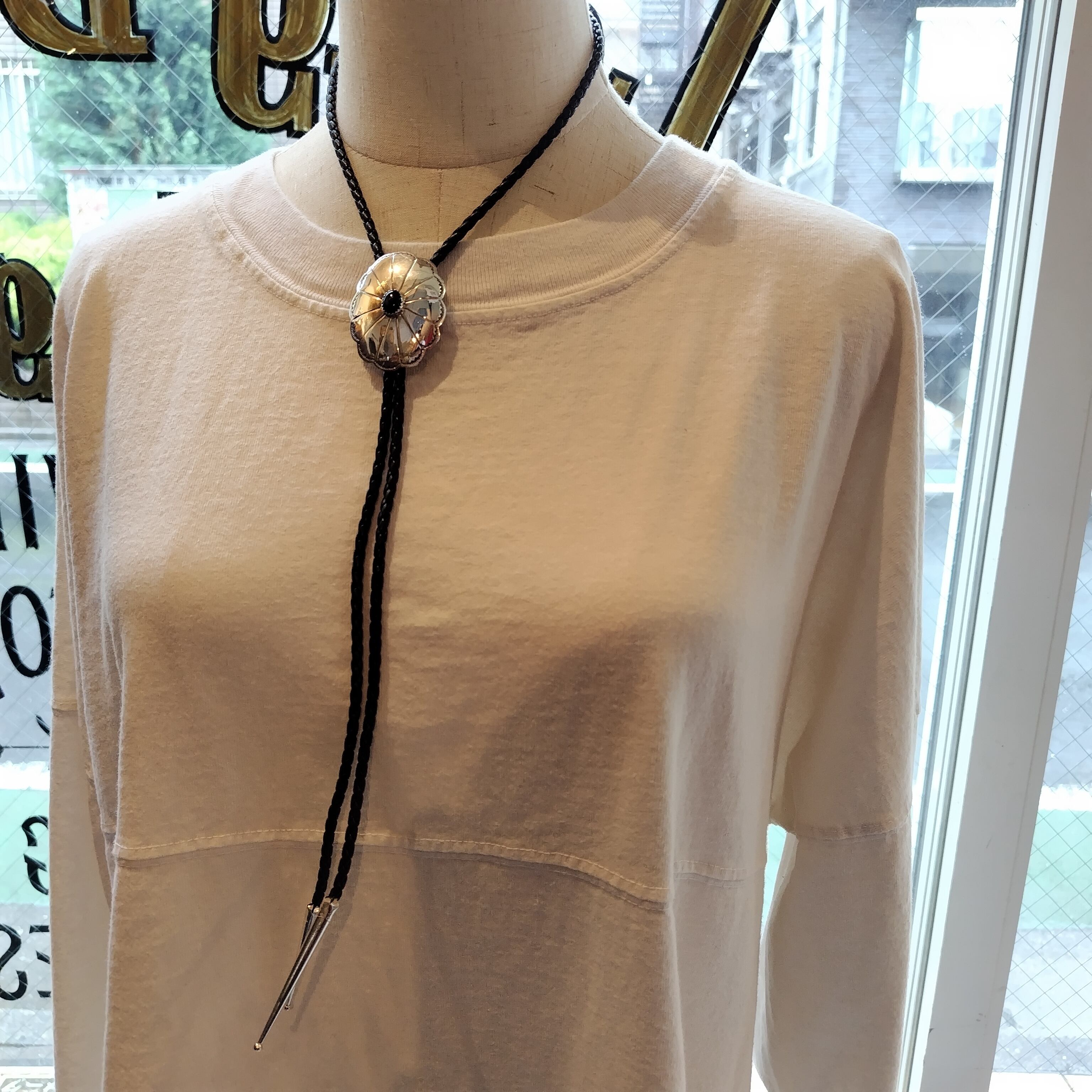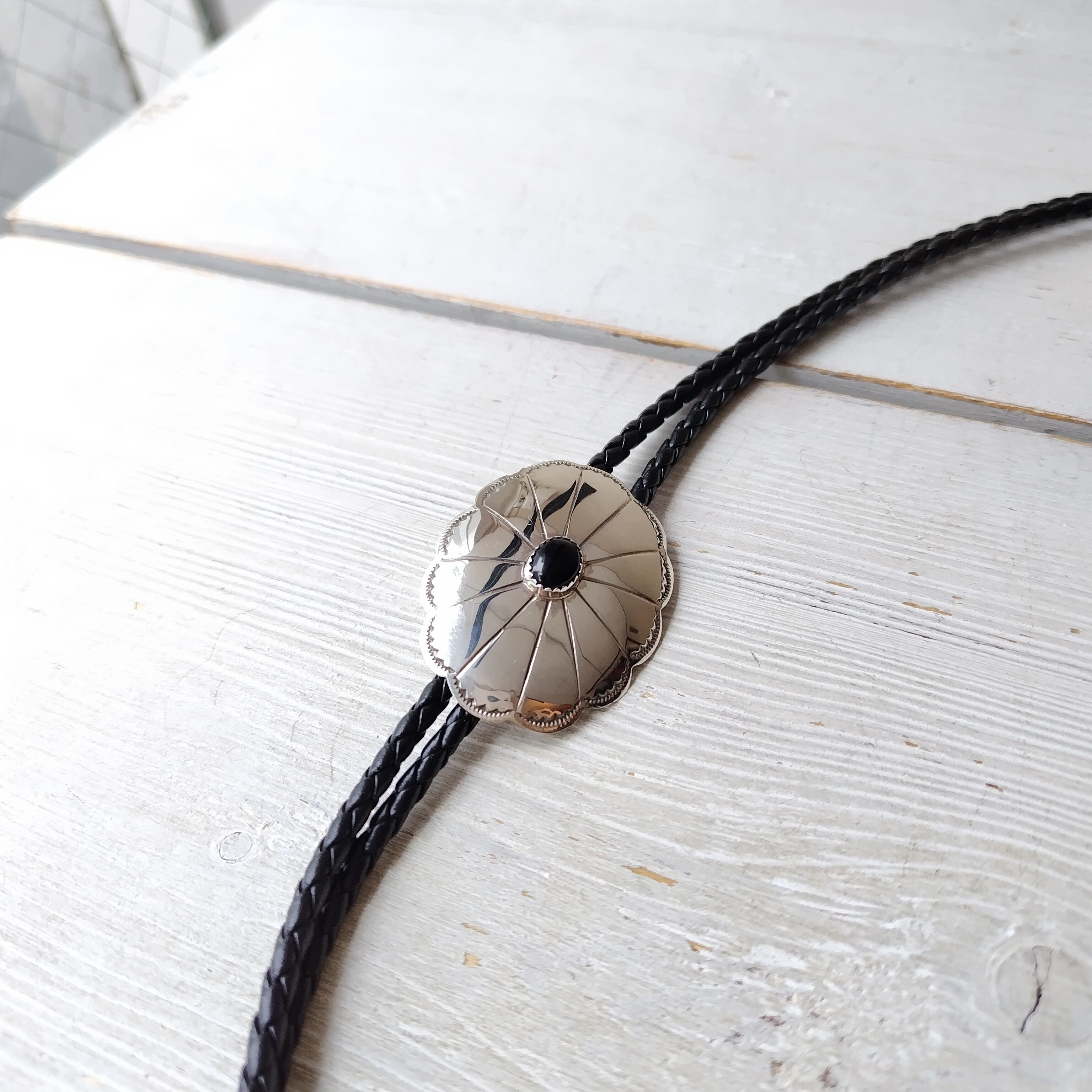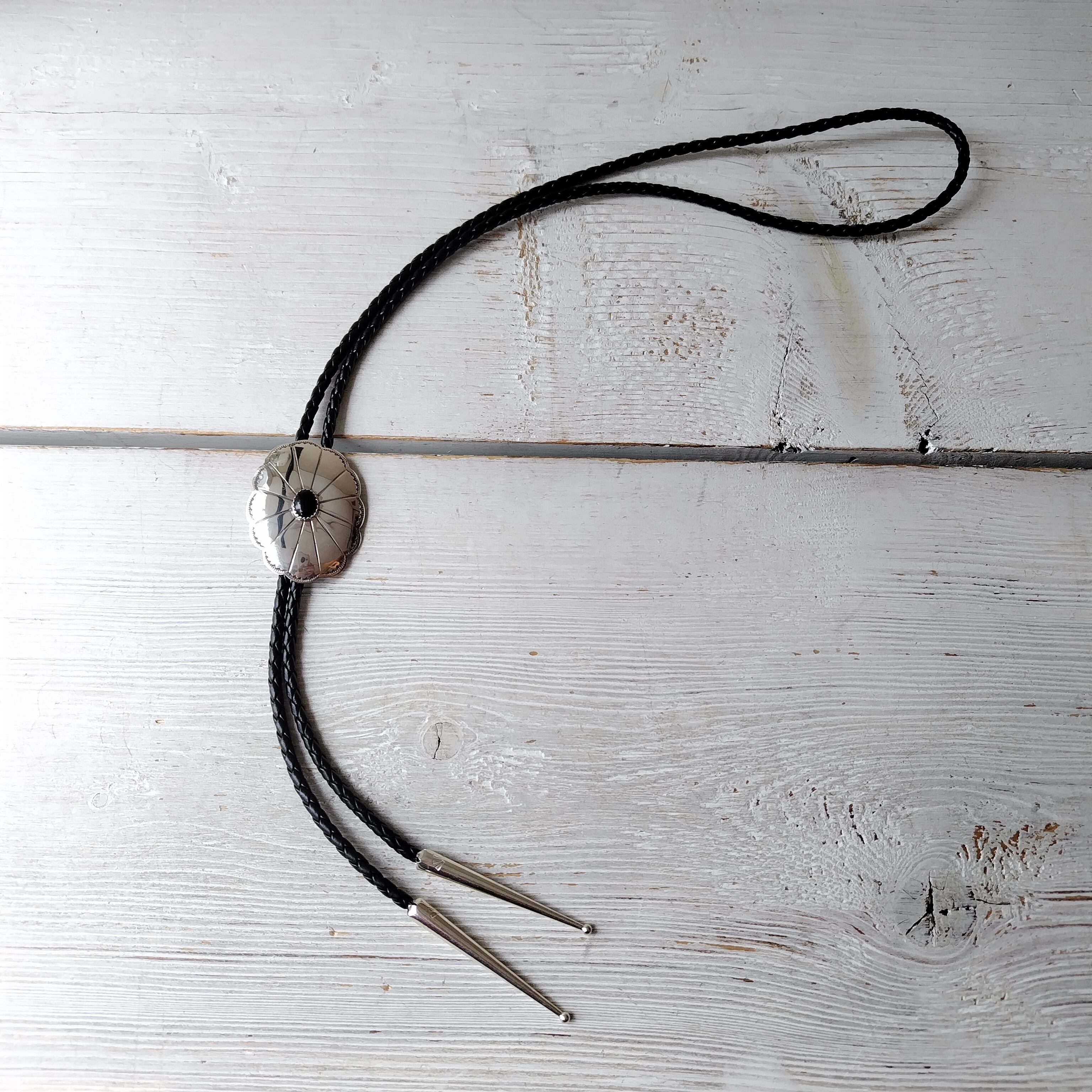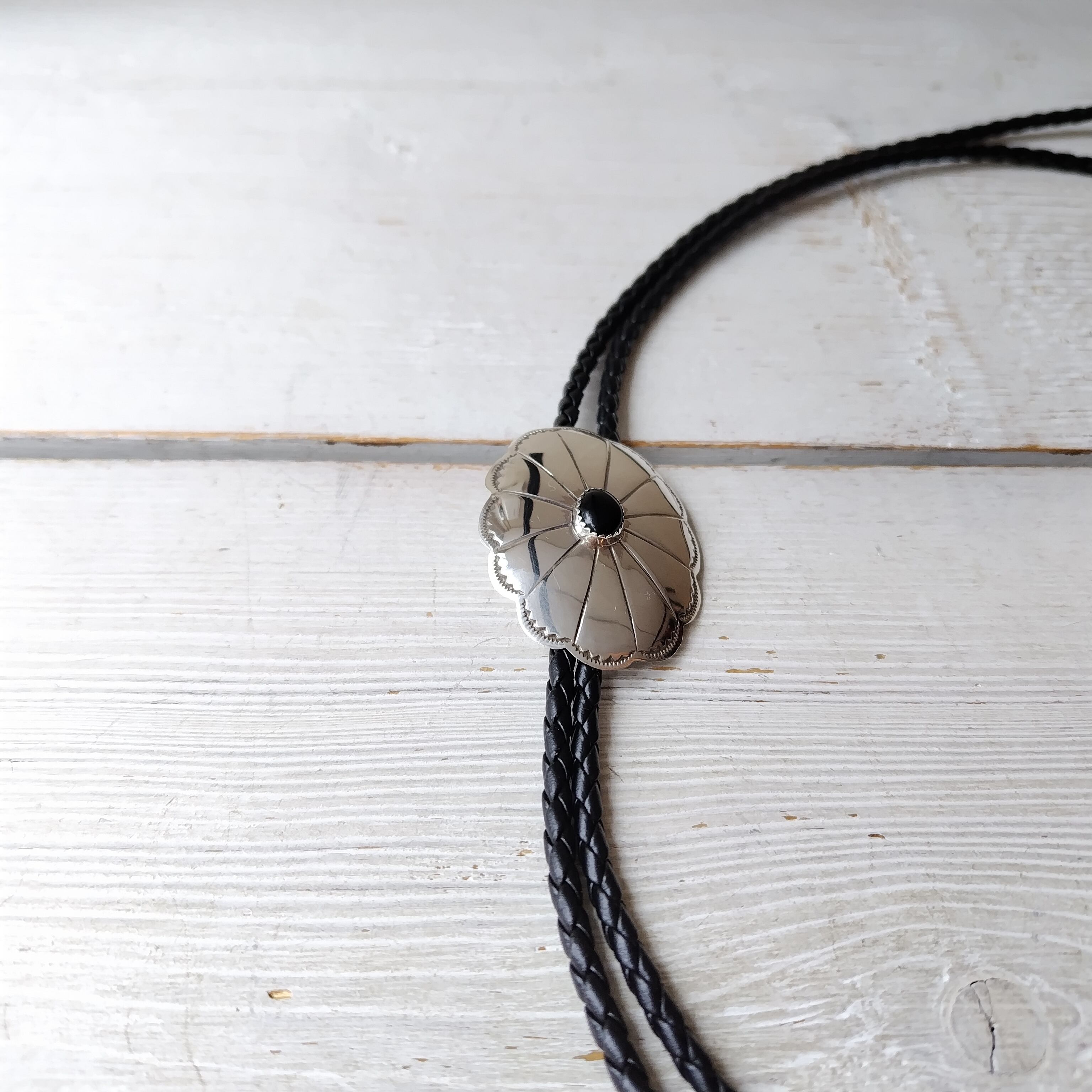 ナバホ オニキス シルバーコンチョ ボロタイ インディアンジュエリー