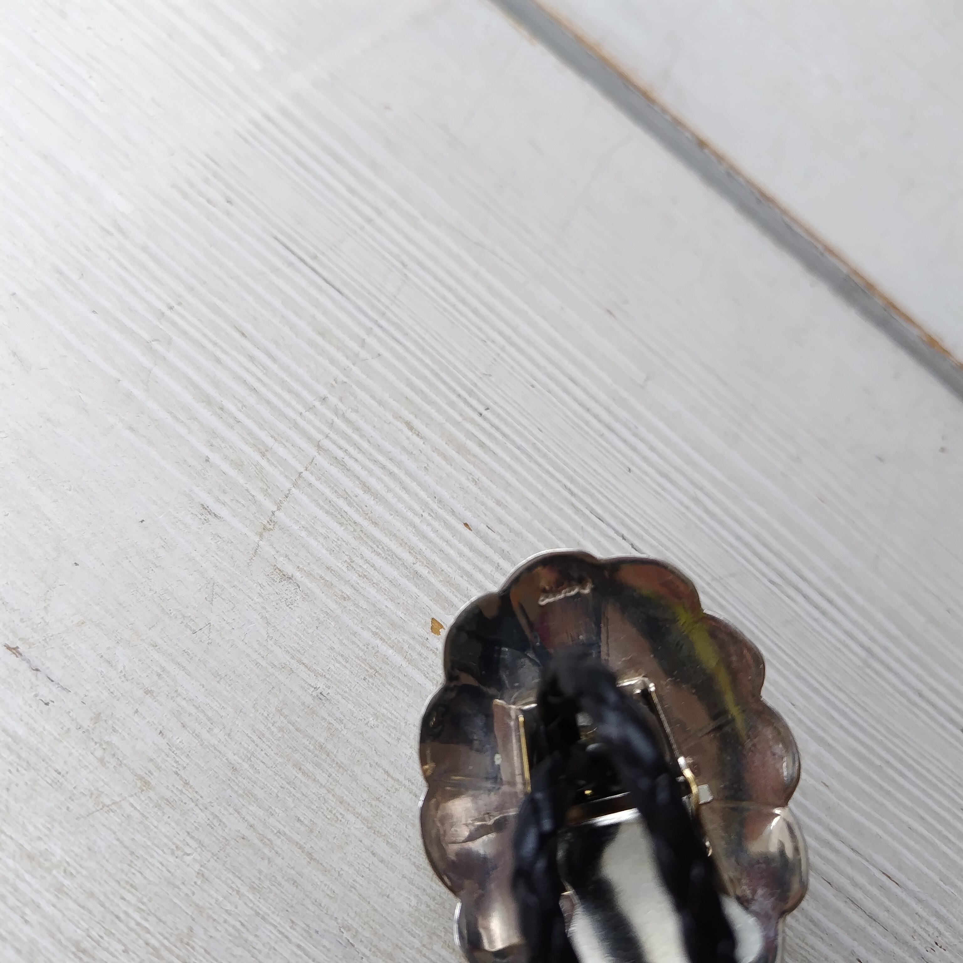 ナバホ族 素晴らしいデザインのオニキス シルバーコンチョ ボロタイになります!!