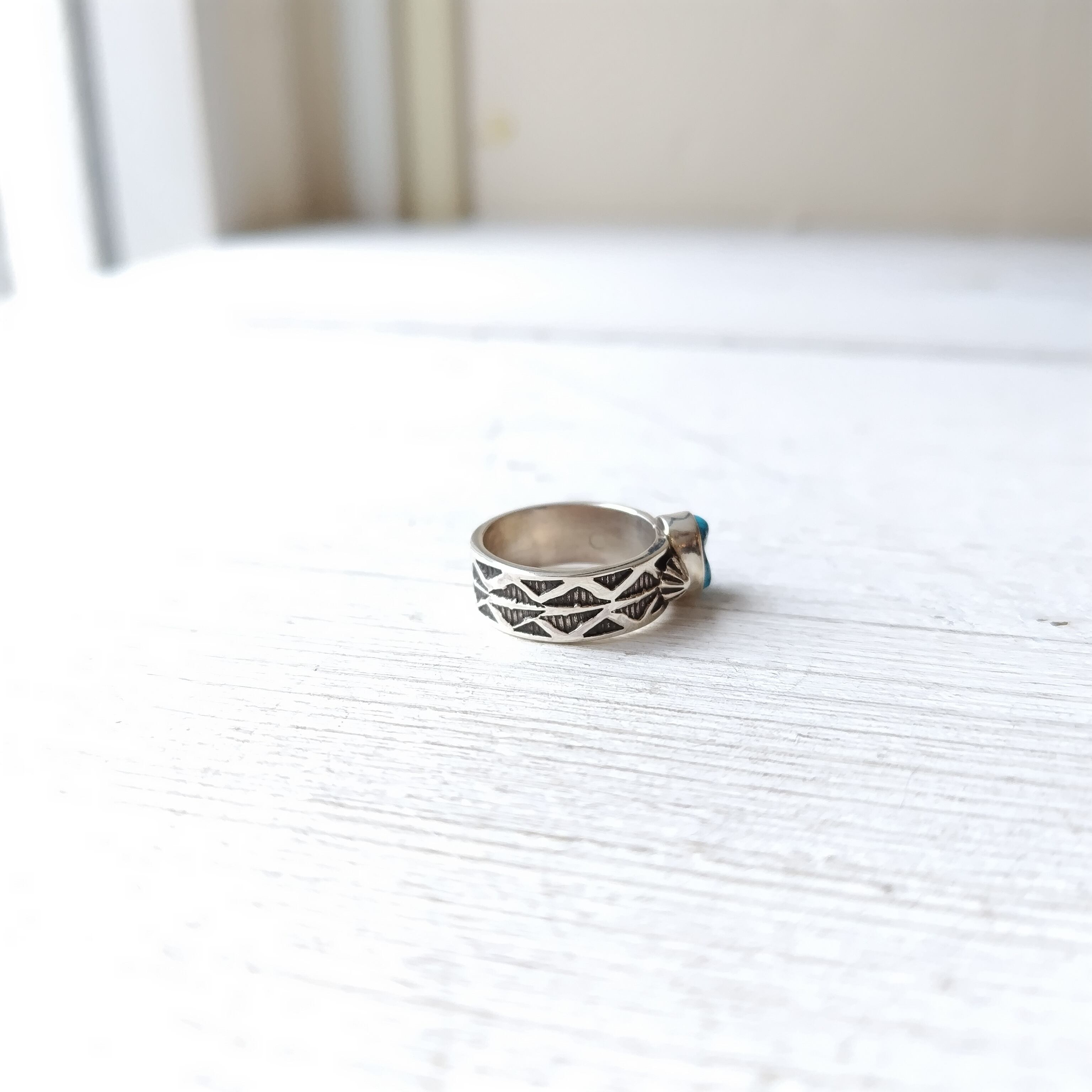 14号 ナバホ Henry Mariano Kingman Turquoise シルバーリング インディアンジュエリー