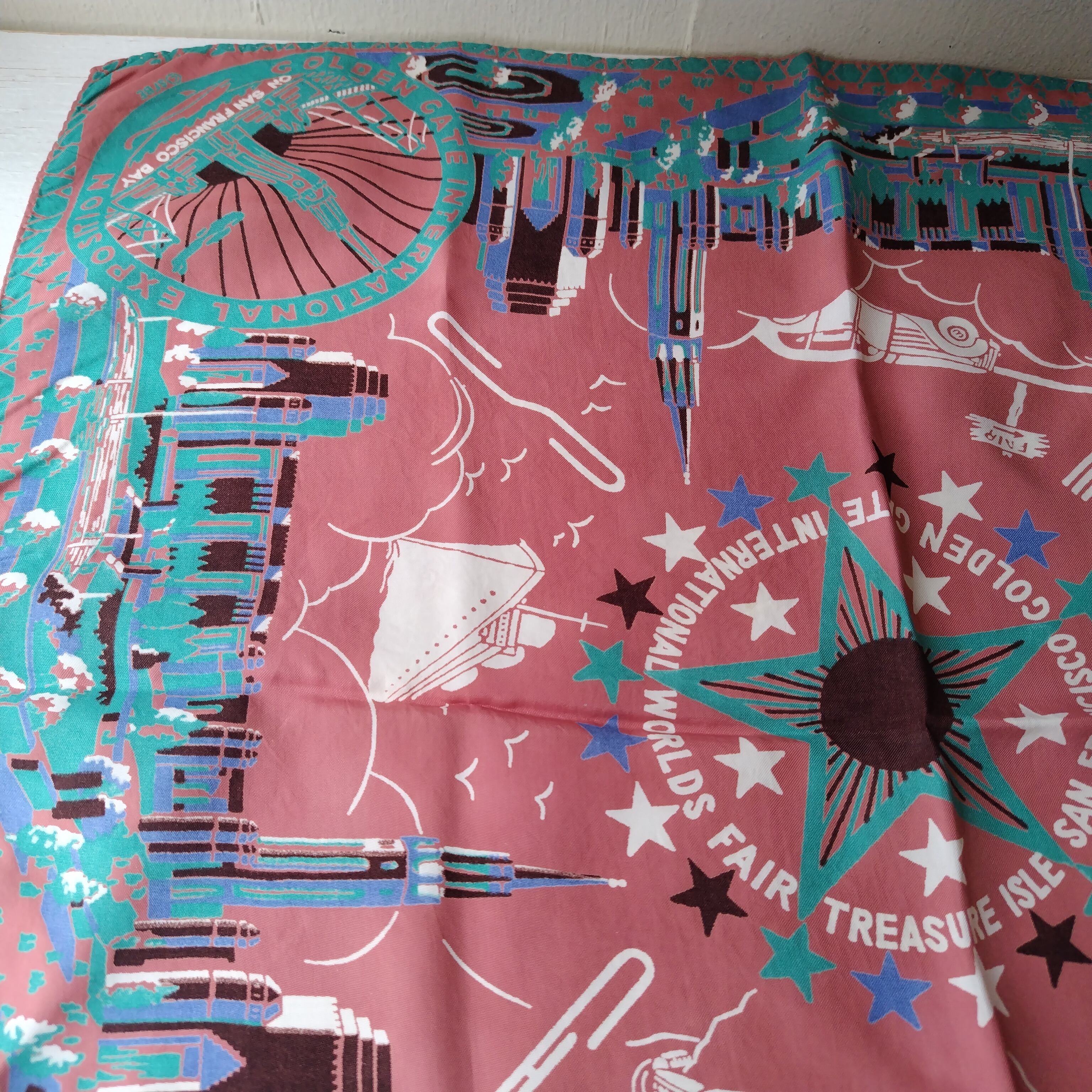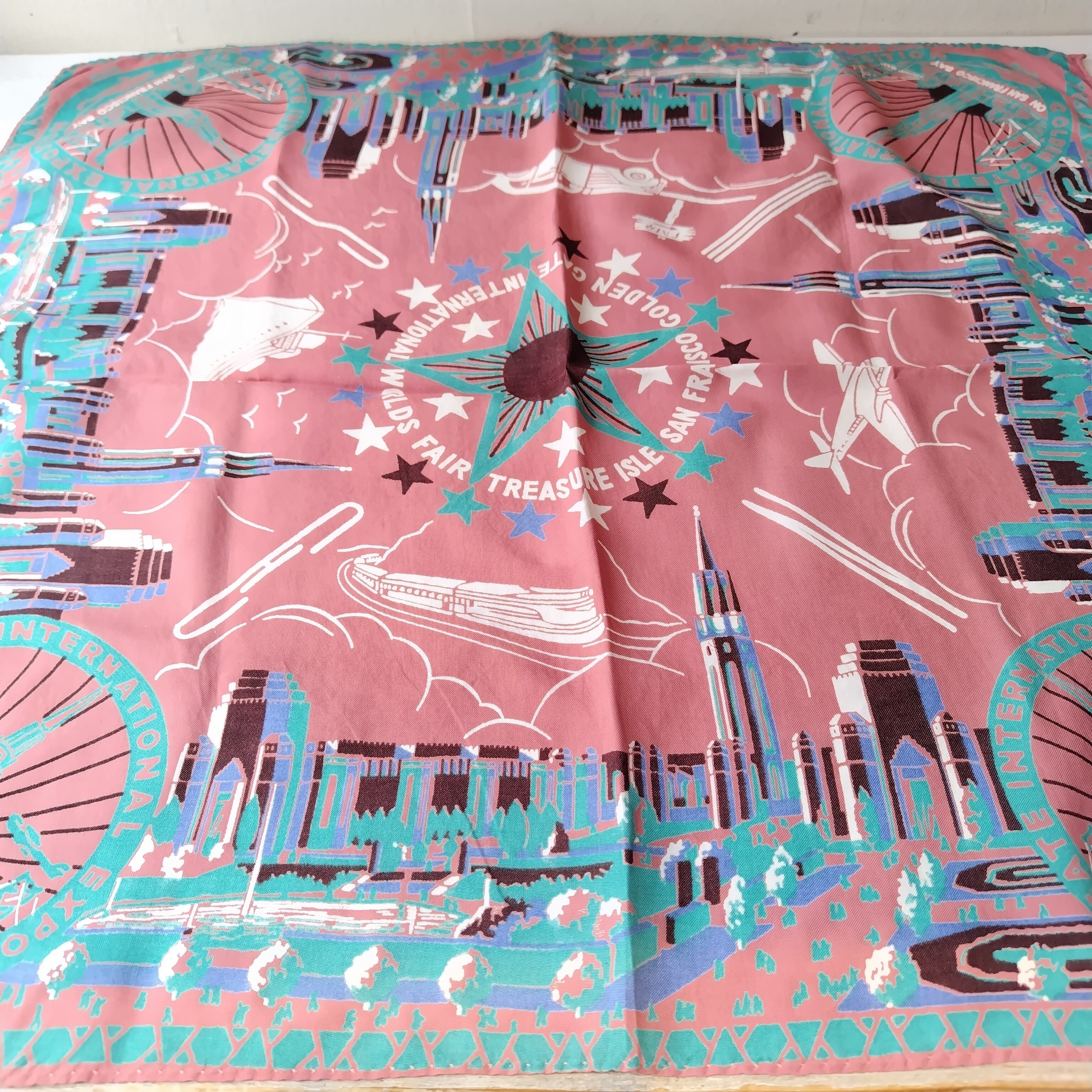 30s 1939 SAN FRANCISCO GOLDEN GATE INTERNATIONAL WORLDS FAIR Vintage Scarf