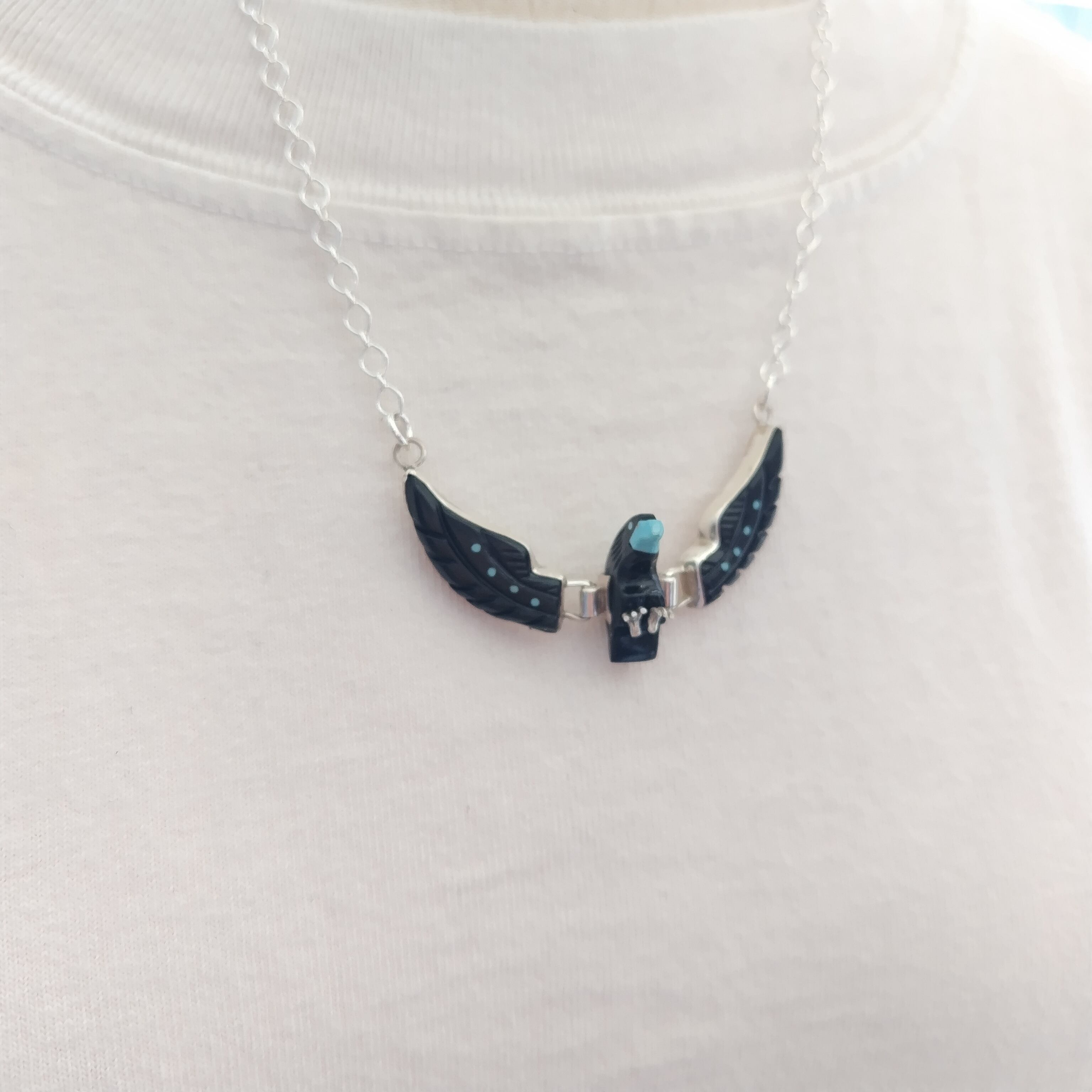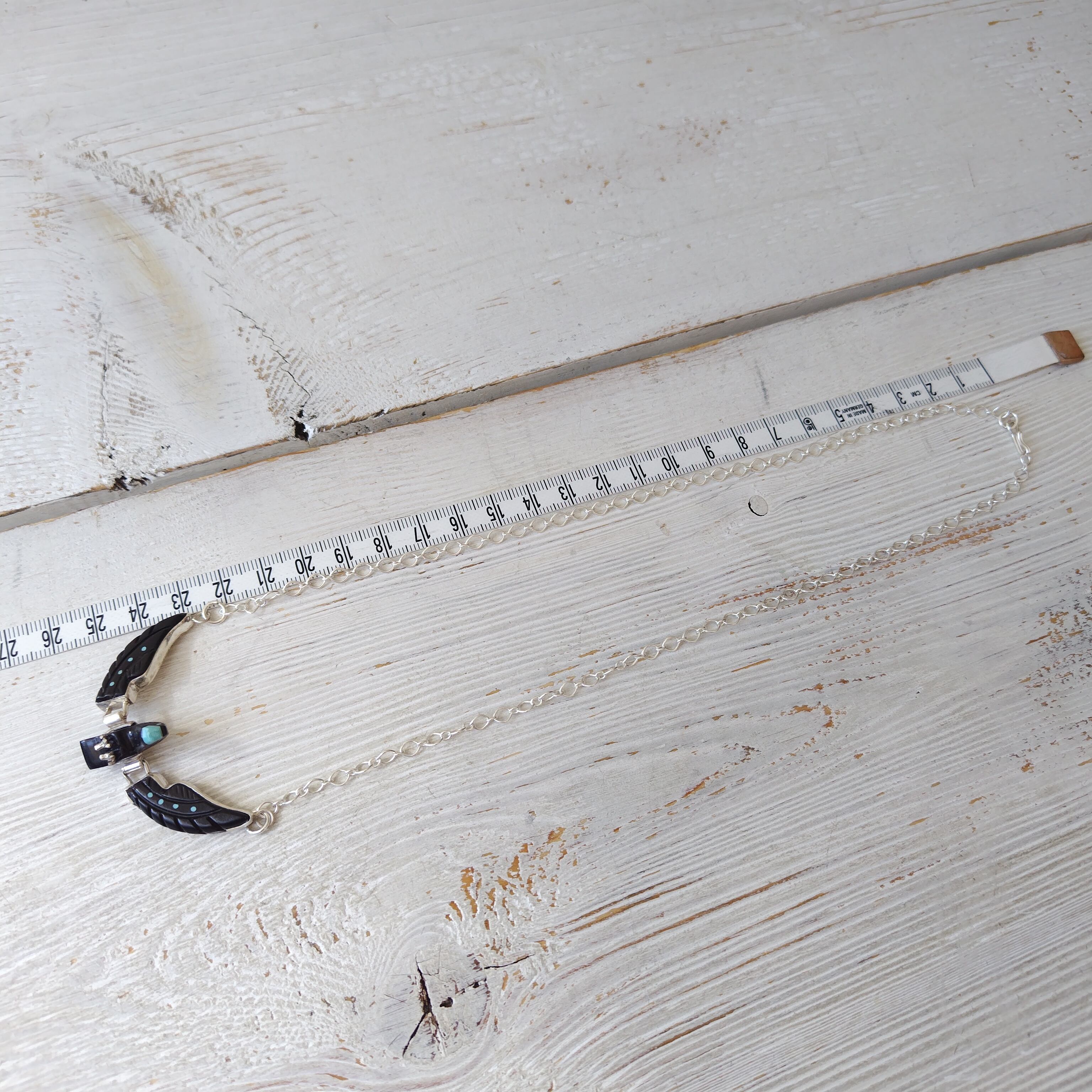 雰囲気最高のナバホ ジェット x ターコイズ イーグルシルバーネックレスになります!