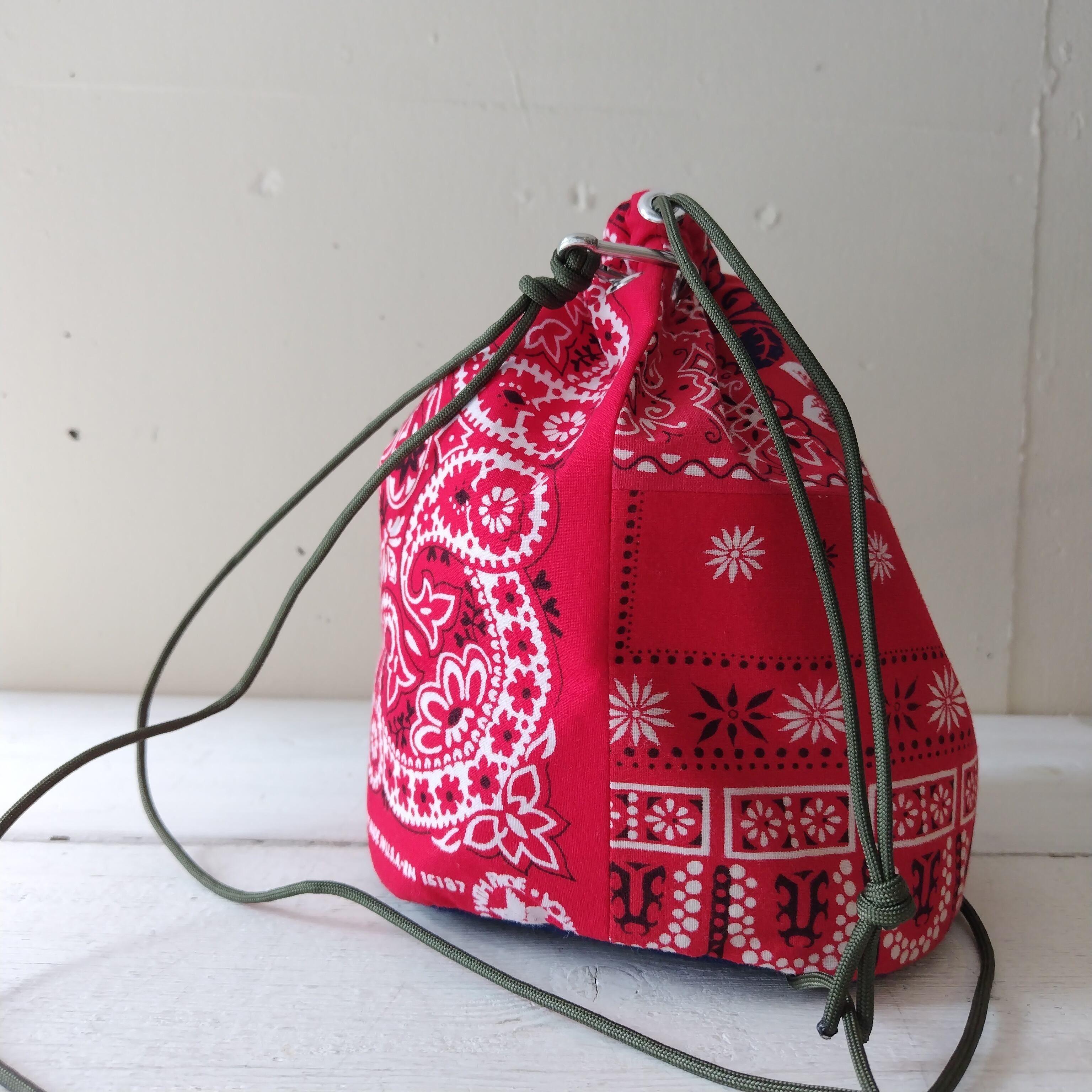 ラージサイズ バンダナ リメイク巾着 2wayショルダーバッグ