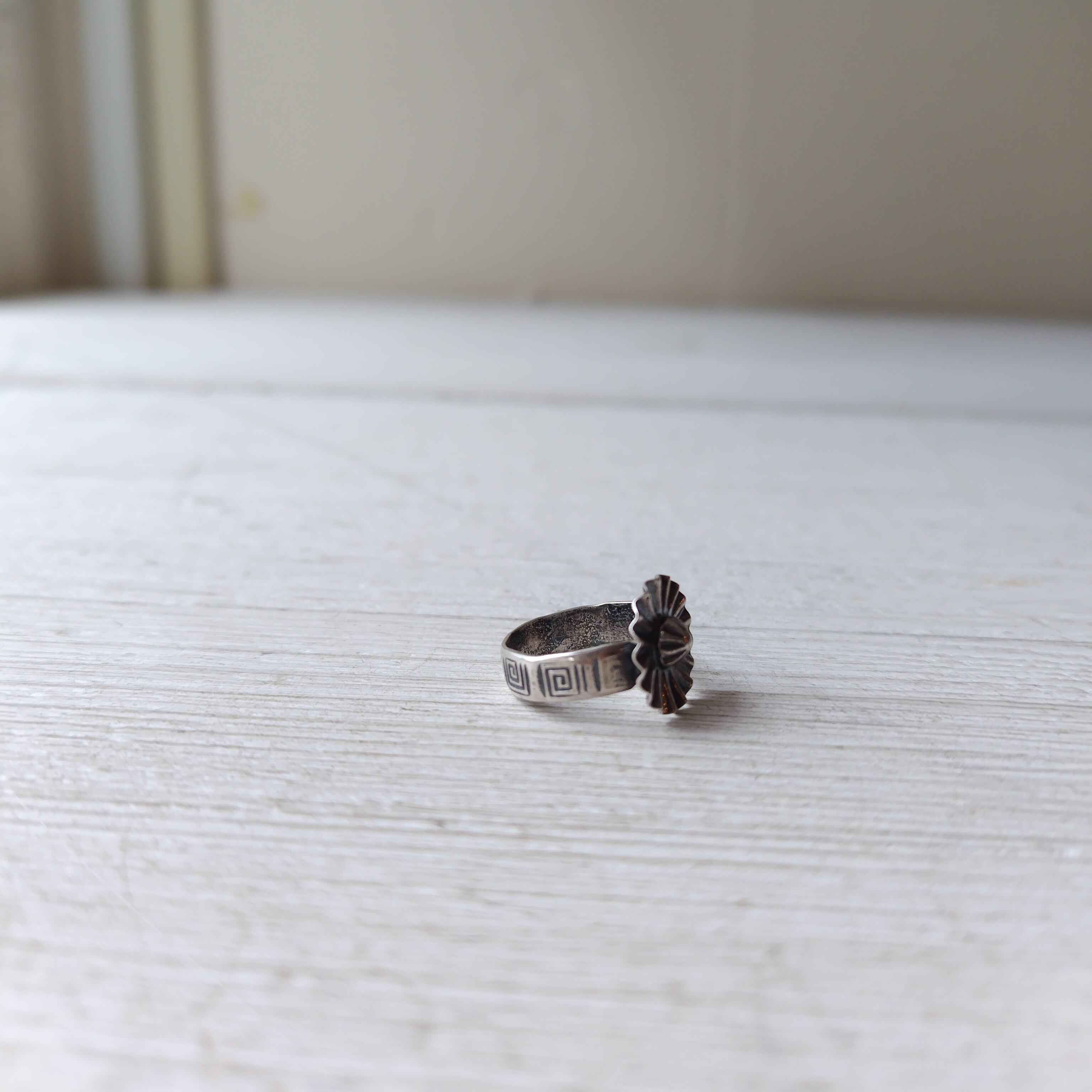 雰囲気、デザインのいい 70s ビンテージ インディアンジュエリー シルバーリングになります!