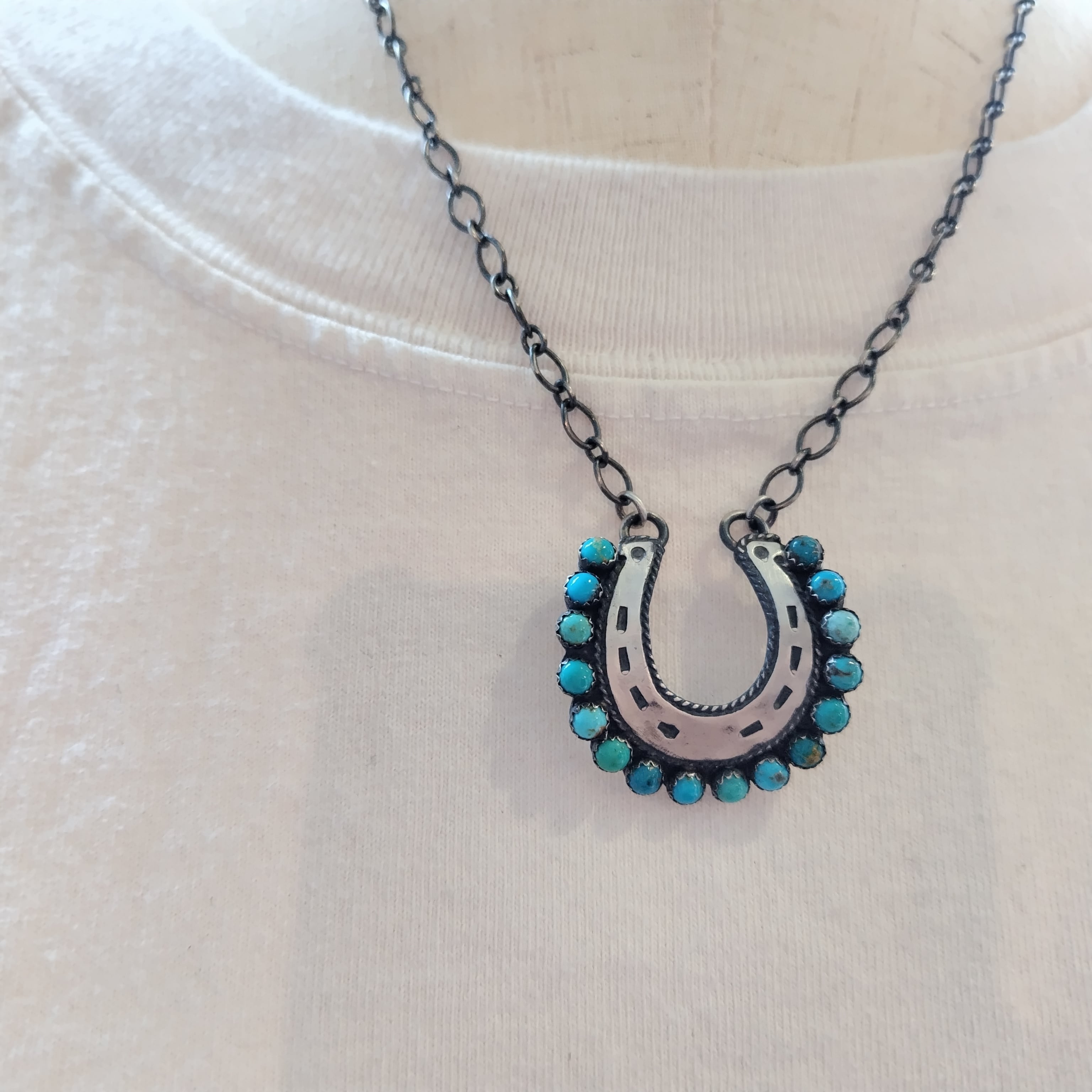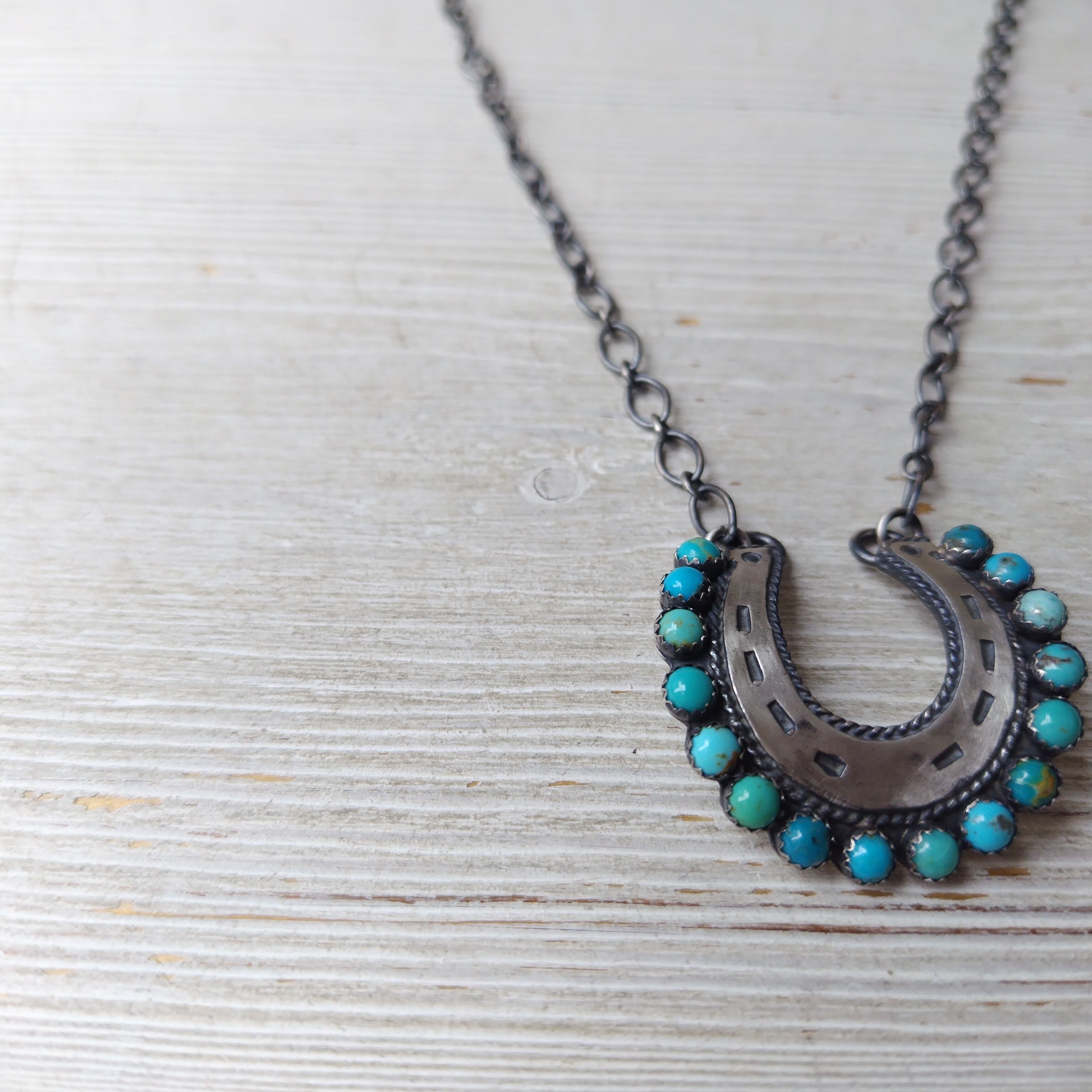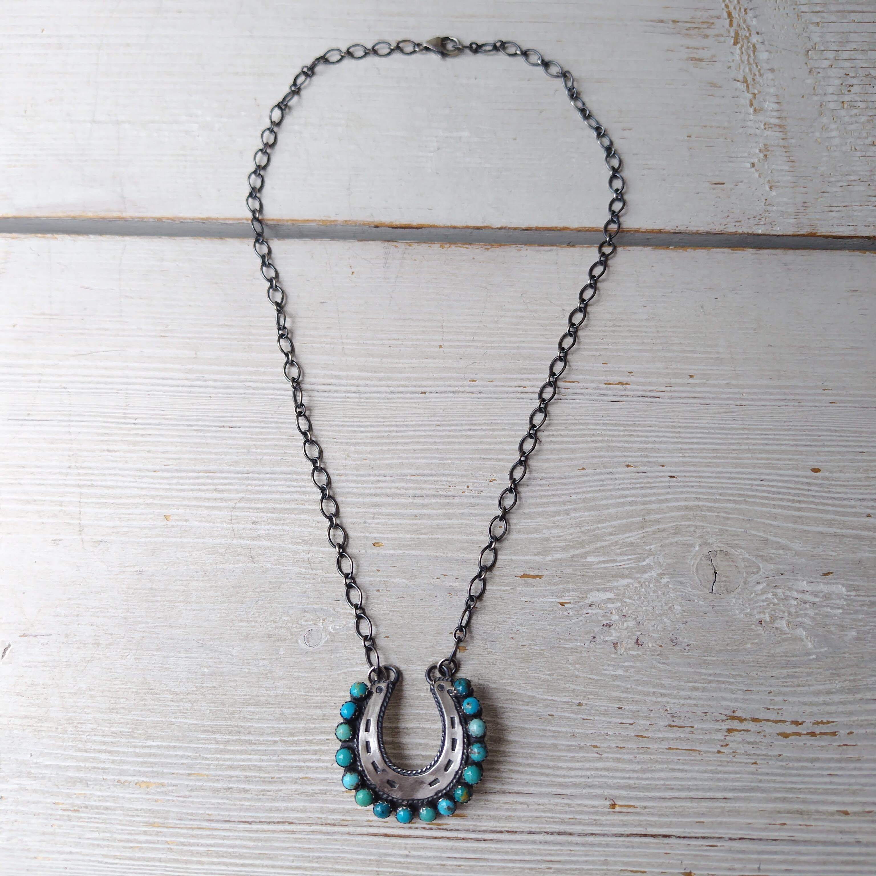 ナバホ EMER THOMPSON Kingman TQ シルバーネックレス ビンテージフィニッシュ インディアンジュエリー