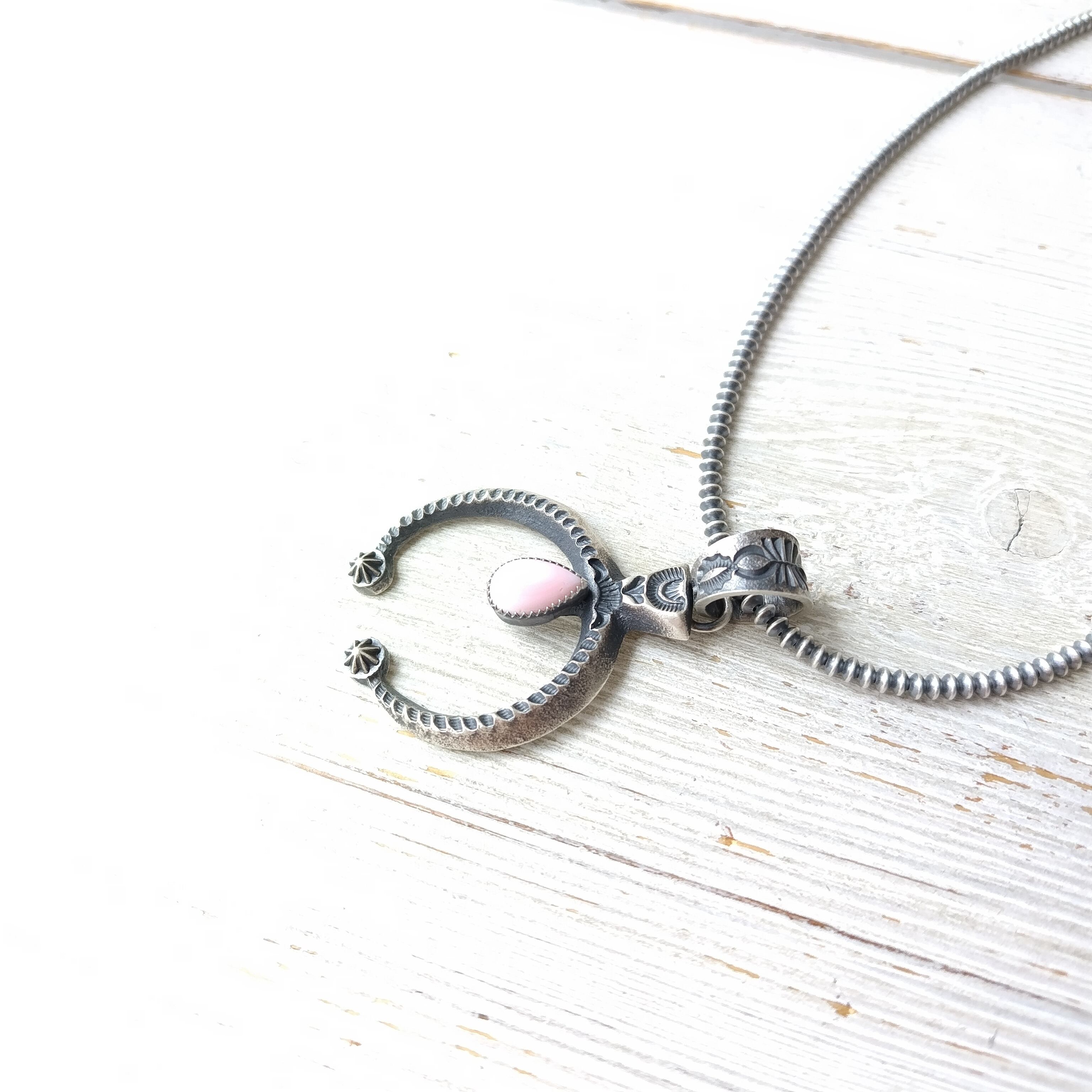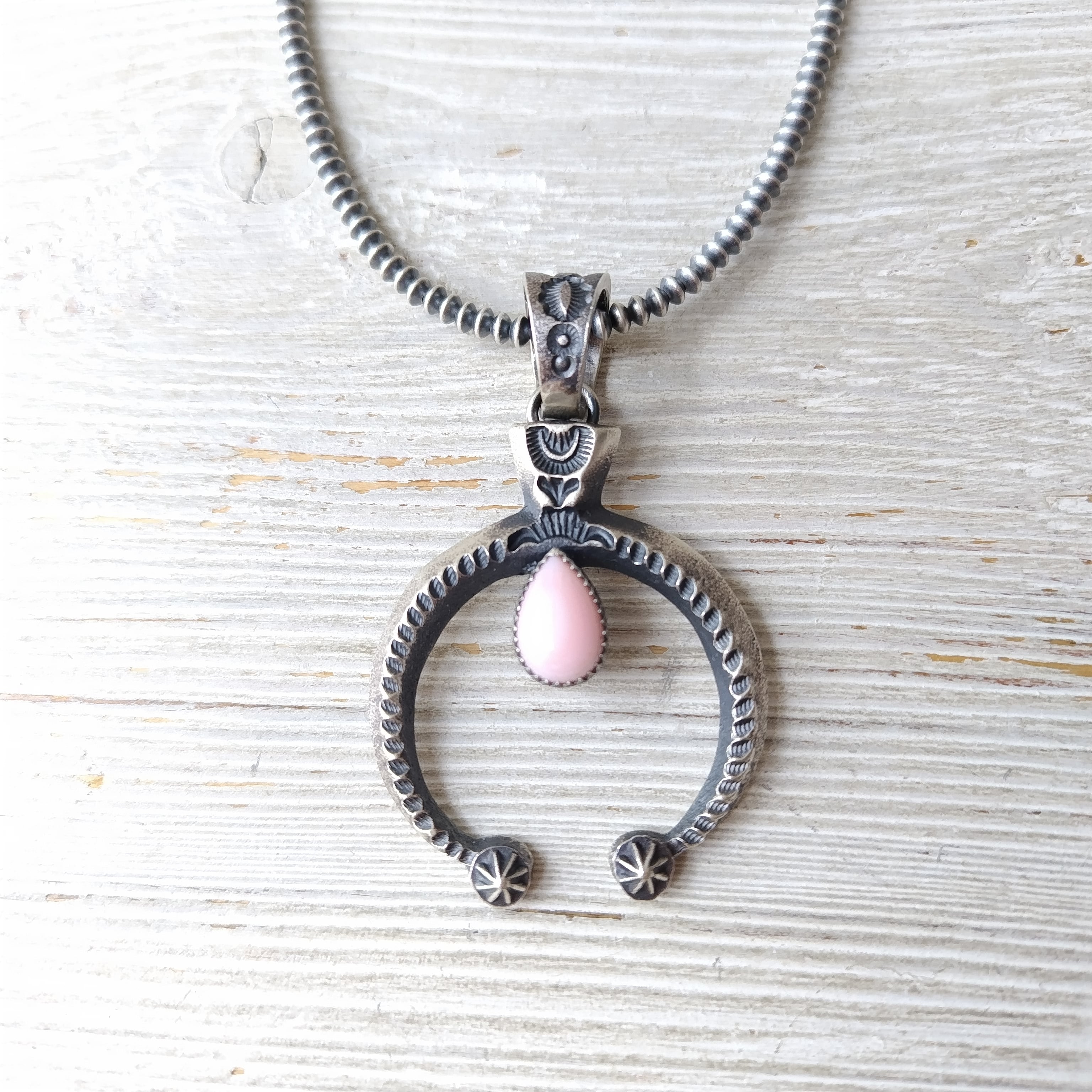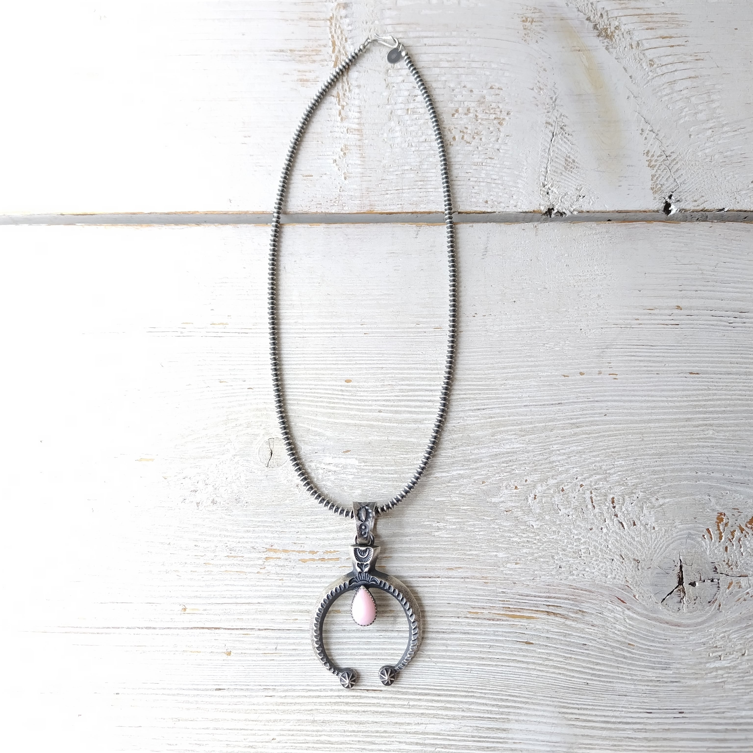 ナバホ Kevin Billah Pink Conch Shell シルバートップ ナバホ そろばん玉 燻 シルバーネックレス 3mm玉 45cm セット