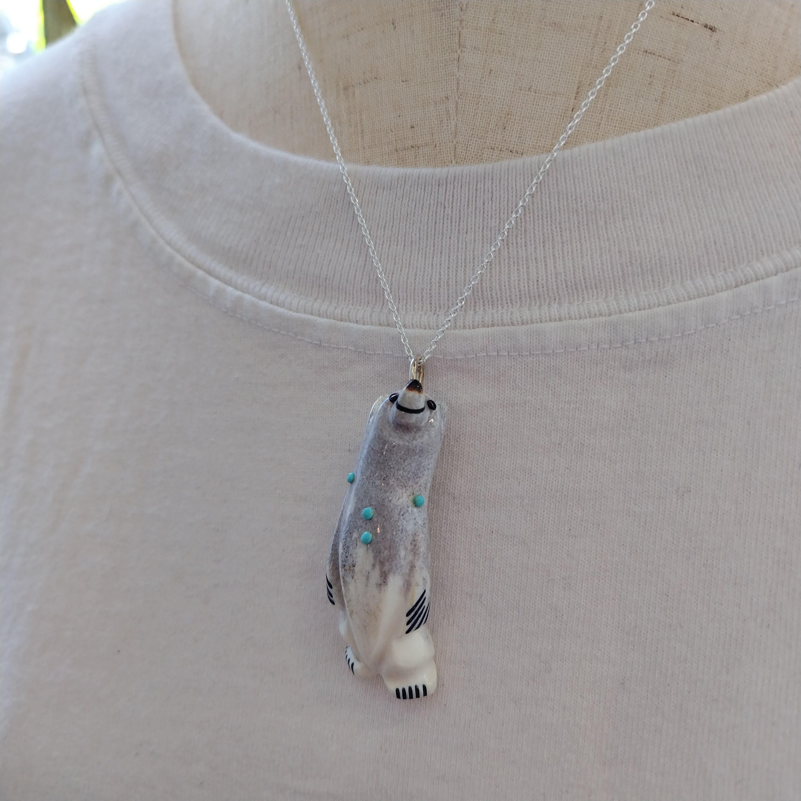 ZUNI Claudia Peina ディアホーン トップ 45cm シルバーチェーン付き インディアンジュエリー