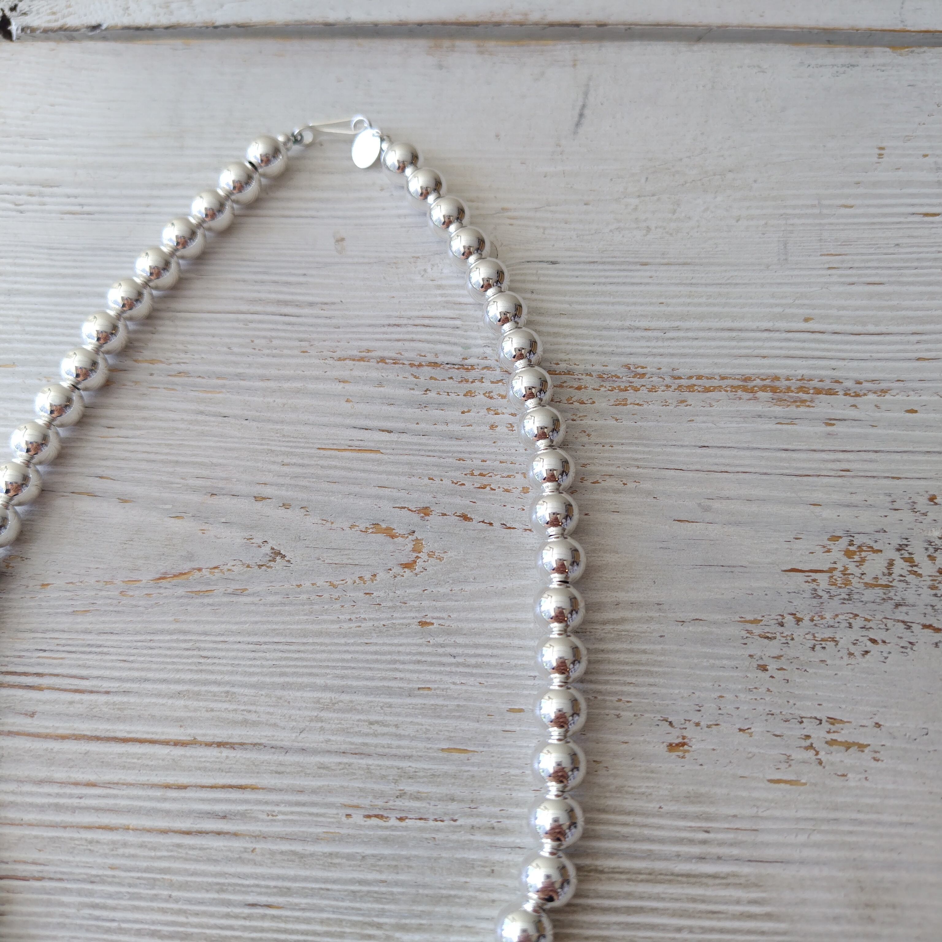 8mm玉 40cm ナバホパール シルバーネックレス インディアンジュエリー