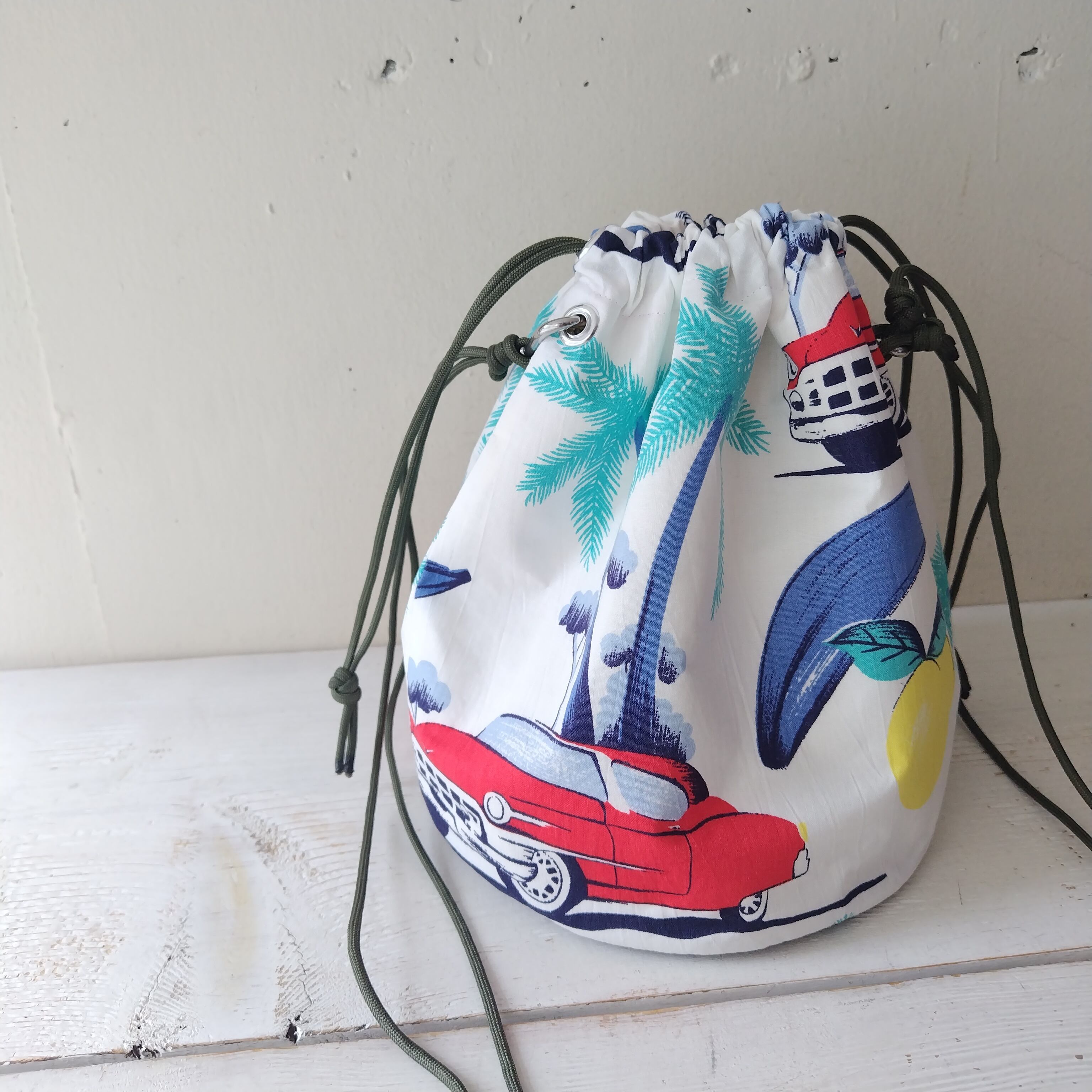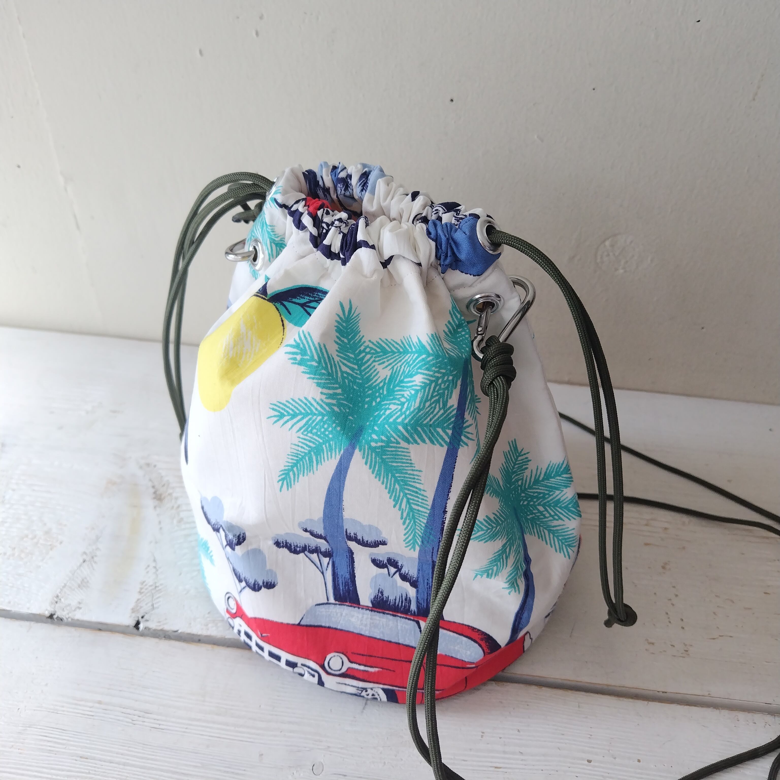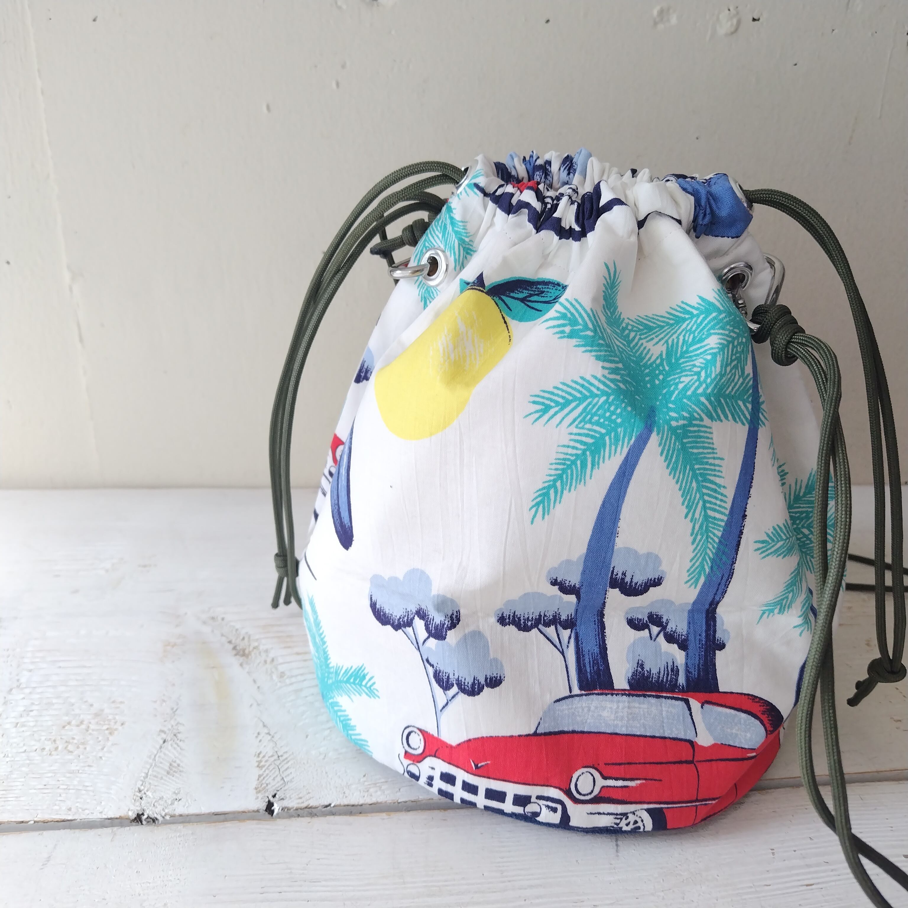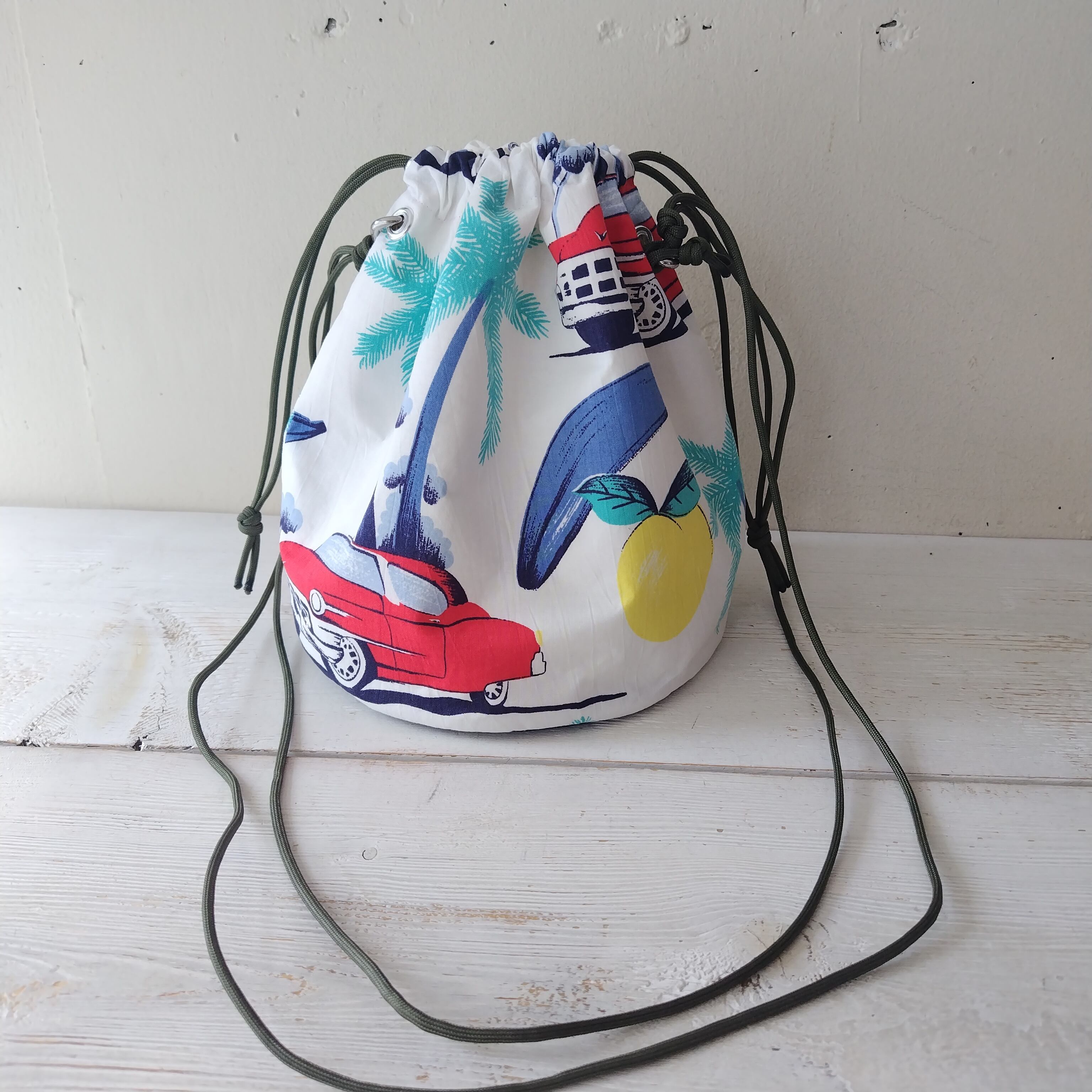ラージサイズ ビンテージファブリック リメイク巾着 2wayショルダーバッグ