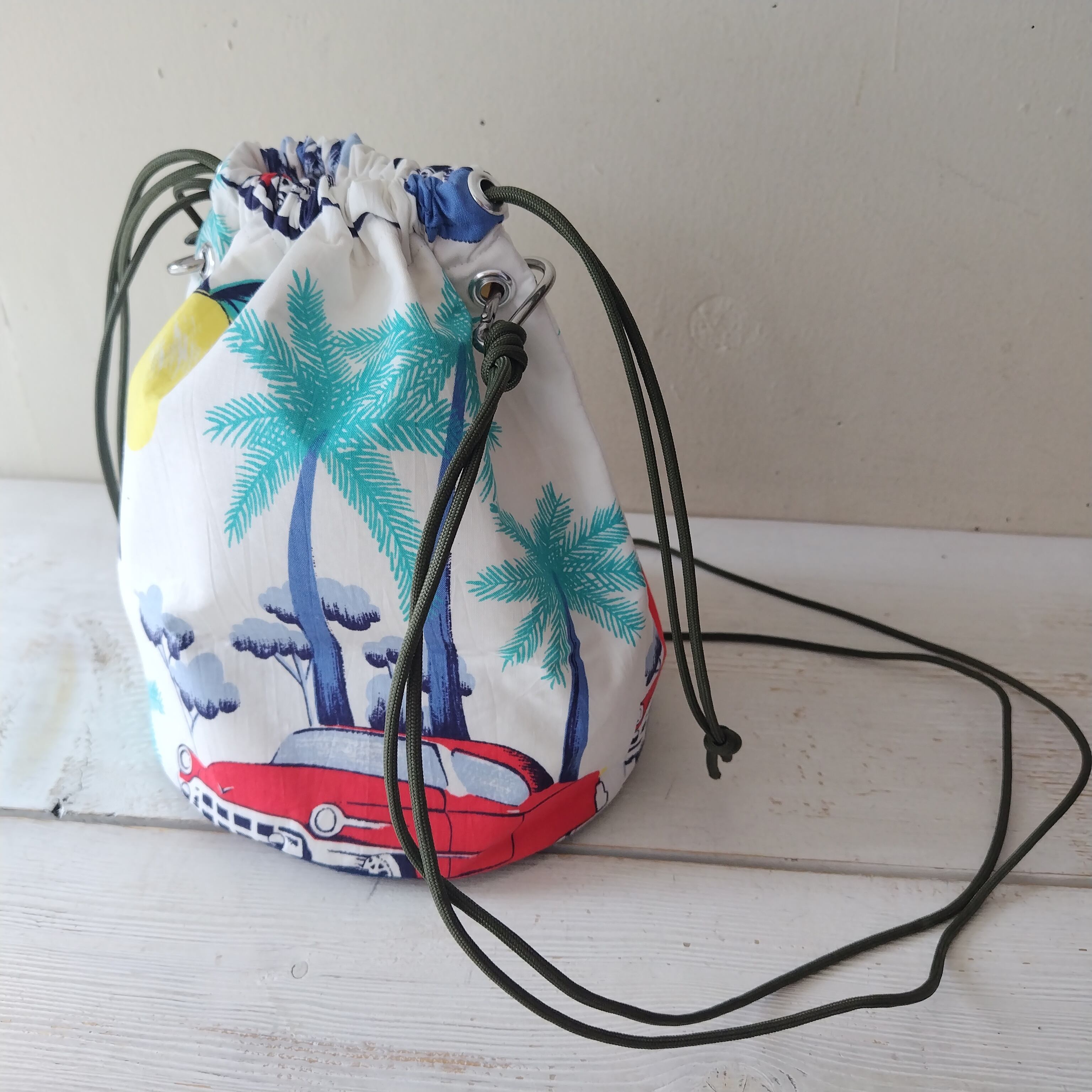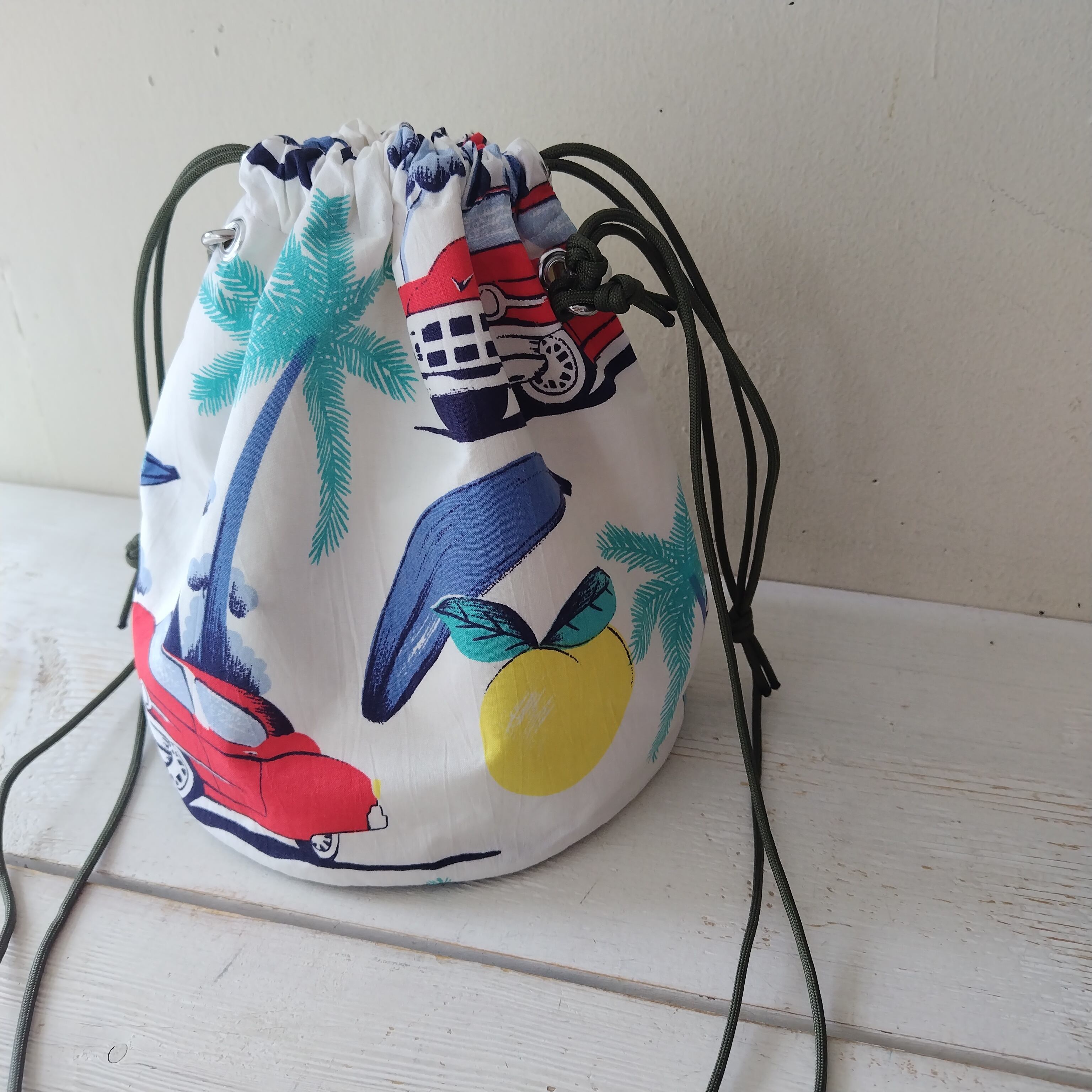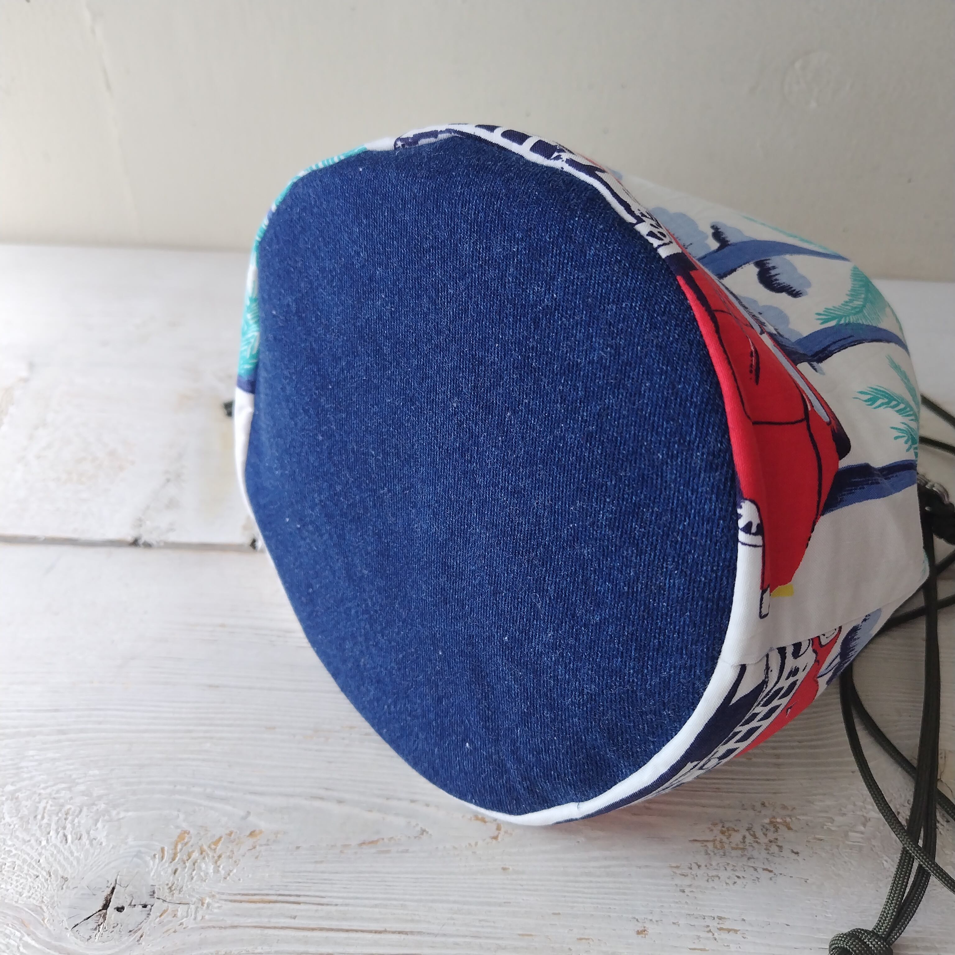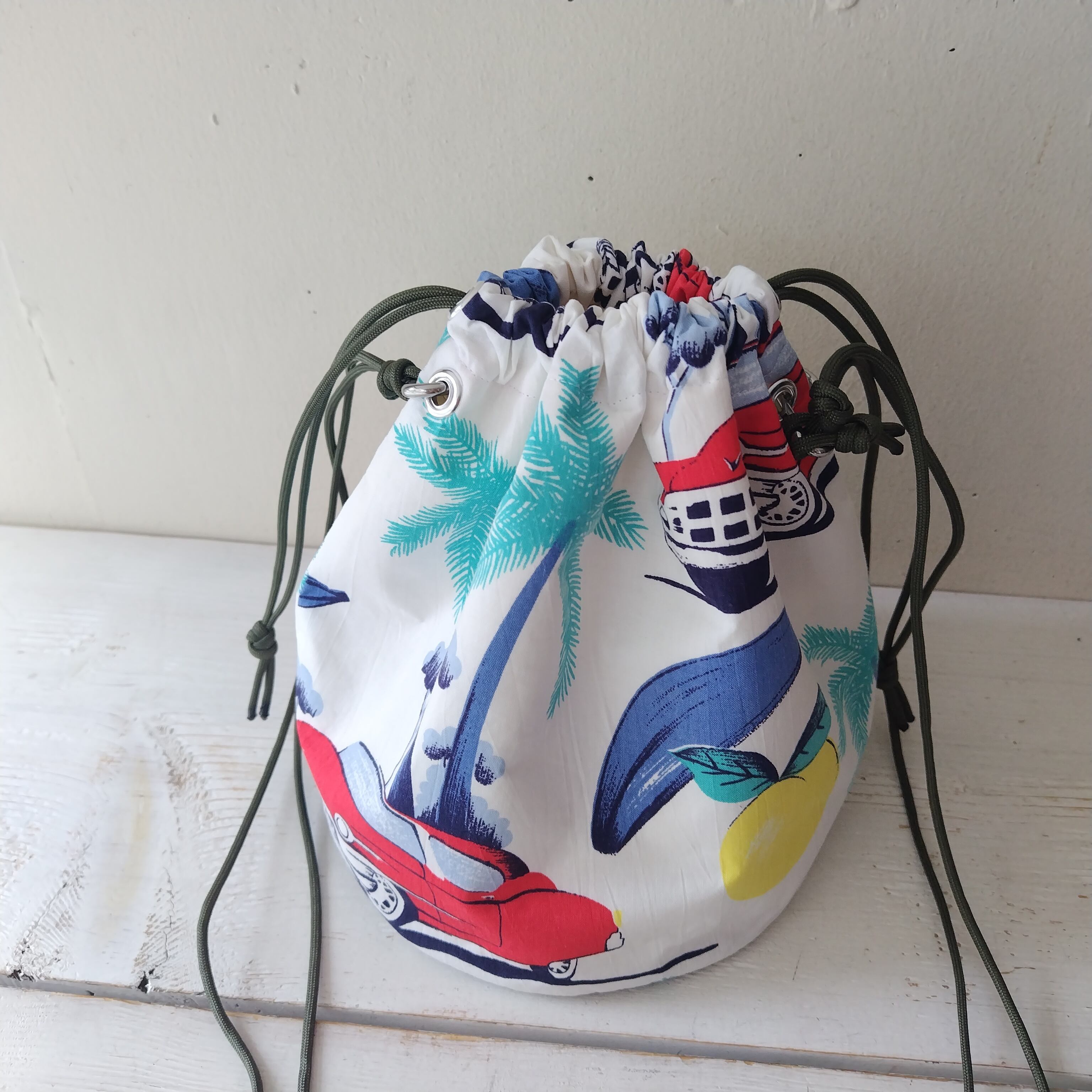 ラージサイズ ビンテージファブリック リメイク巾着 2wayショルダーバッグ
