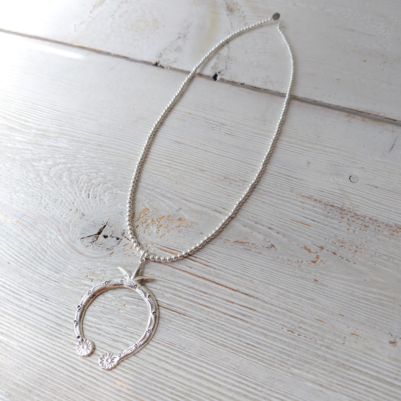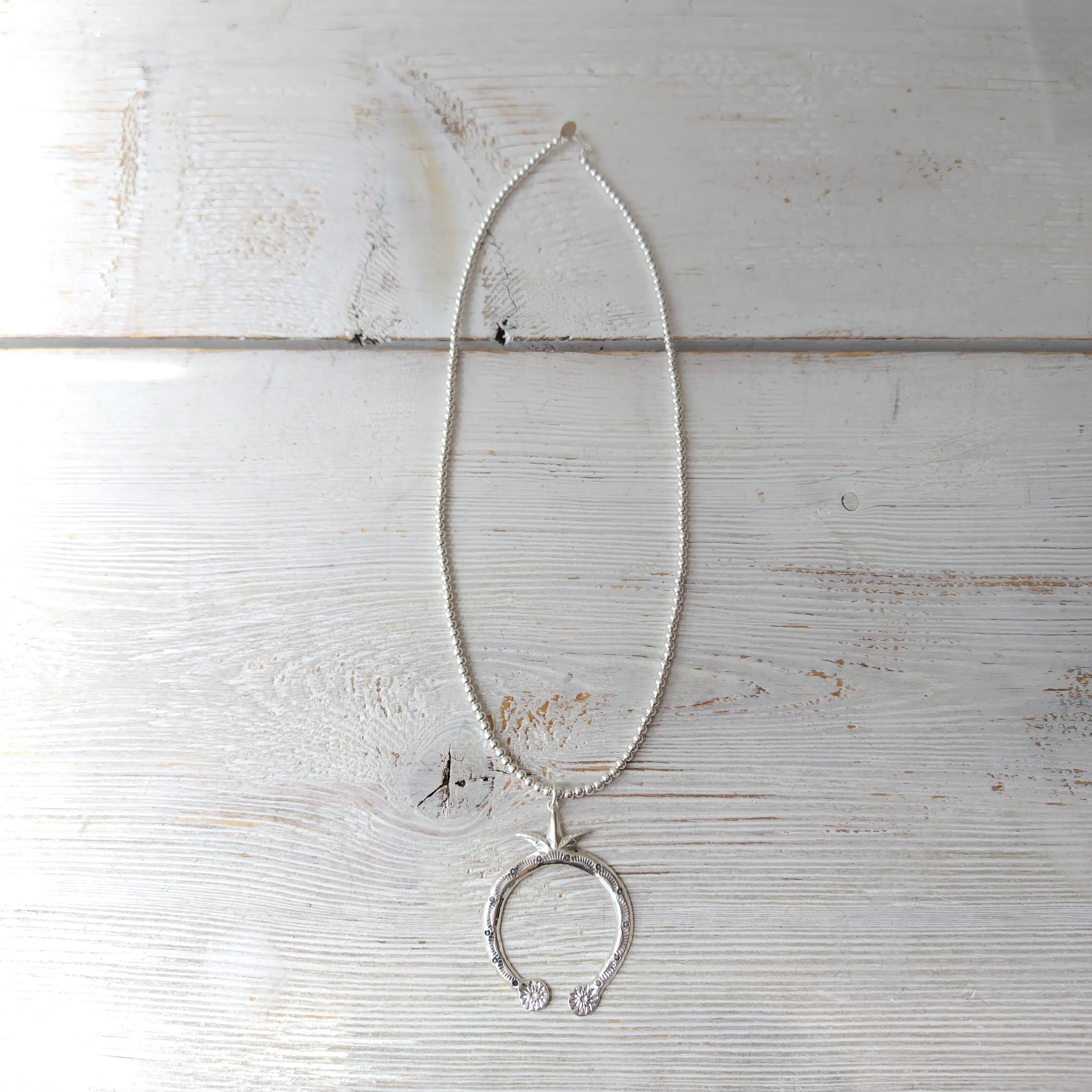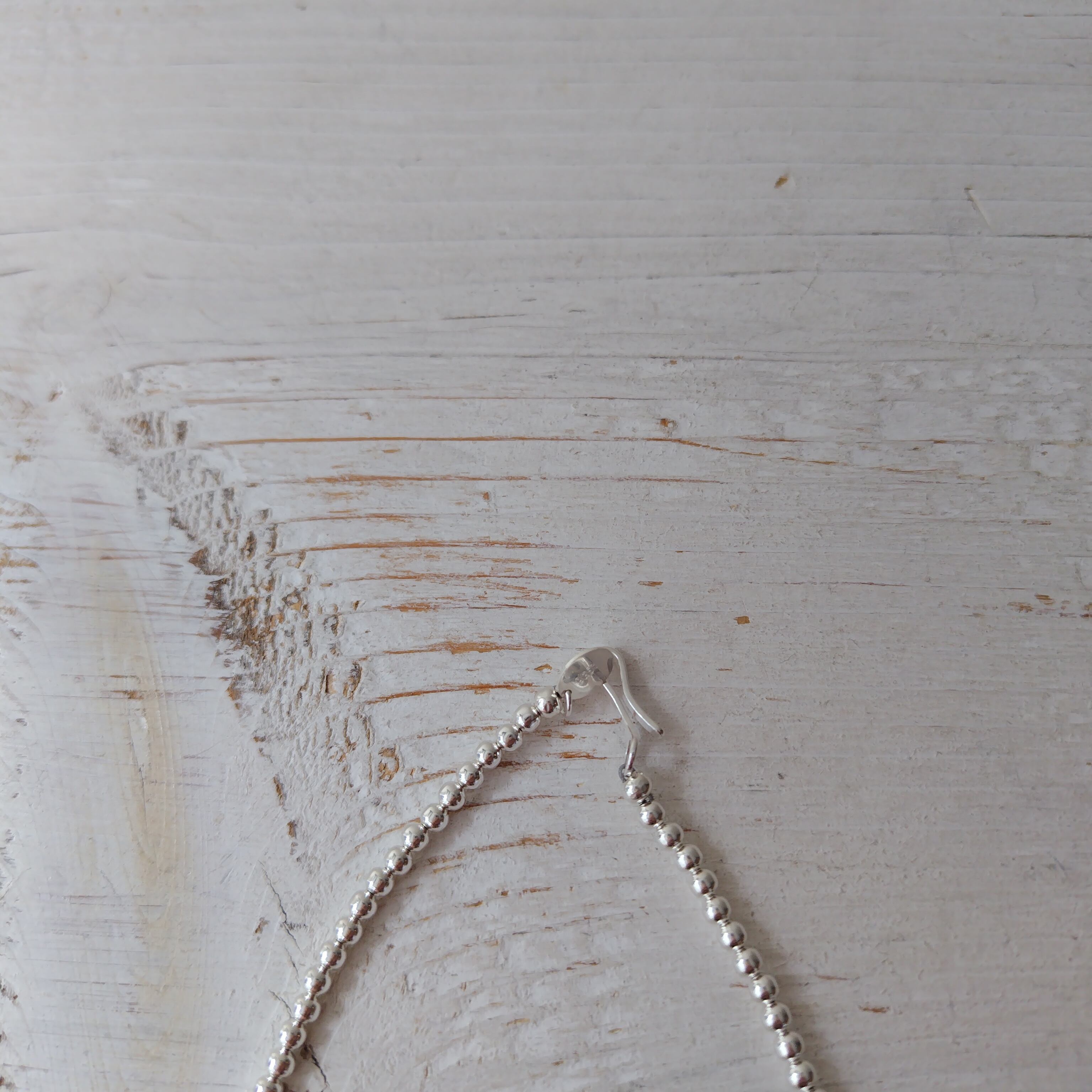 ナバホ ナジャ シルバートップ x 3mm玉 50cm ナバホパール シャイニー シルバーネックレス インディアンジュエリー
