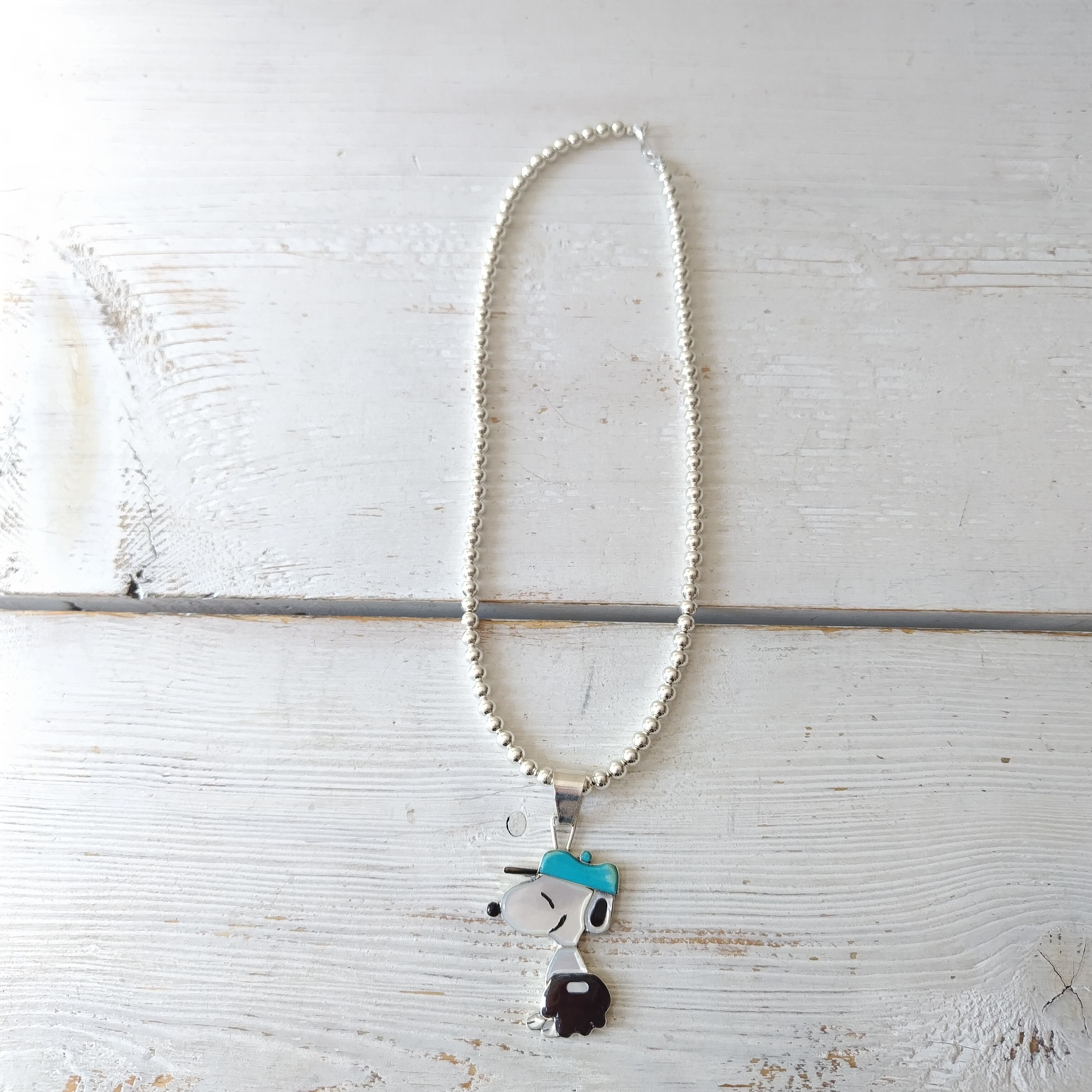ZUNI DON DEWA インレイ シルバートップ ナバホパール シルバーネックレス 5mm玉 45cm セット
