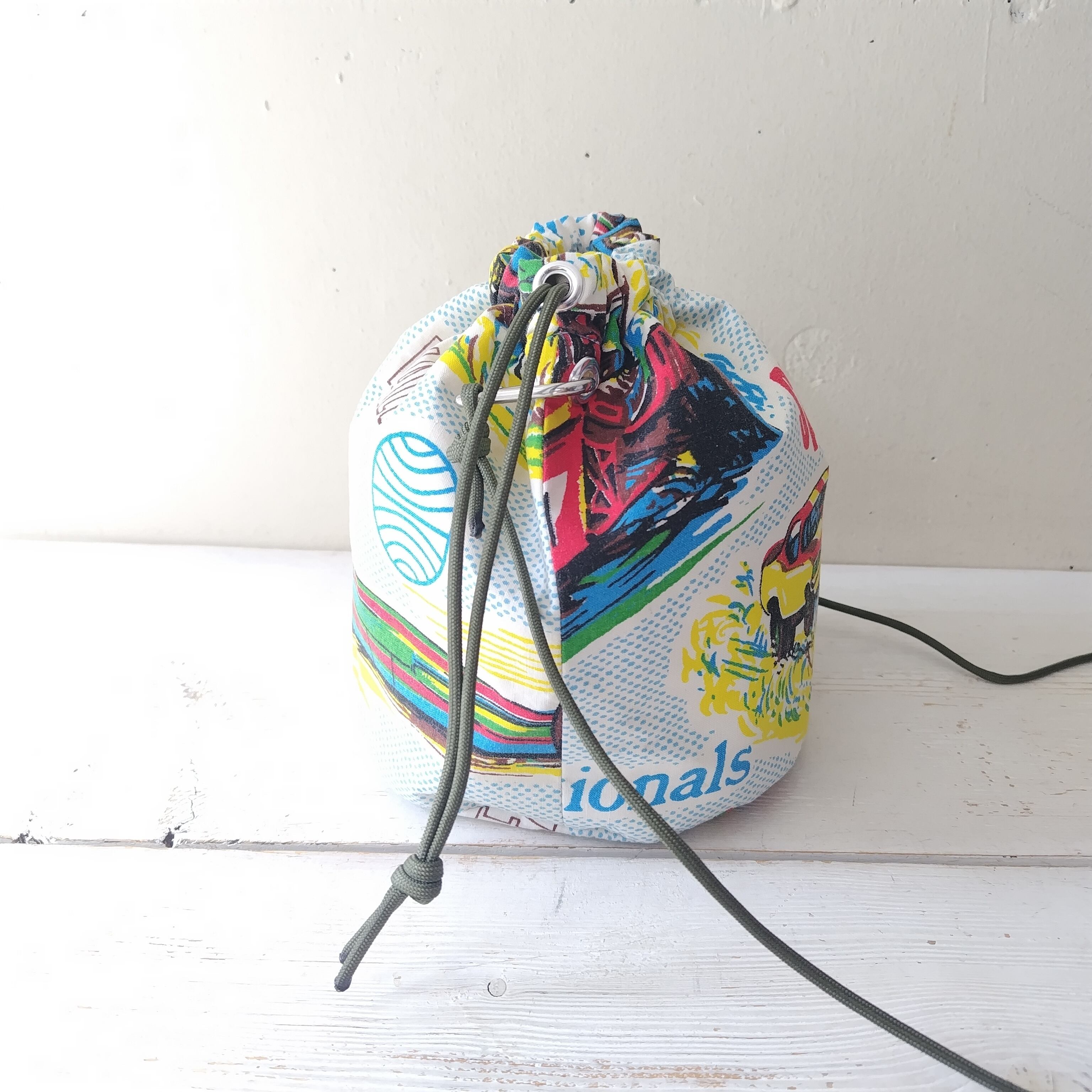 ビンテージファブリック リメイク巾着 2way ショルダーバッグ