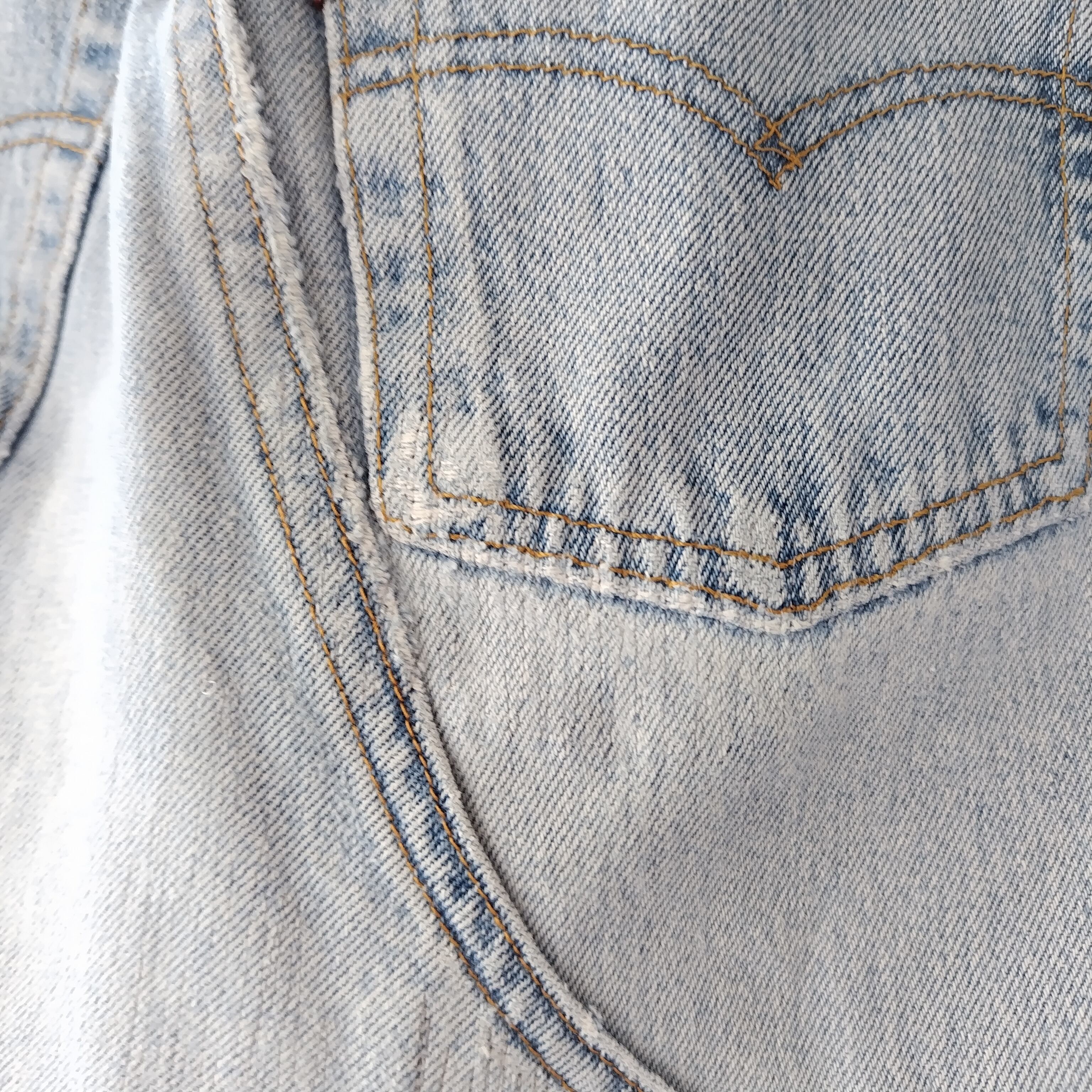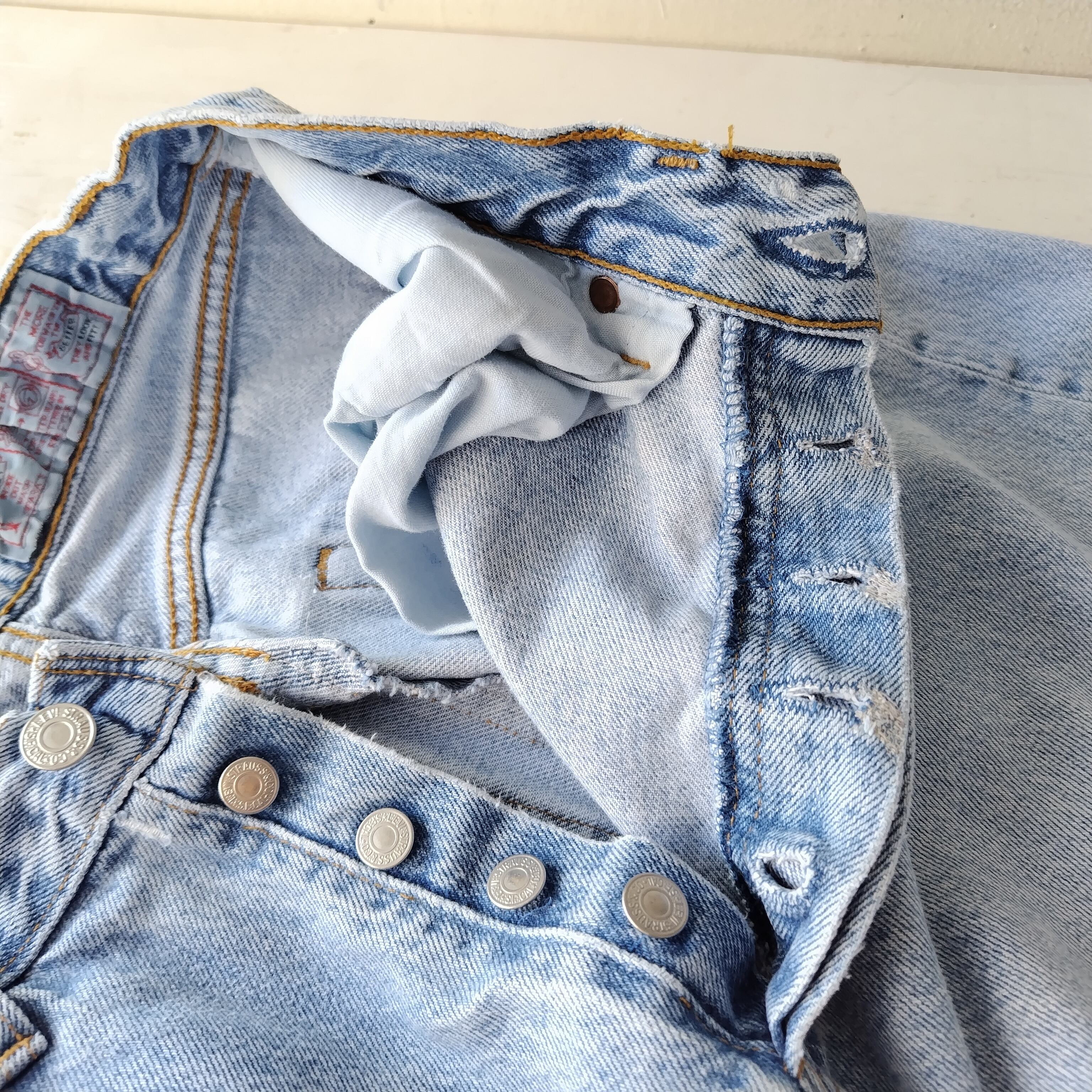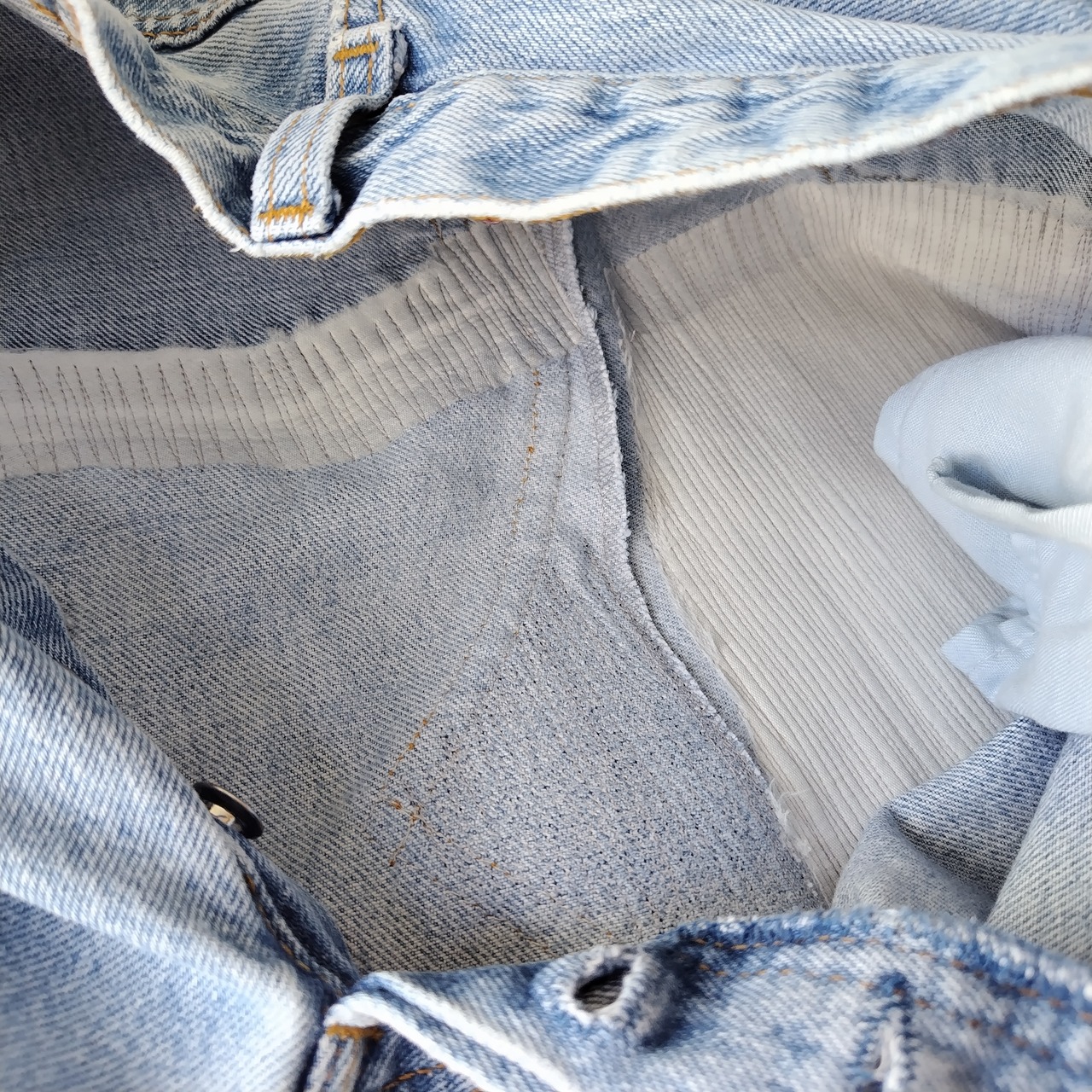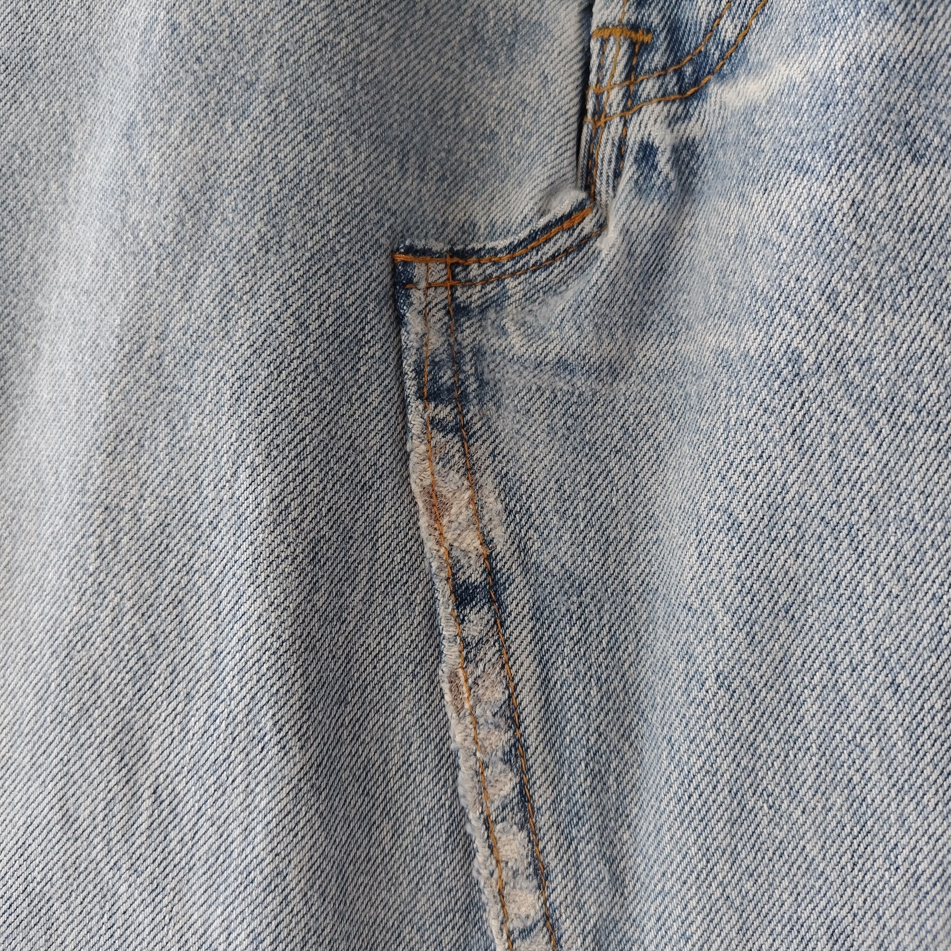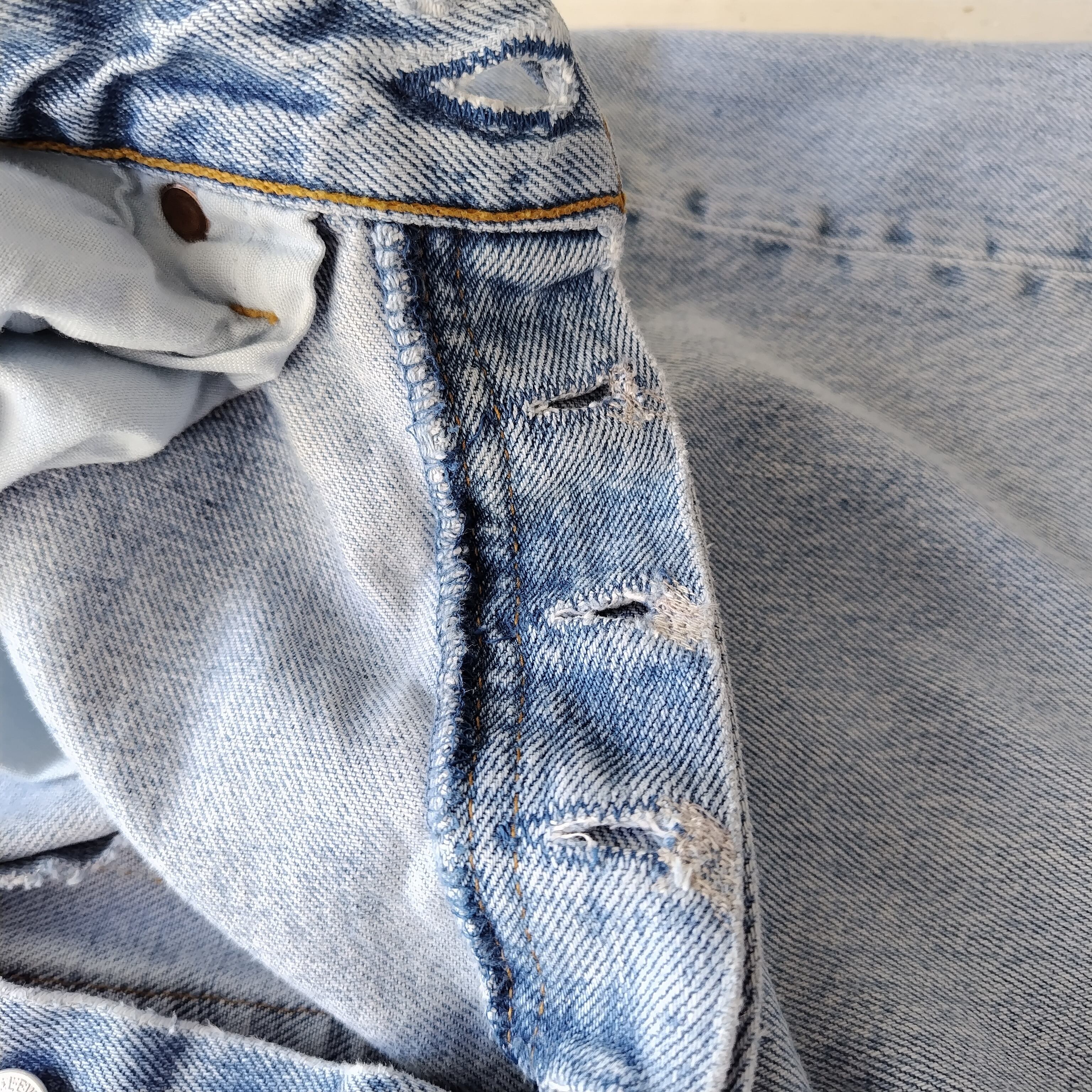 ボタンホール、バックのデニム生地が薄めでしたので補強してあります。ご了承くださいませ。
