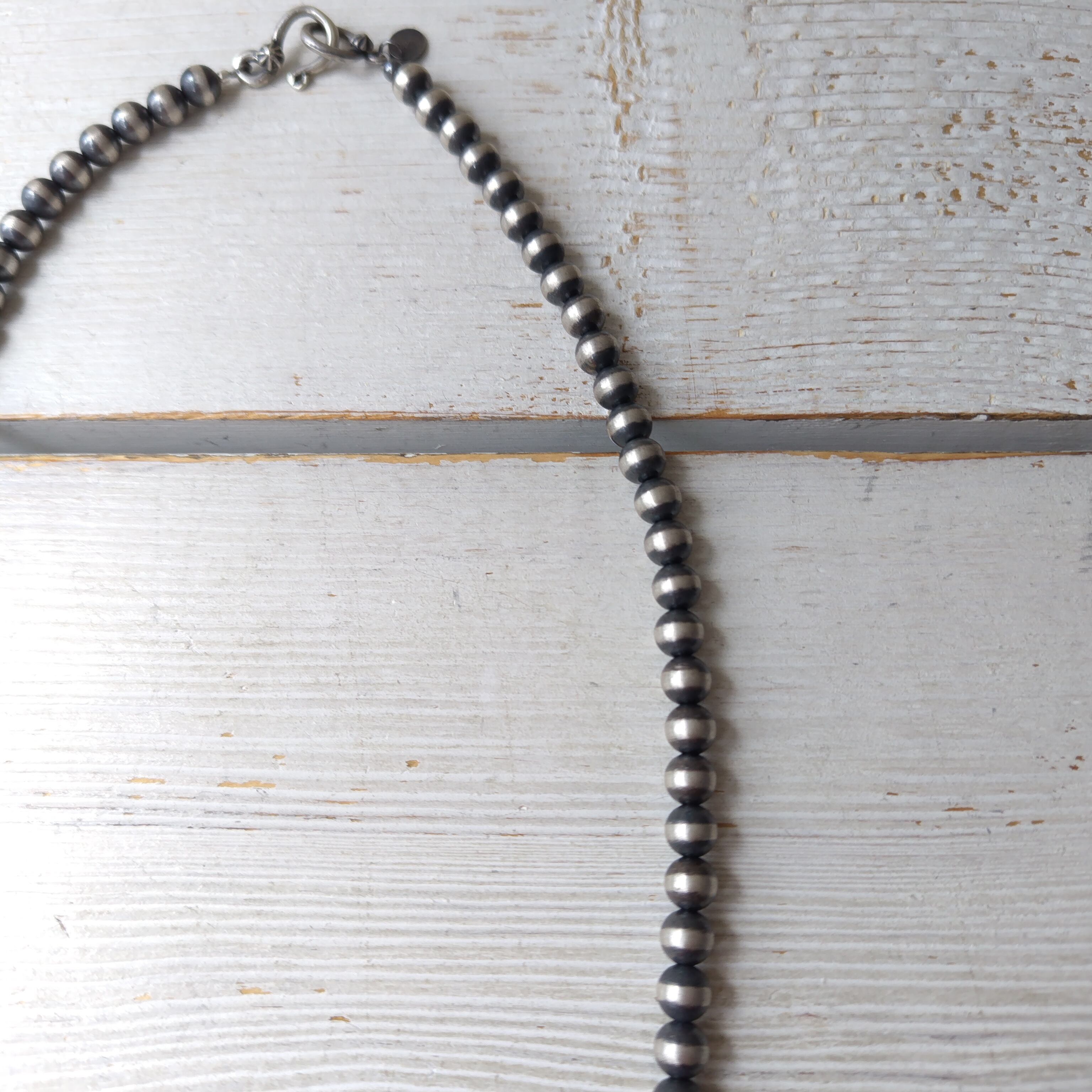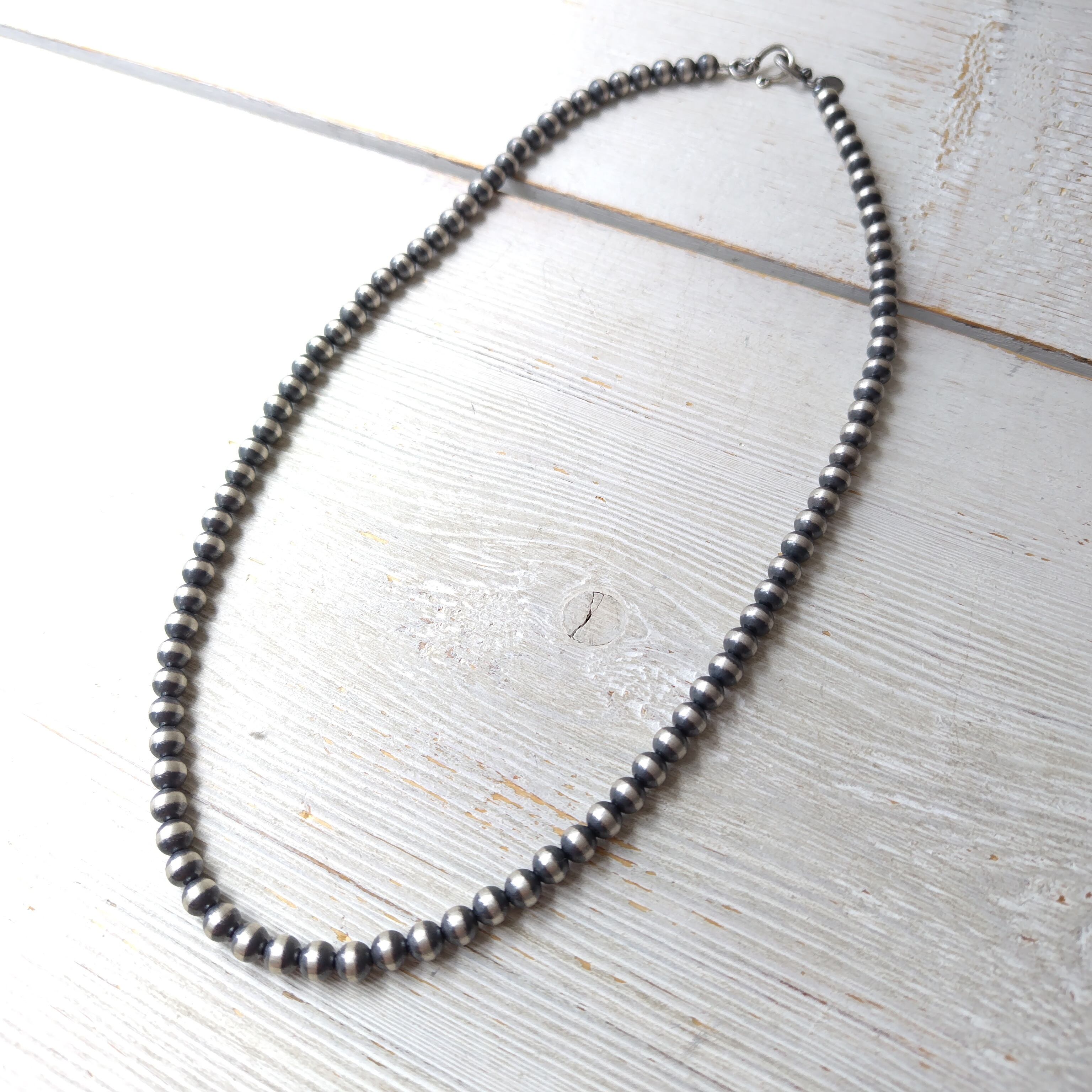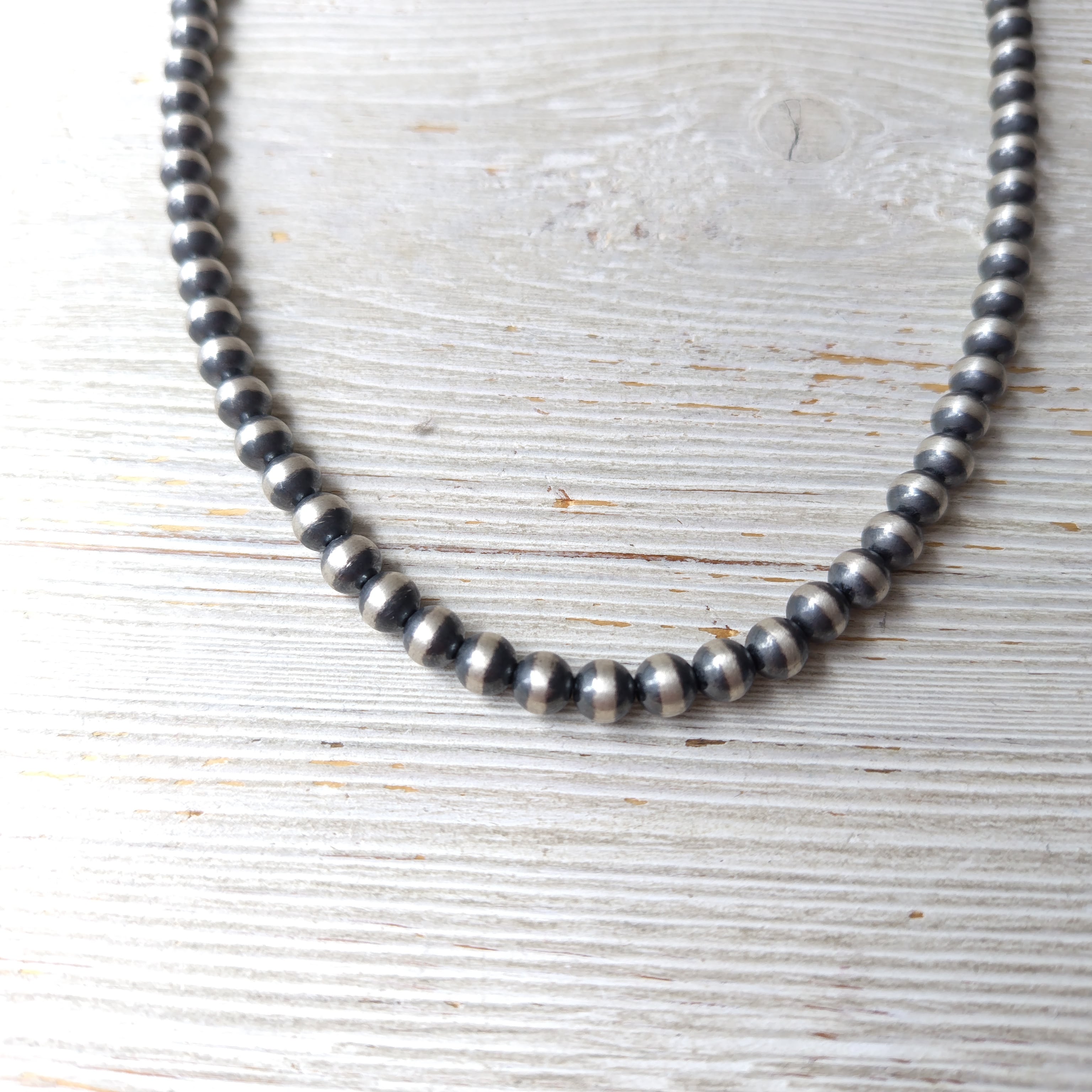 6mm玉 55cm ナバホパール シャイニー x 燻 シルバーネックレス インディアンジュエリー
