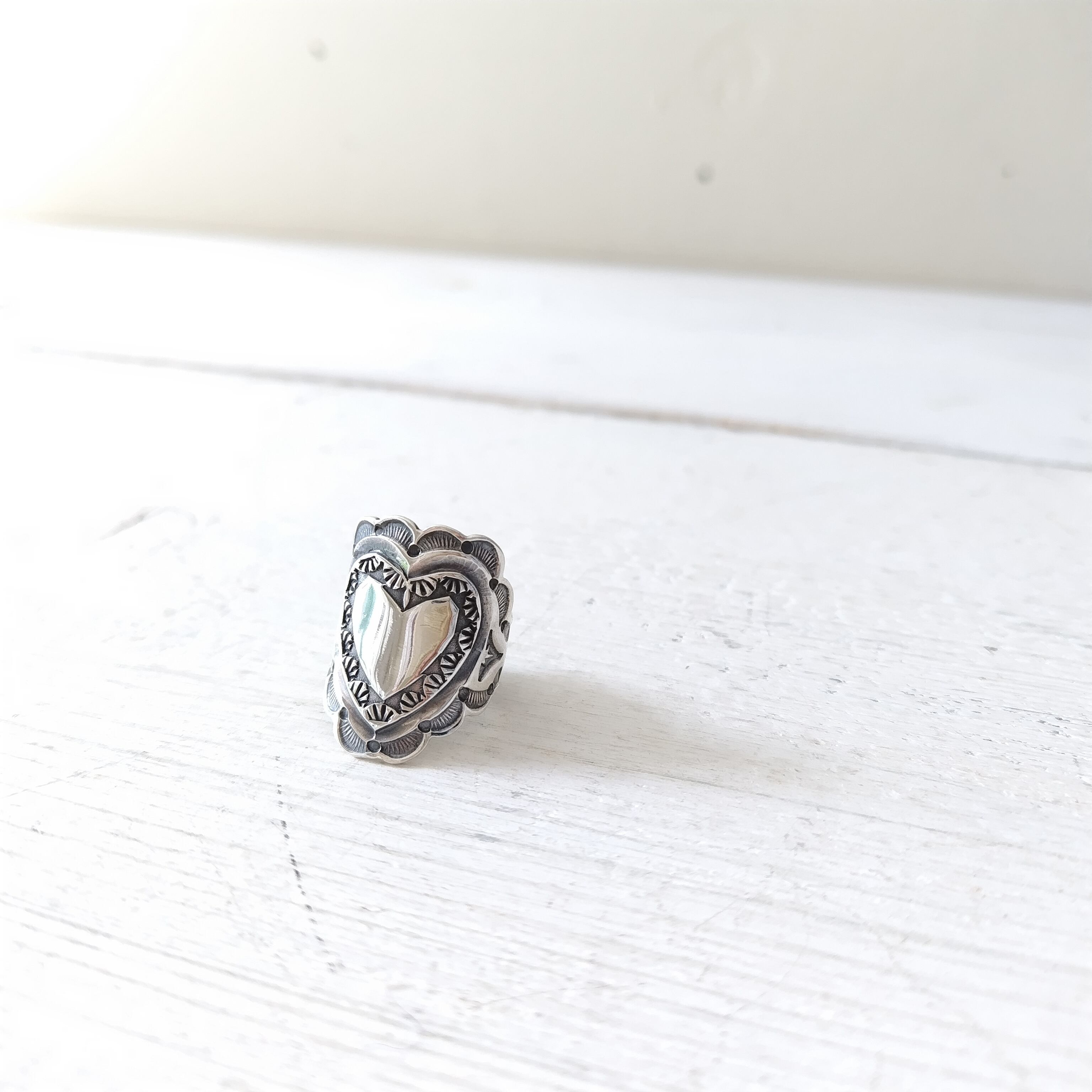 ナバホ Sunshine Reeves ハート シルバーリング インディアンジュエリー
