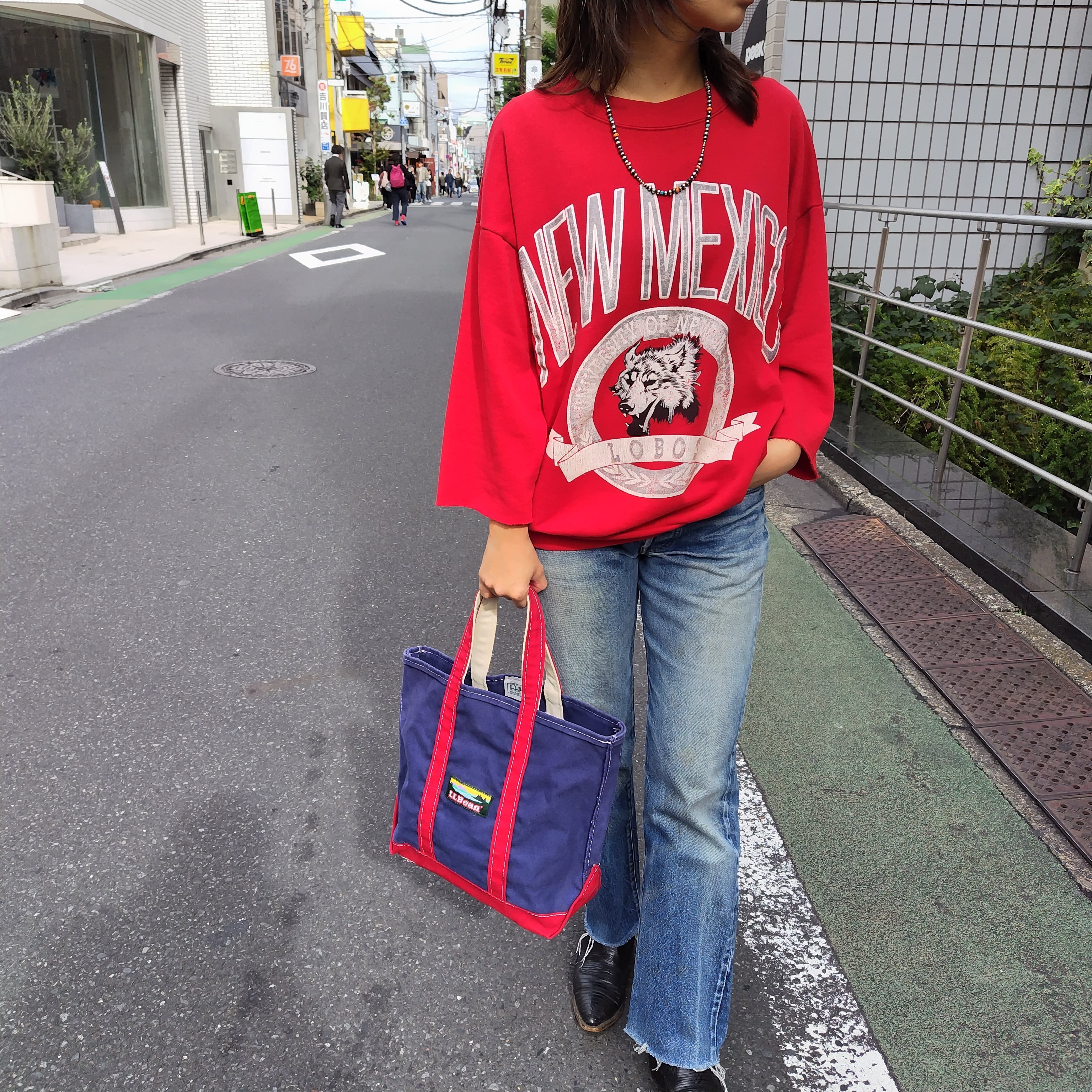 90s L.L.Bean NAVY x REDハンドル トートバッグになります!