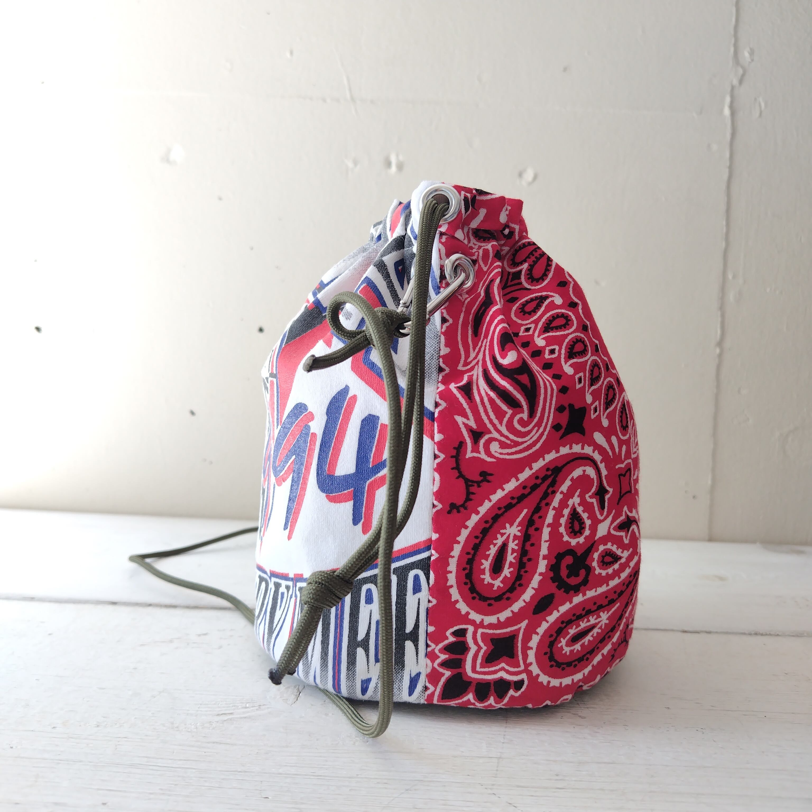 バンダナ x 90s ファブリック リメイク巾着 2wayショルダーバッグ