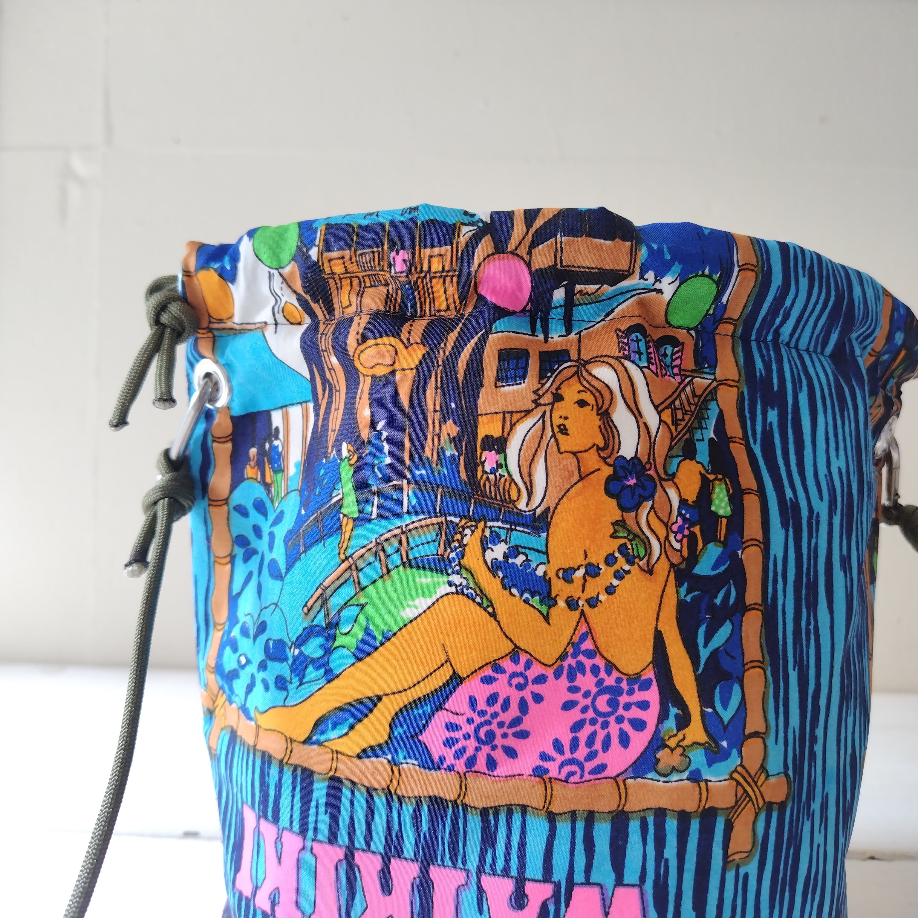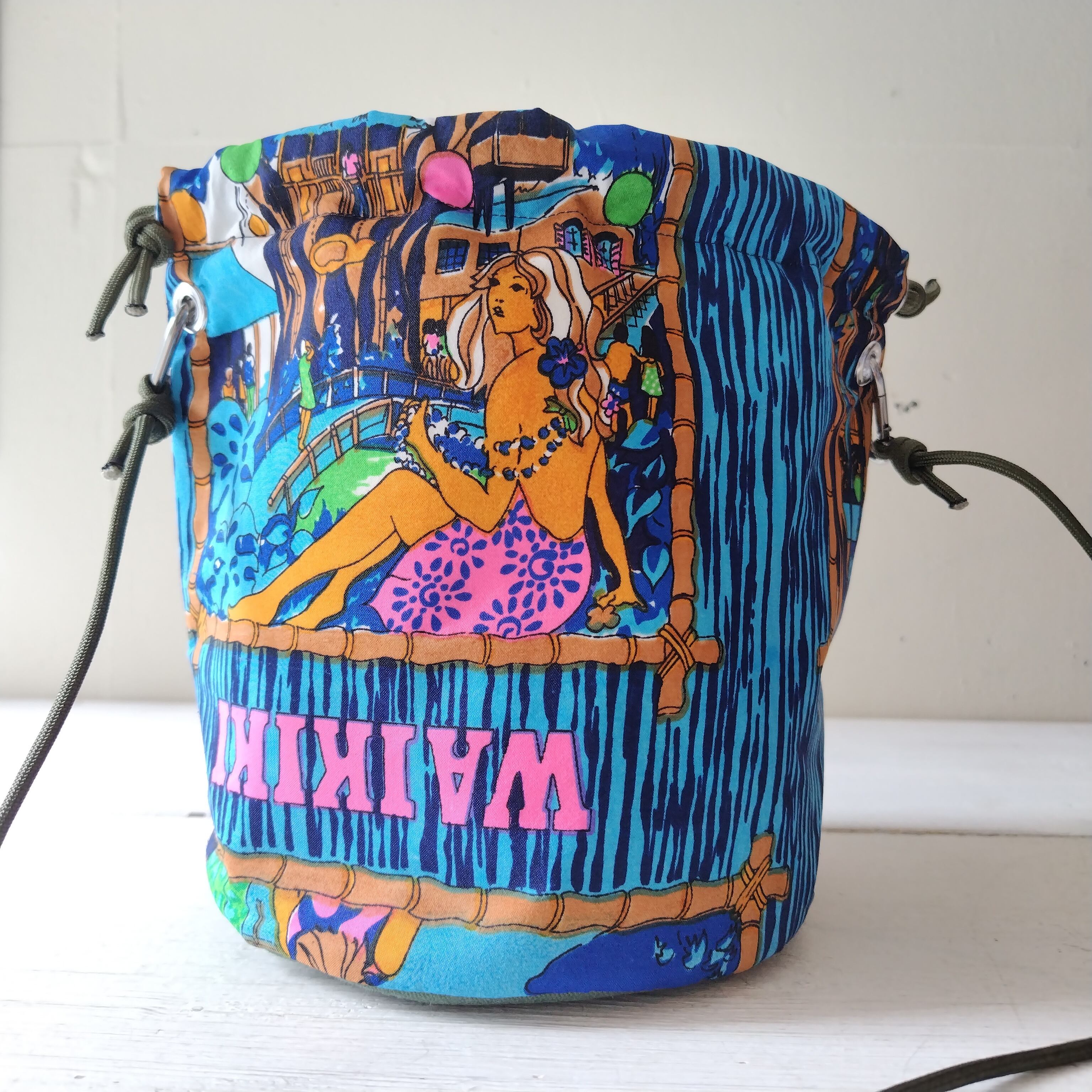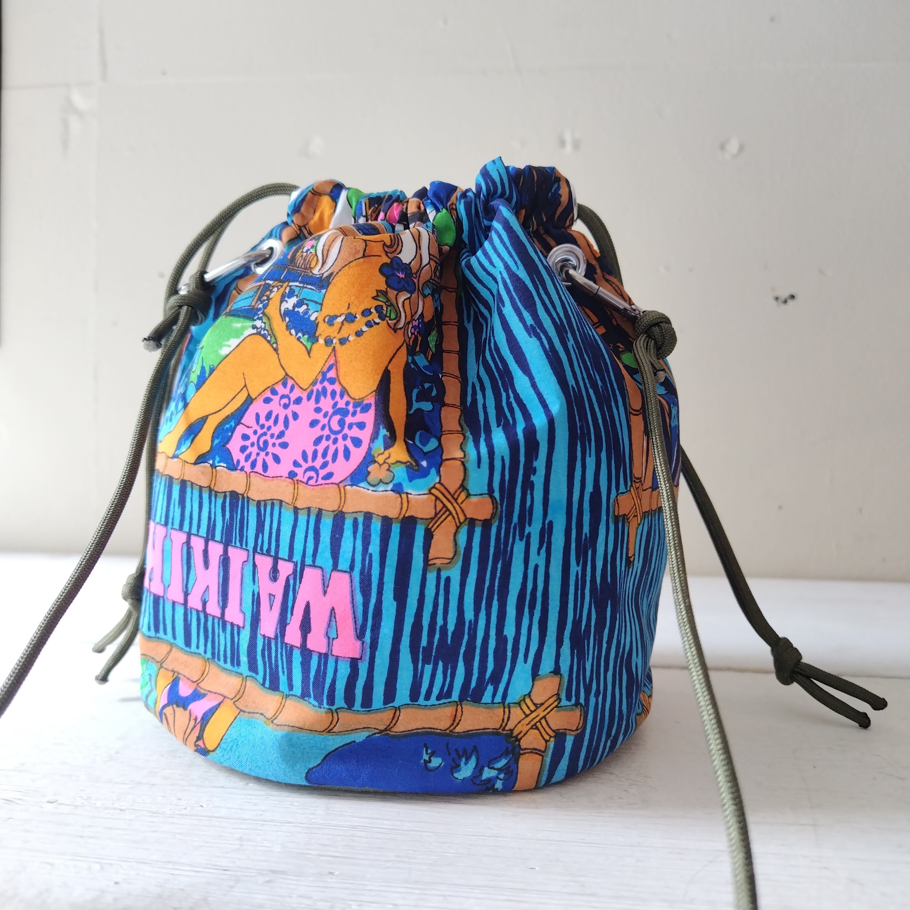 ビンテージファブリック リメイク巾着 2wayショルダーバッグ