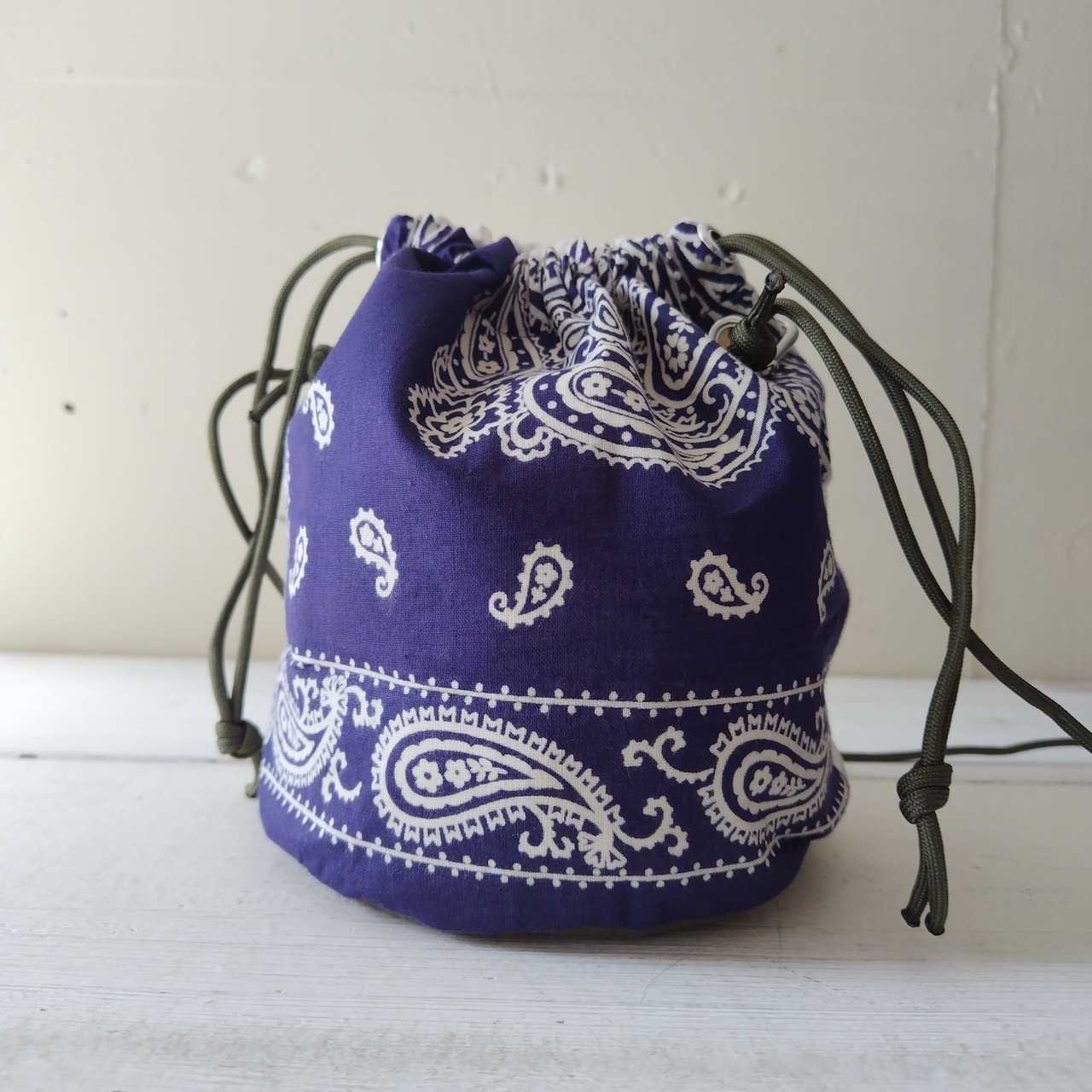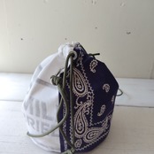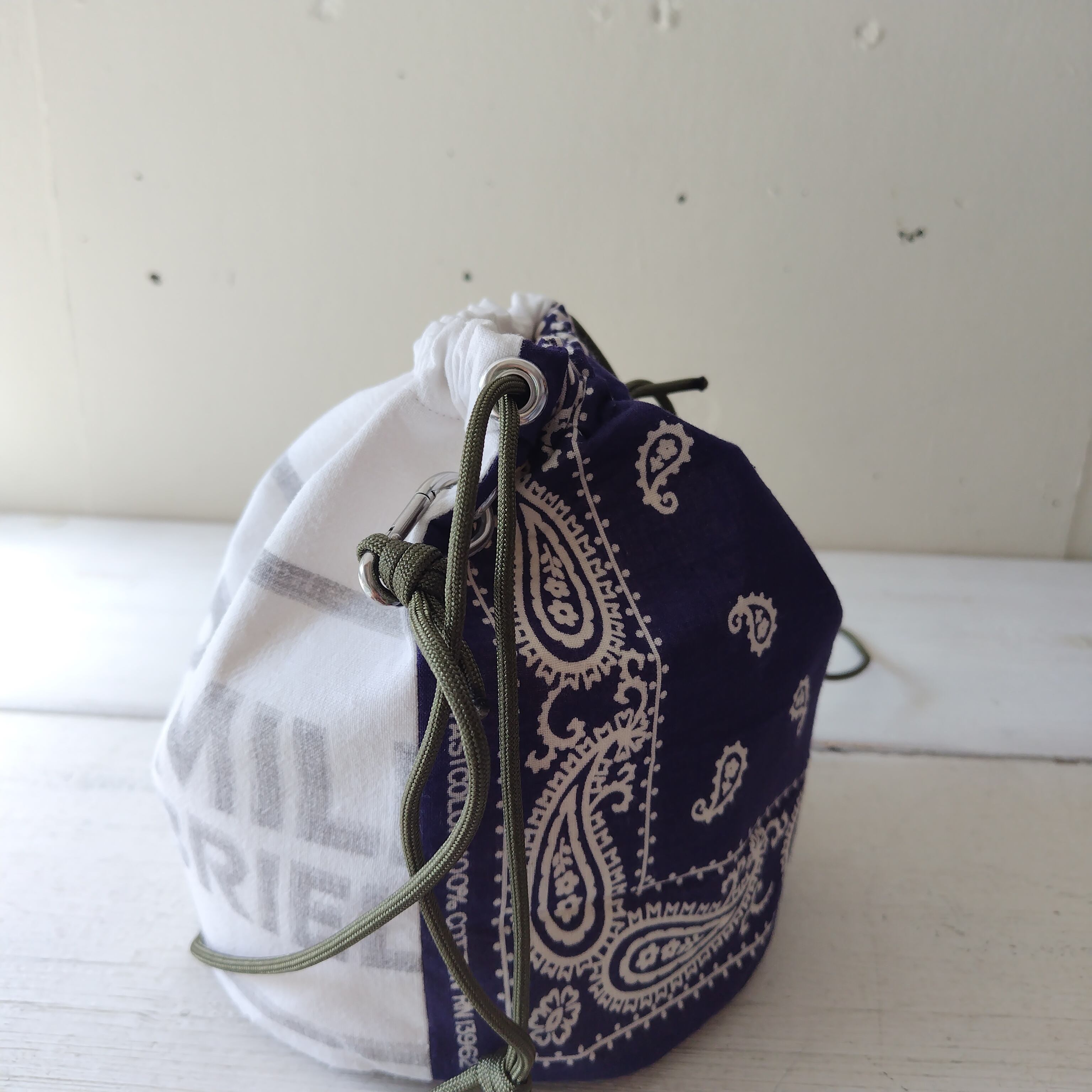 ビンテージファブリック x バンダナ リメイク巾着 2wayショルダーバッグ