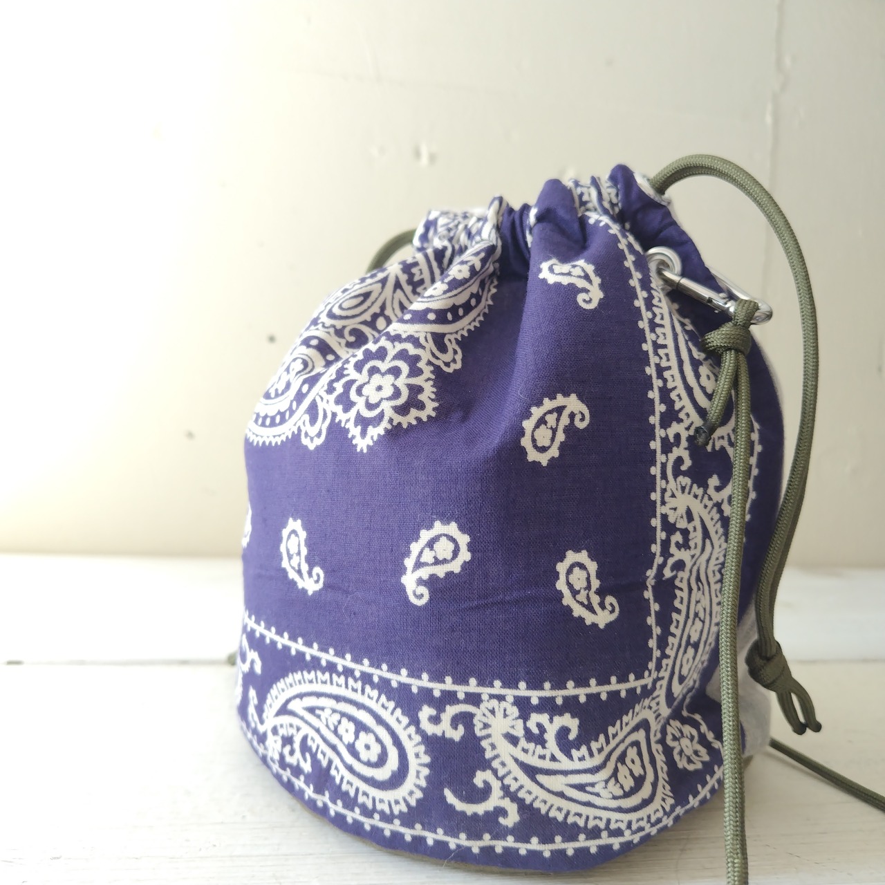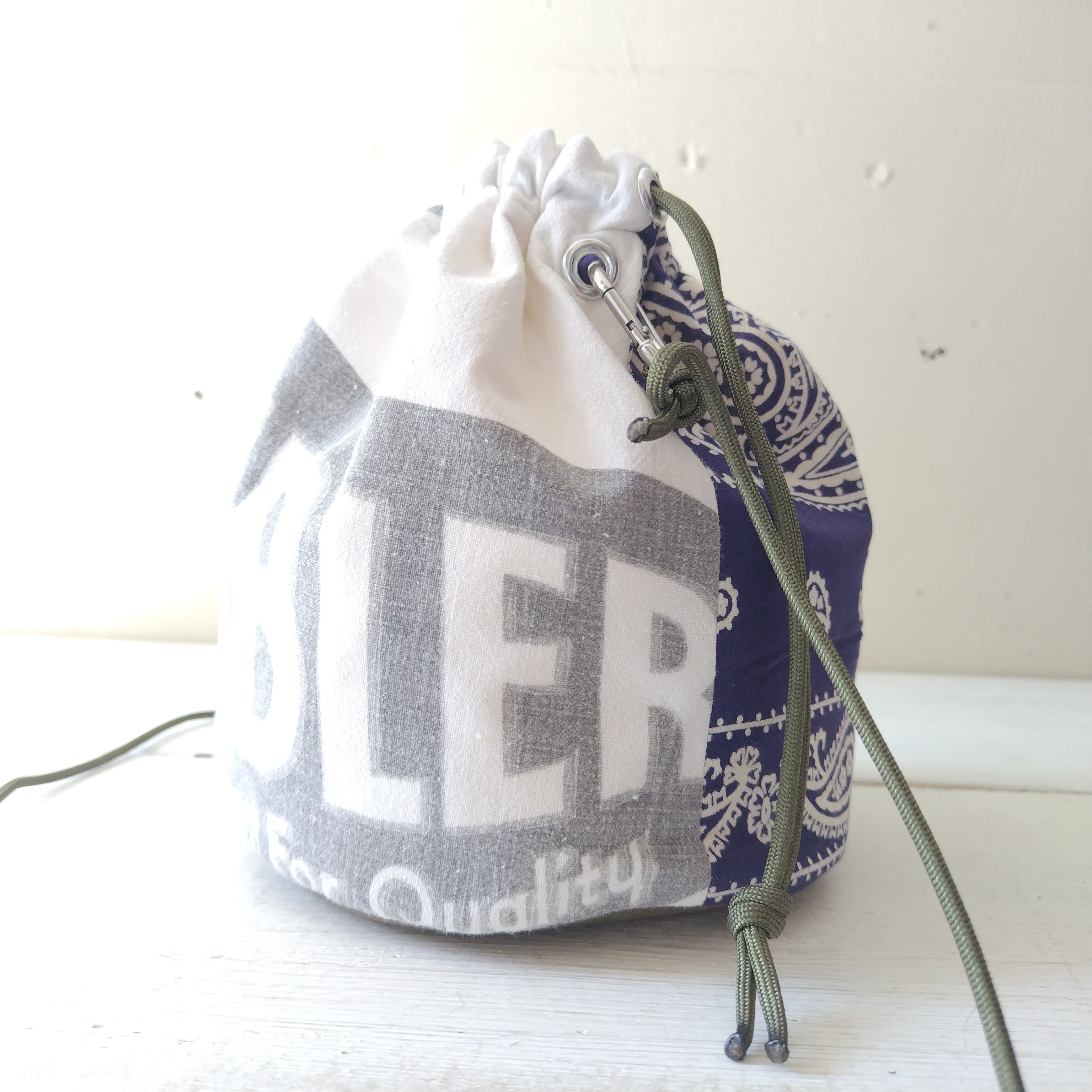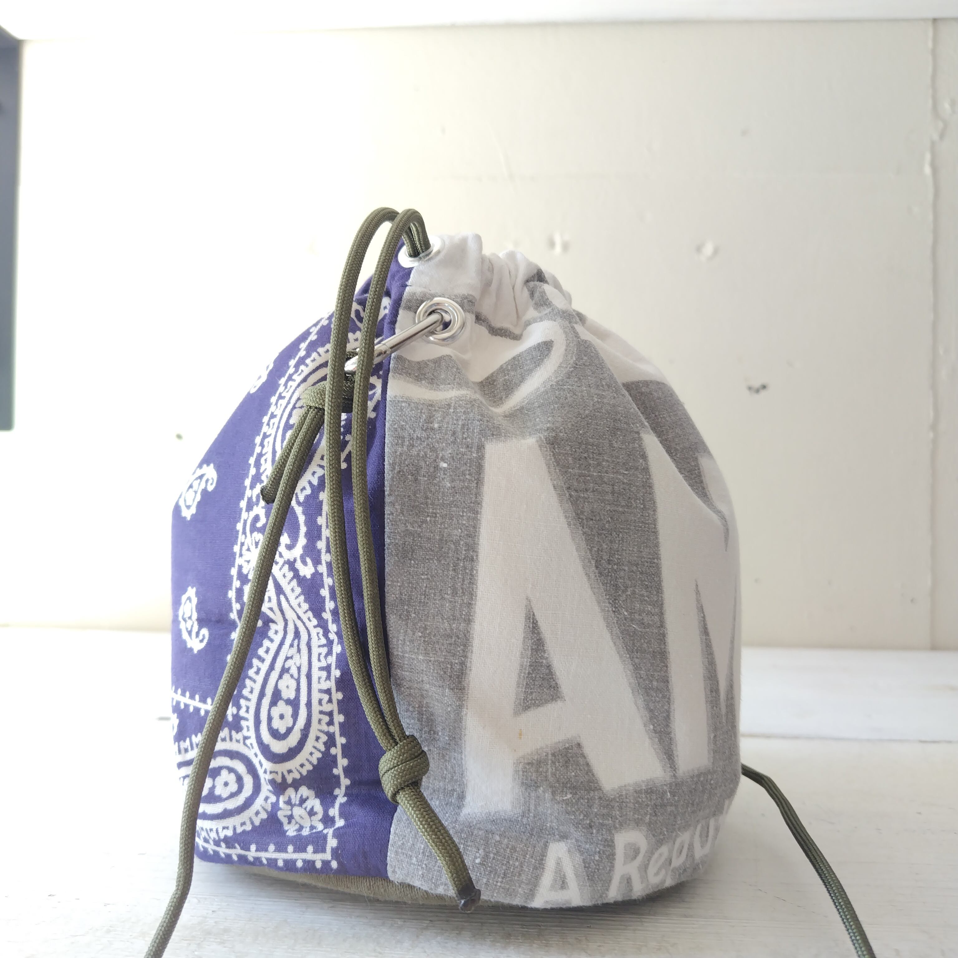 ビンテージファブリック x バンダナ リメイク巾着 2wayショルダーバッグ