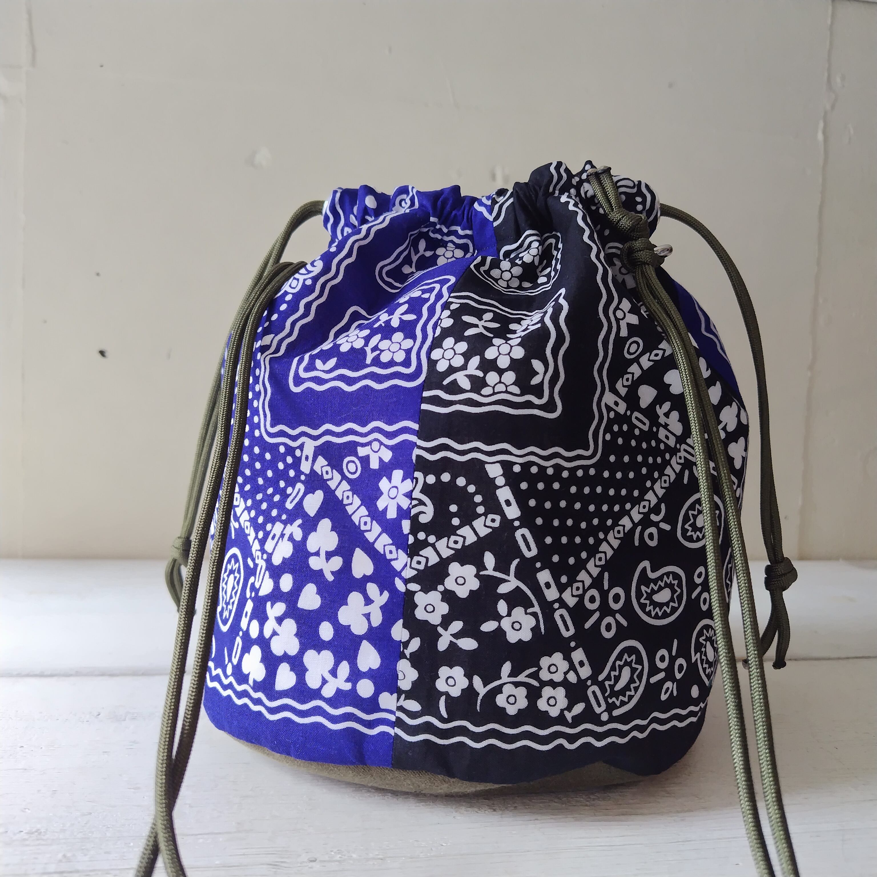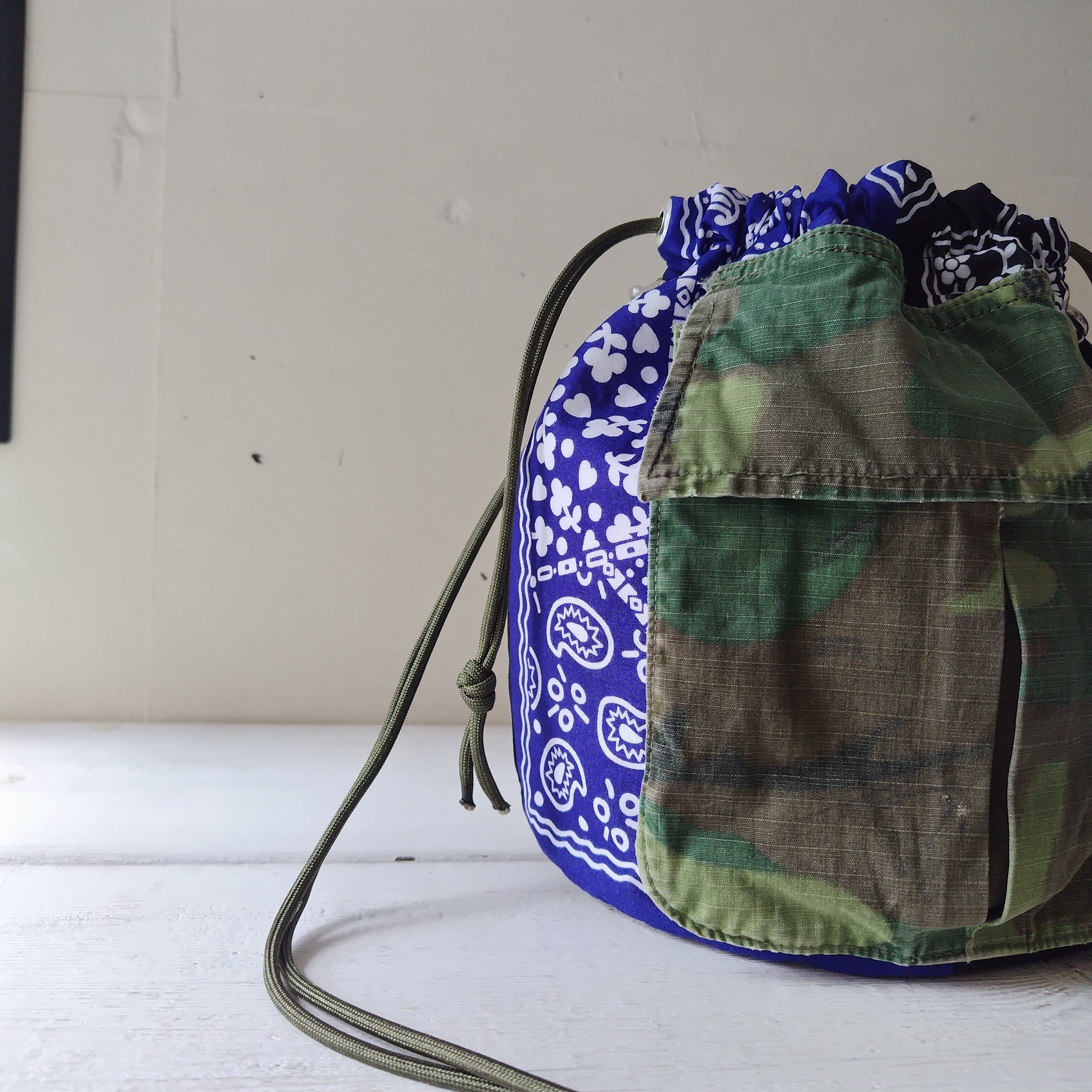 ラージサイズ オリジナルバンダナ x カモフラージュ リメイク巾着 2wayショルダーバッグ