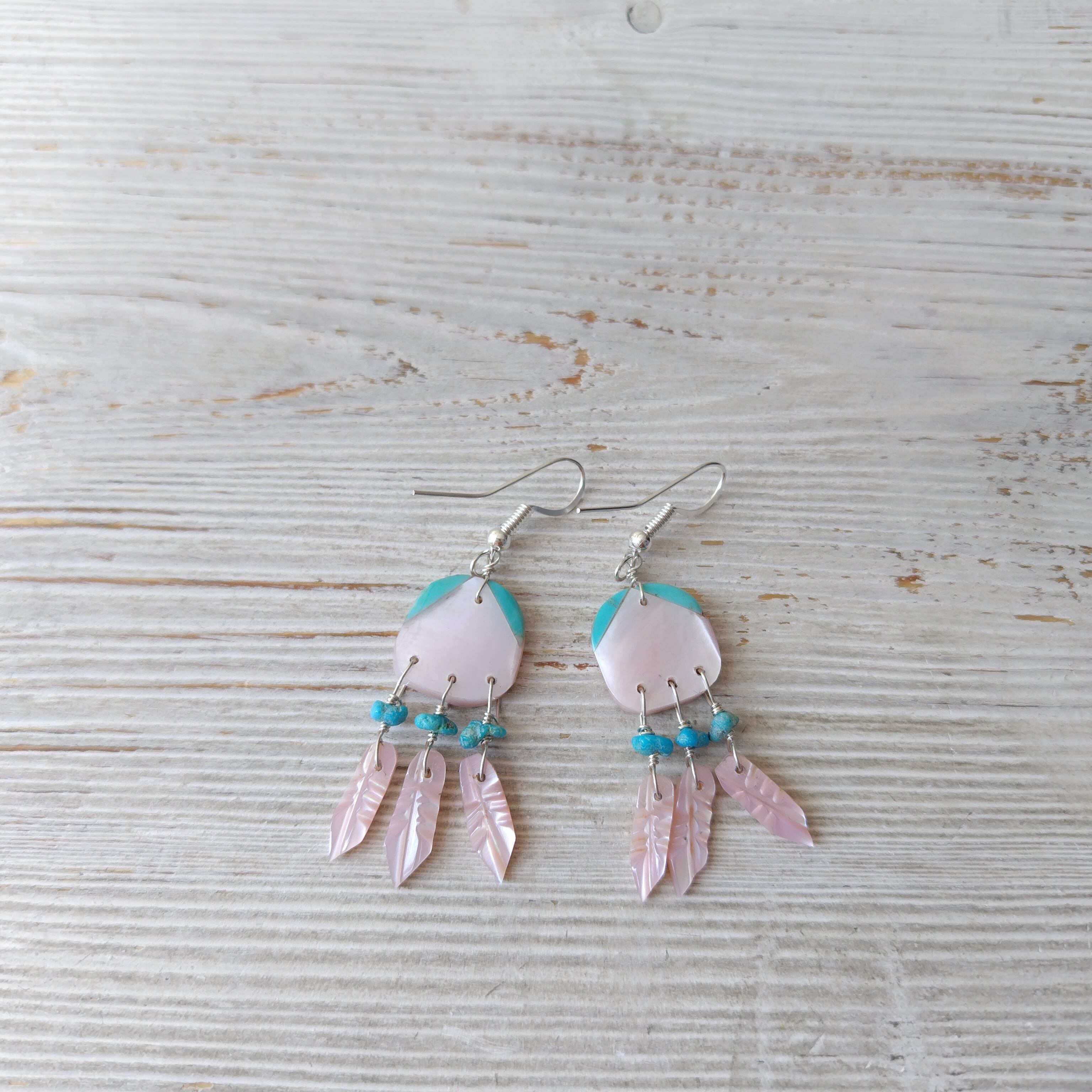 ナバホ ピンクシェル x ターコイズ ピアスになります!