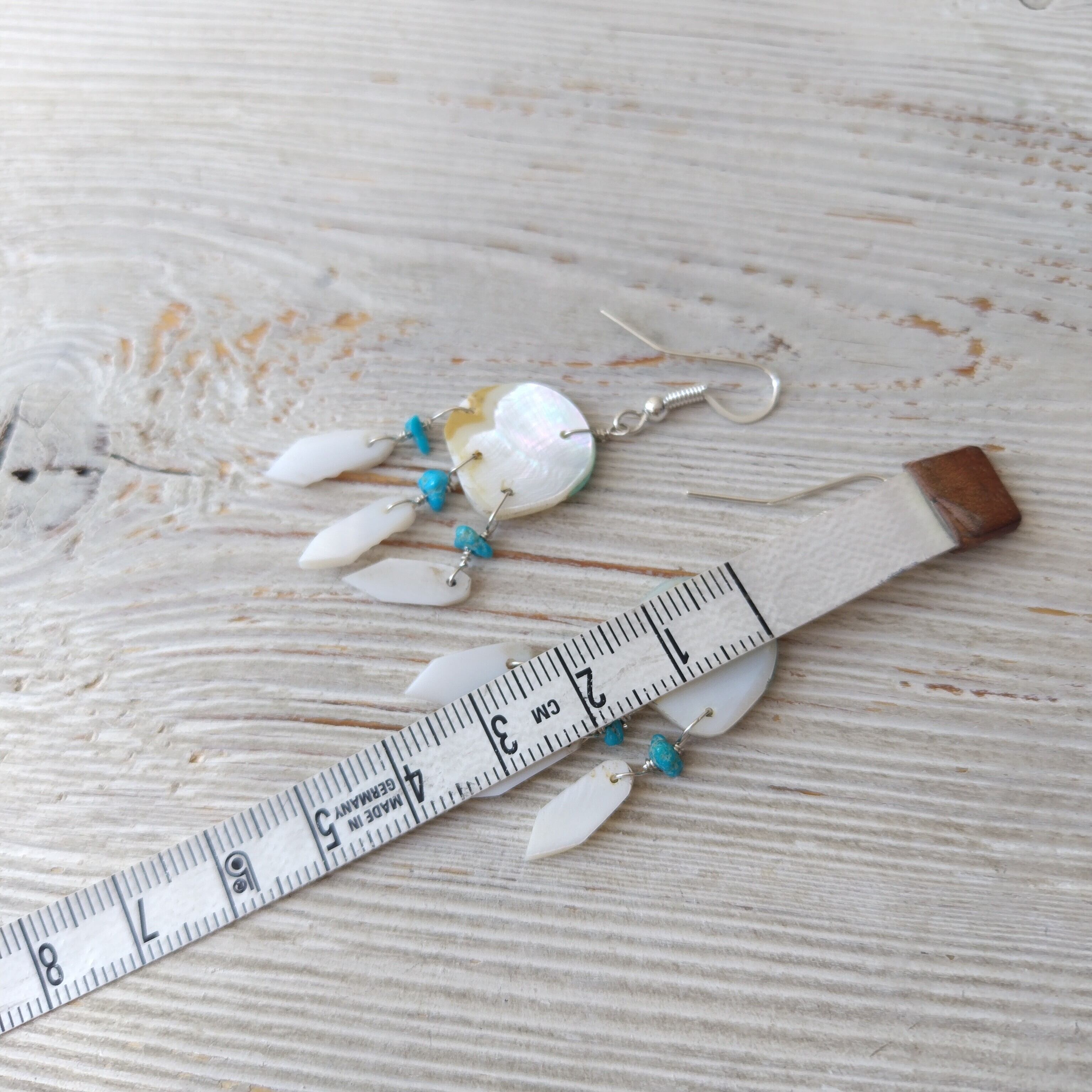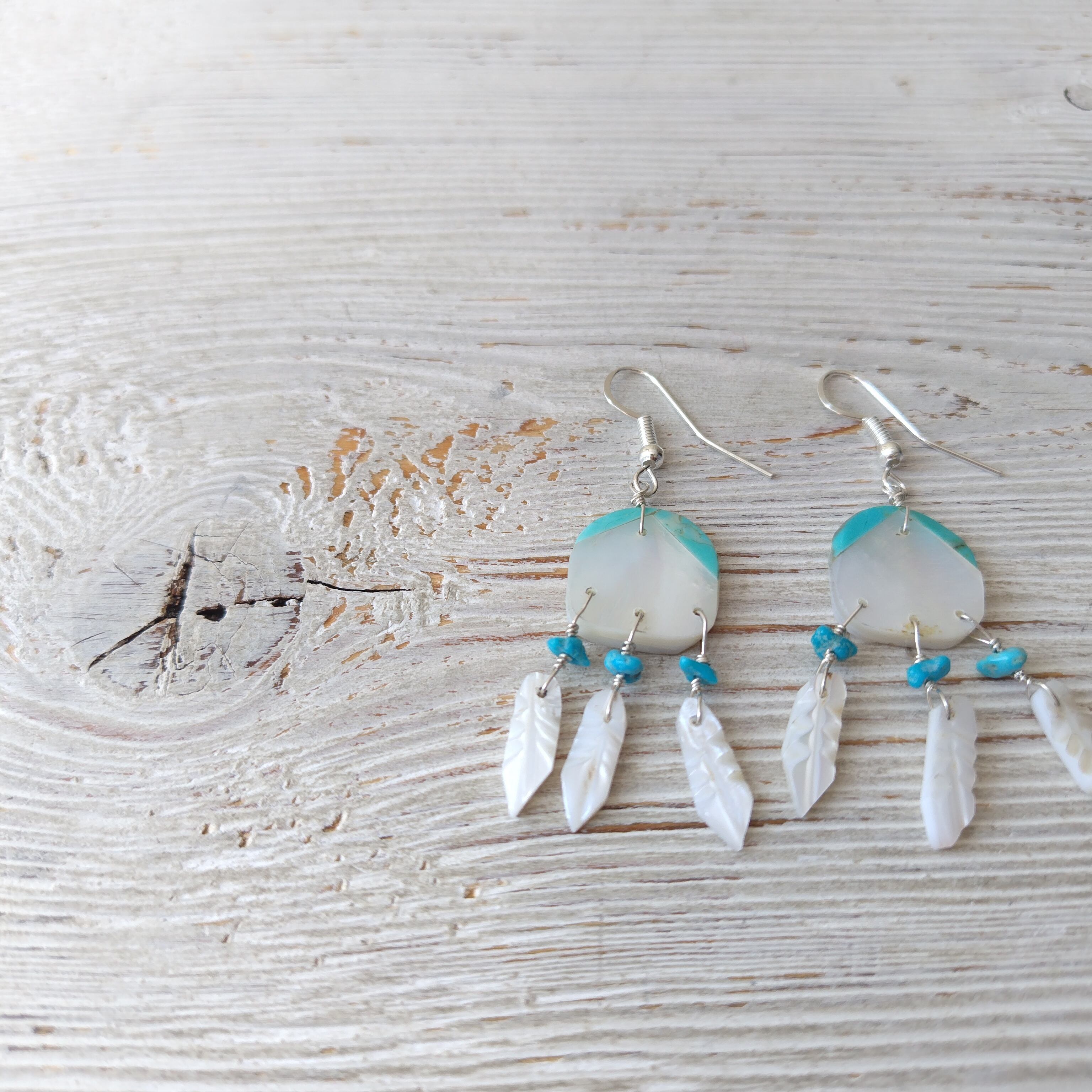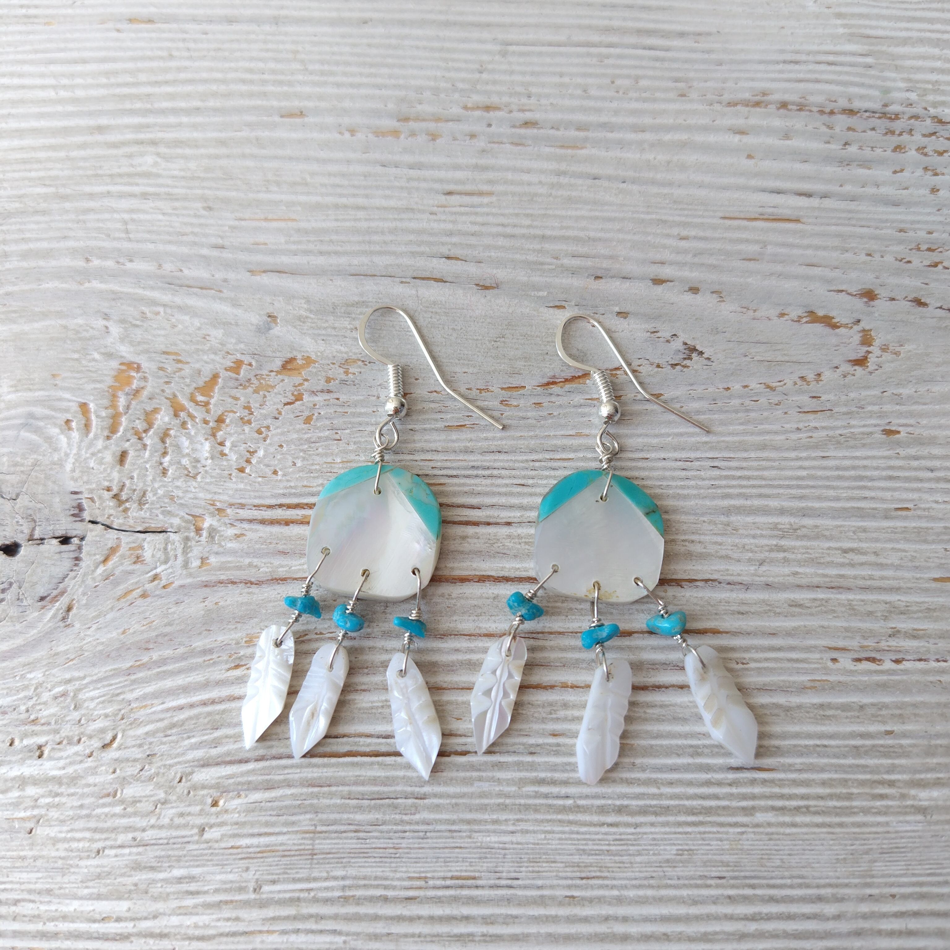 ナバホ ホワイトシェル x ターコイズ ピアス インディアンジュエリー