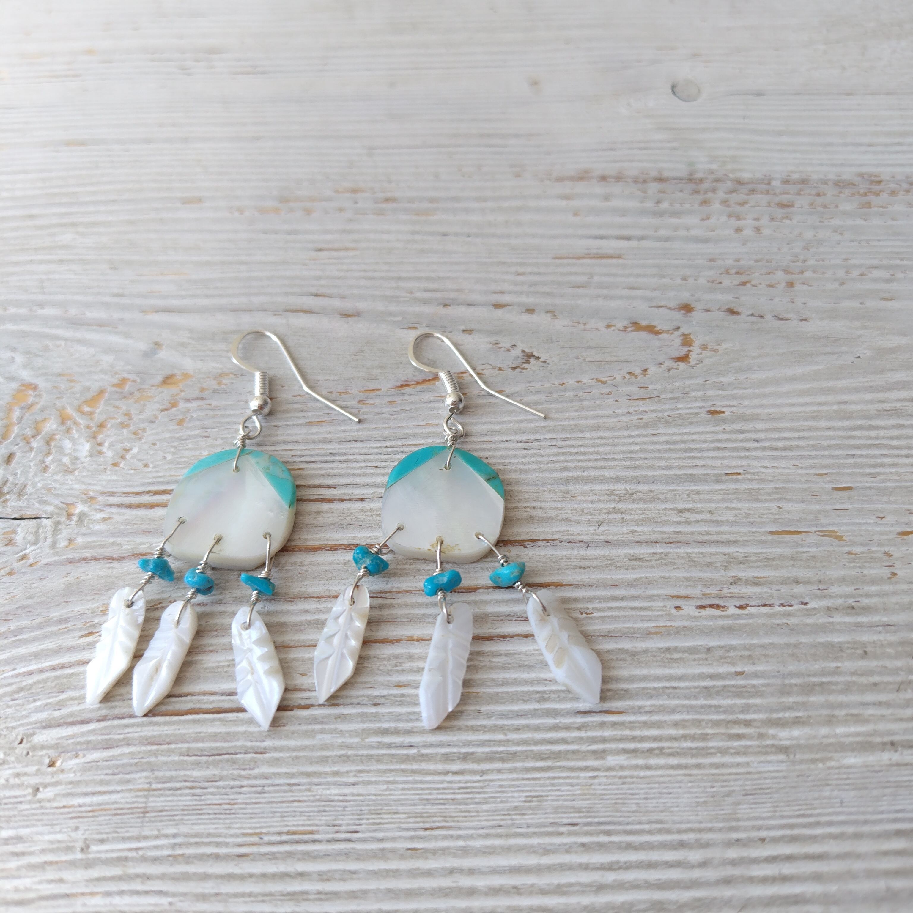 ナバホ ホワイトシェル x ターコイズ ピアスになります!