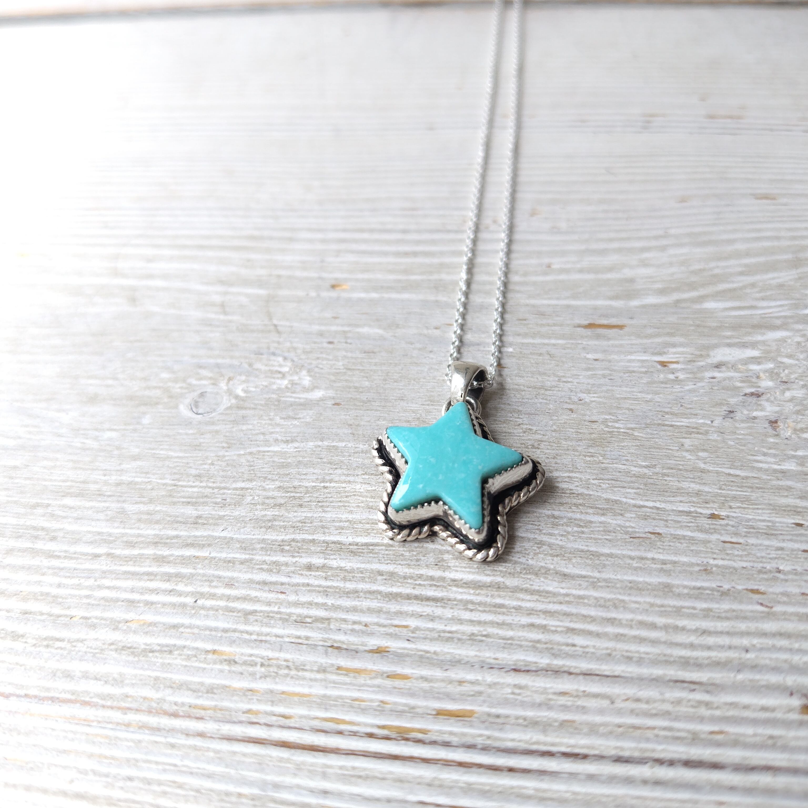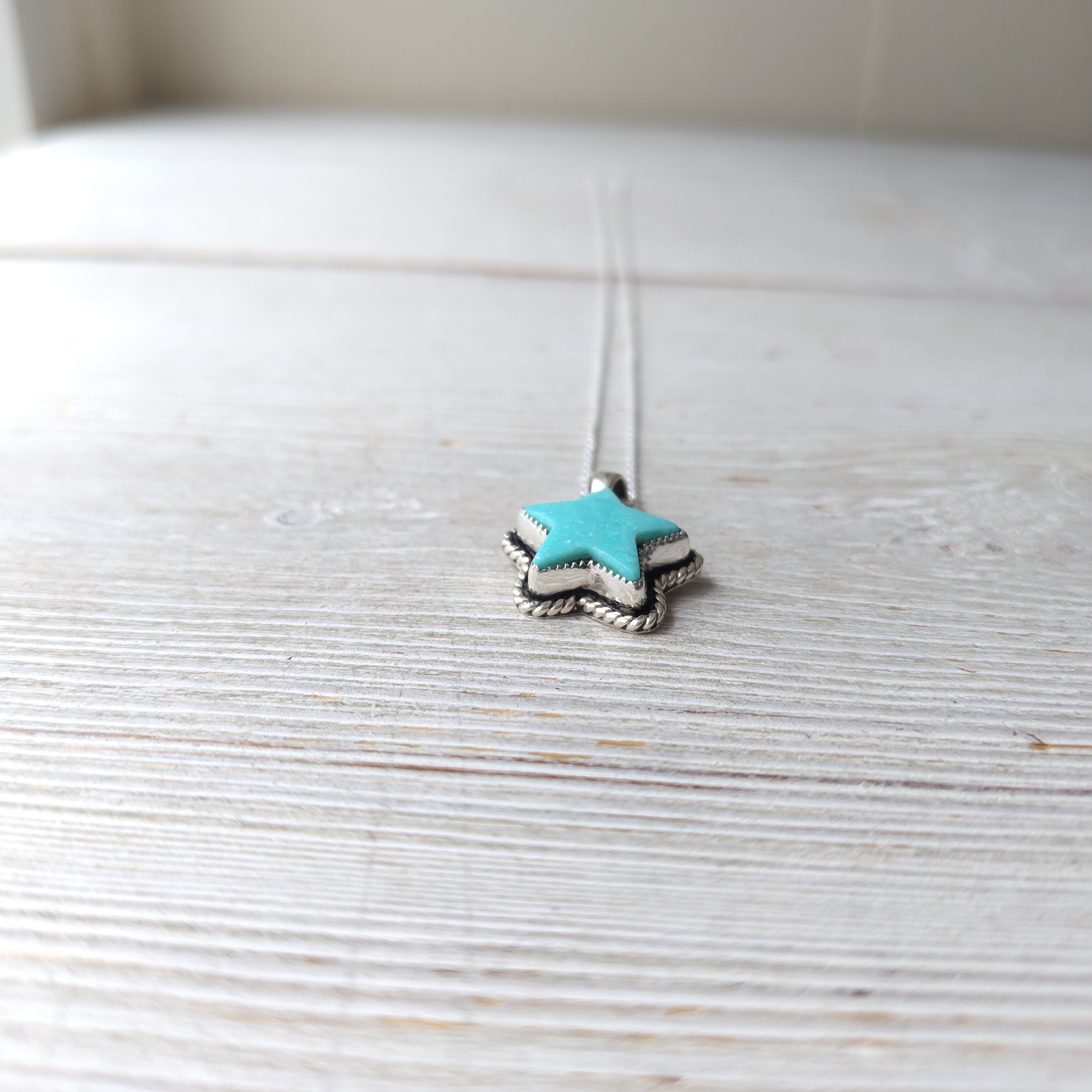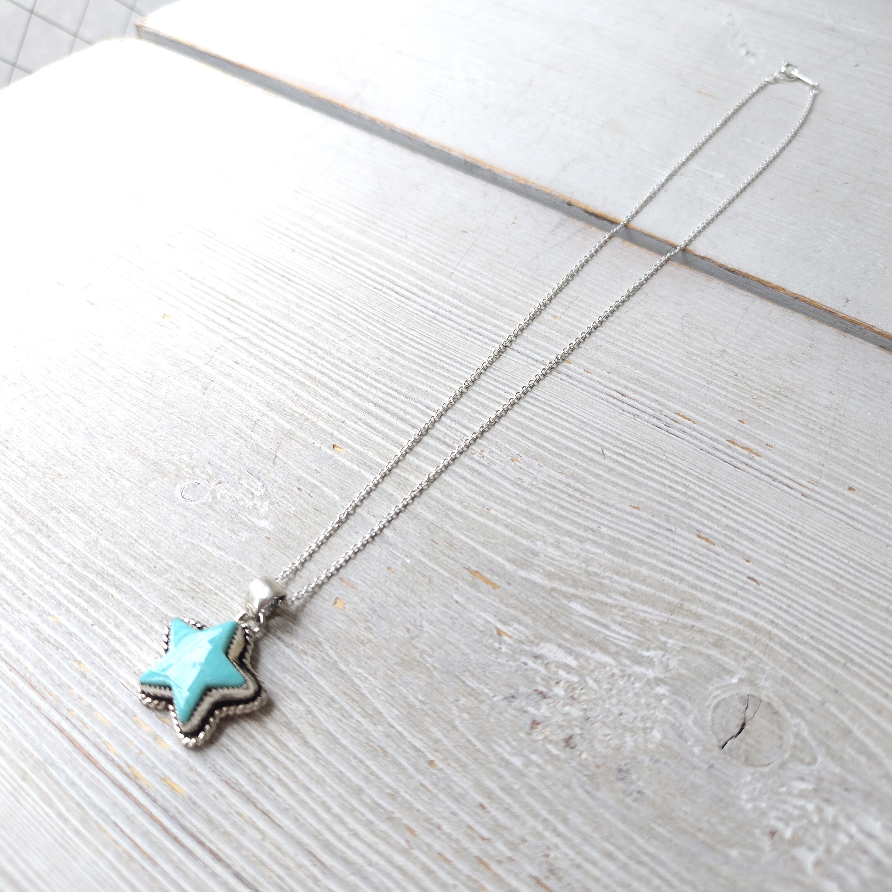ナバホ Kingman Turquoise スター シルバーネックレス インディアンジュエリー