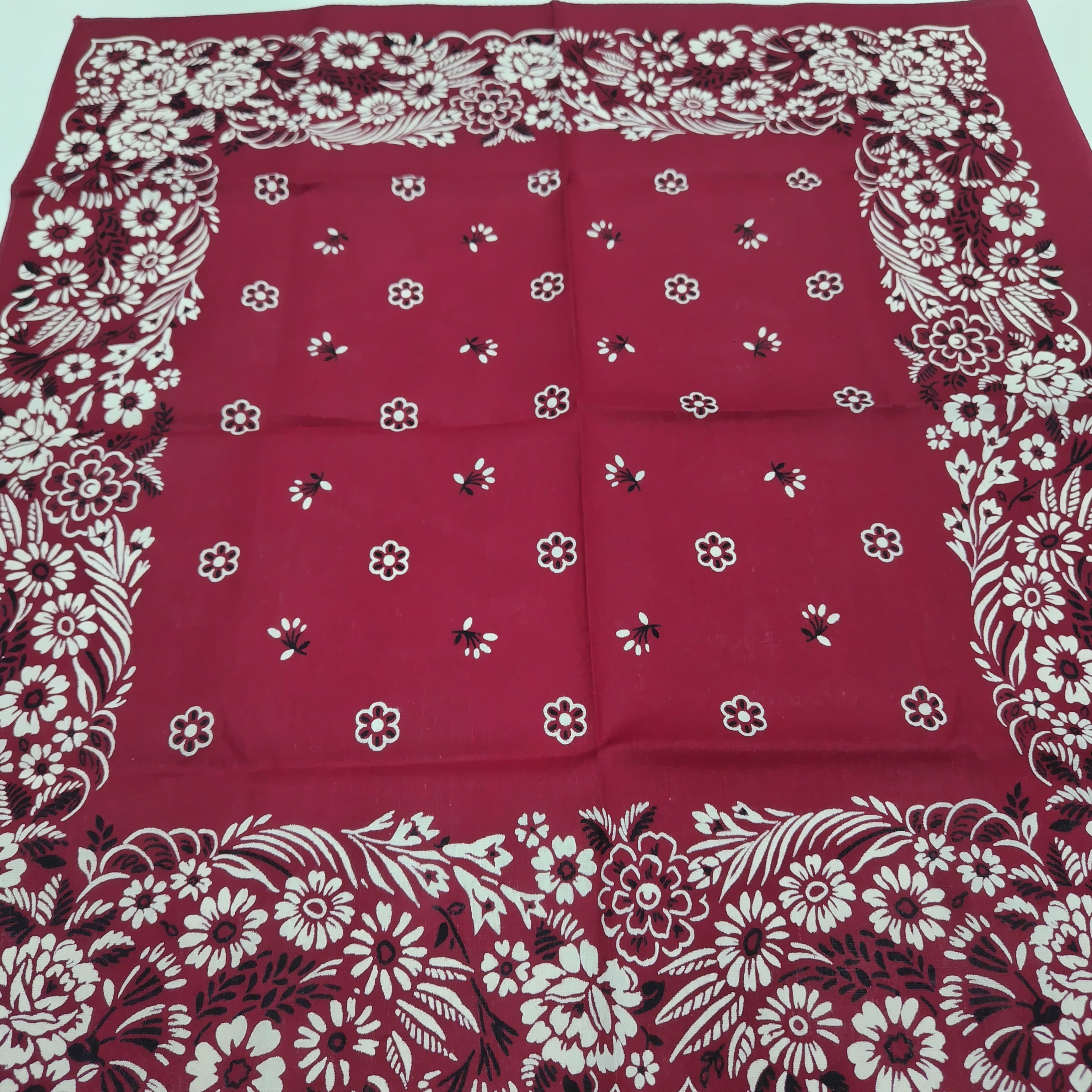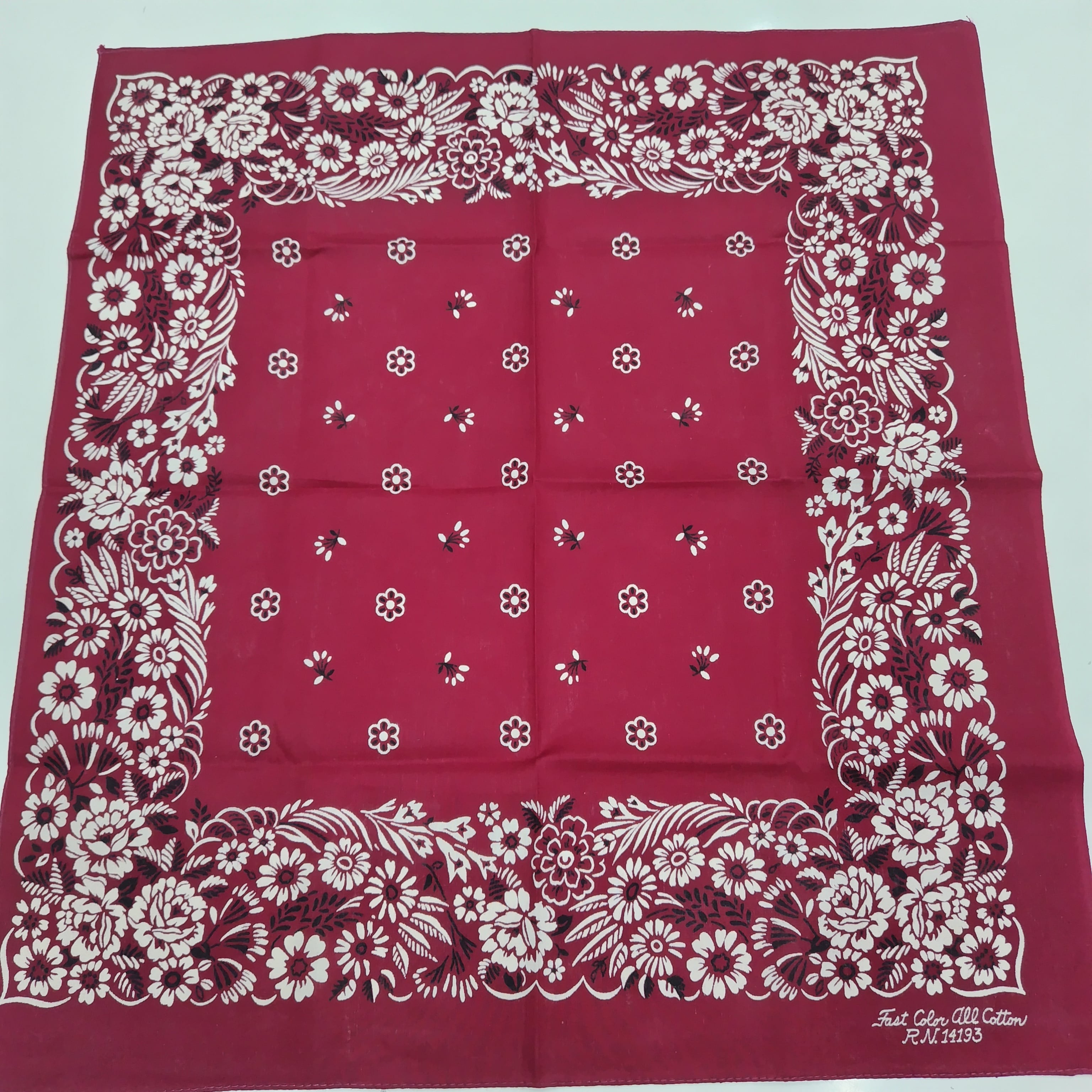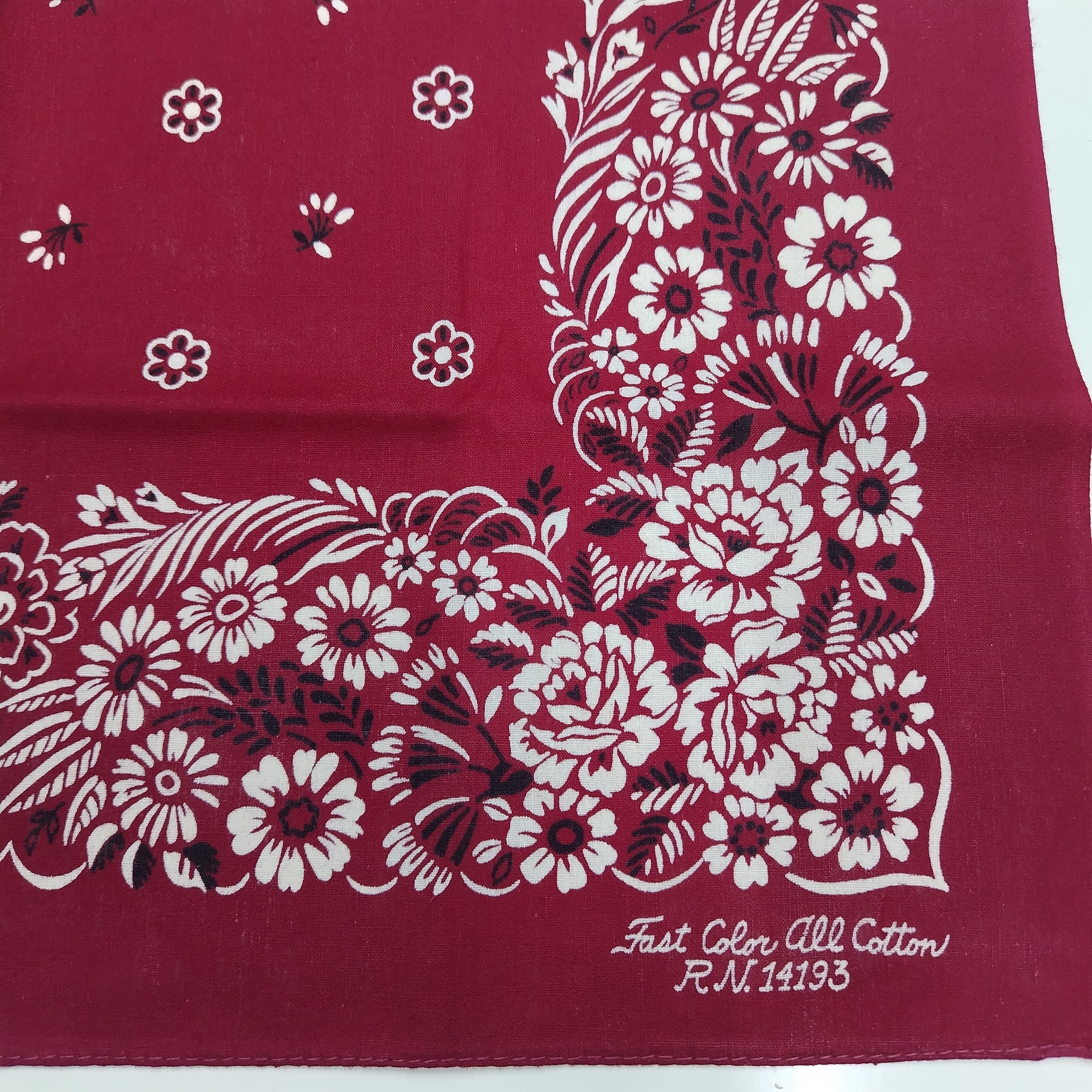 70s ビンテージ 筆記体表記 ワインレッド バンダナ